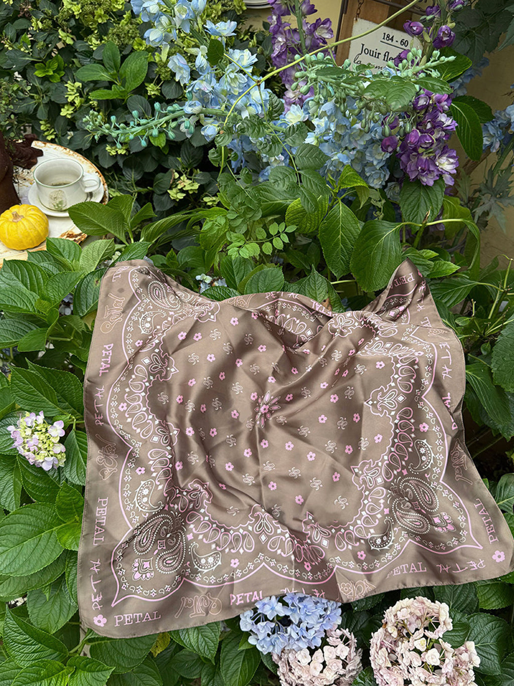 pEtaLPeTaL | "Seven Flowers" Logo Printed Silk Scarf Skip to content