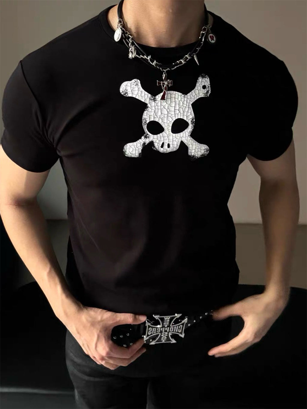 PunkFK | Skull Crack Vintage Print Short Sleeve Tee Skip to content