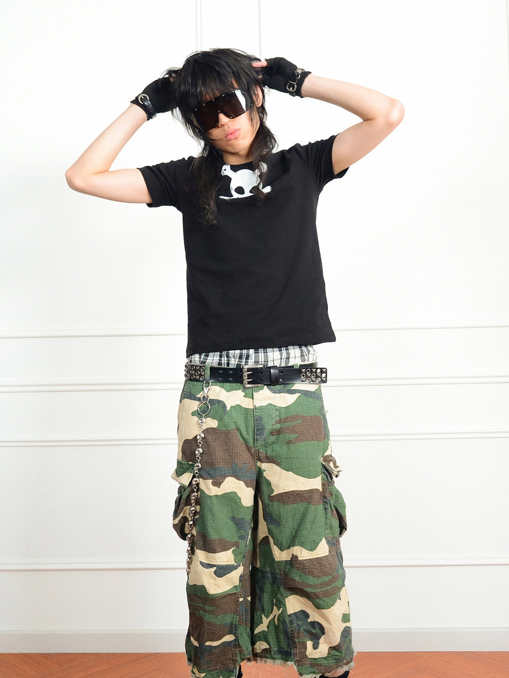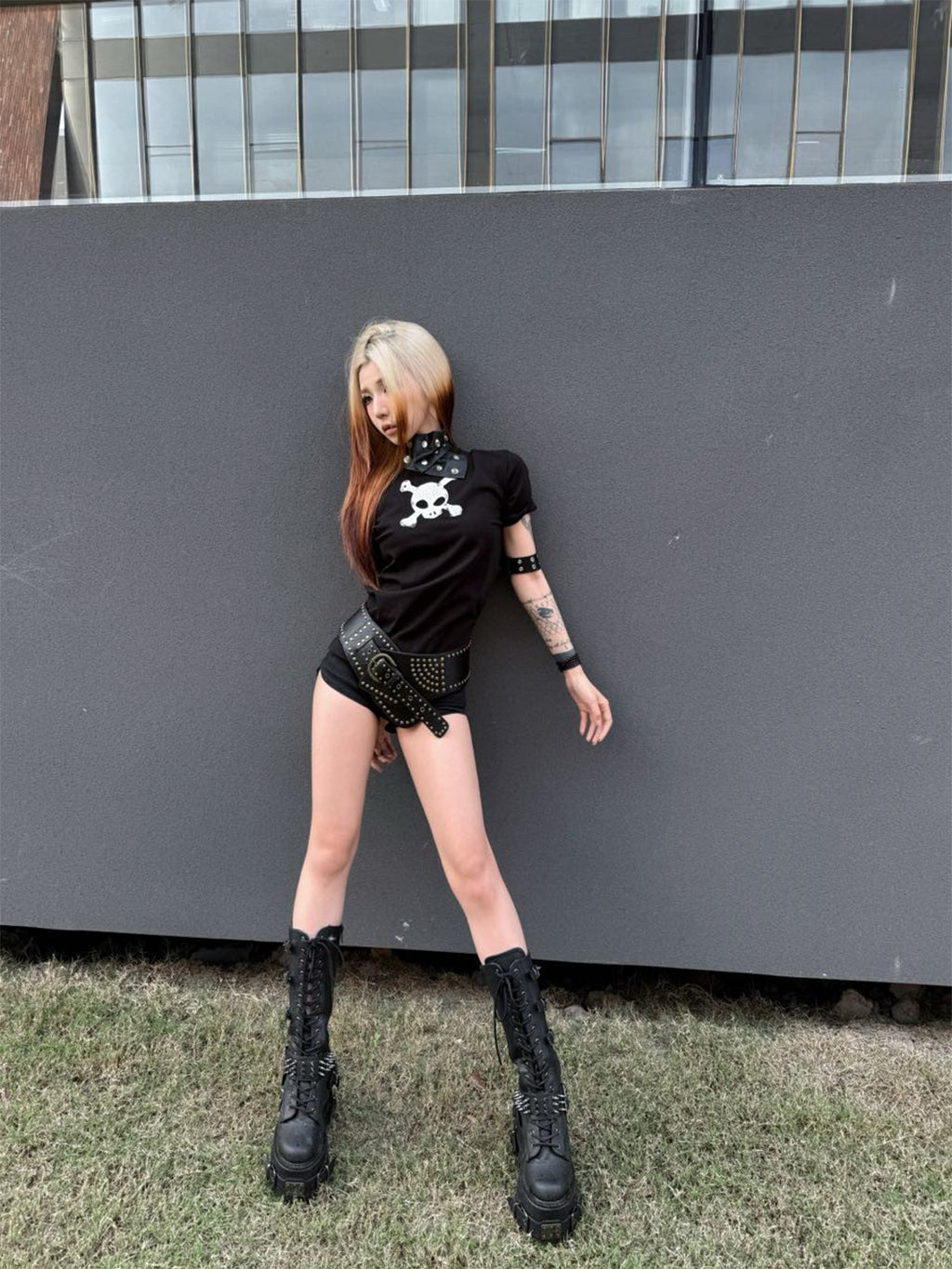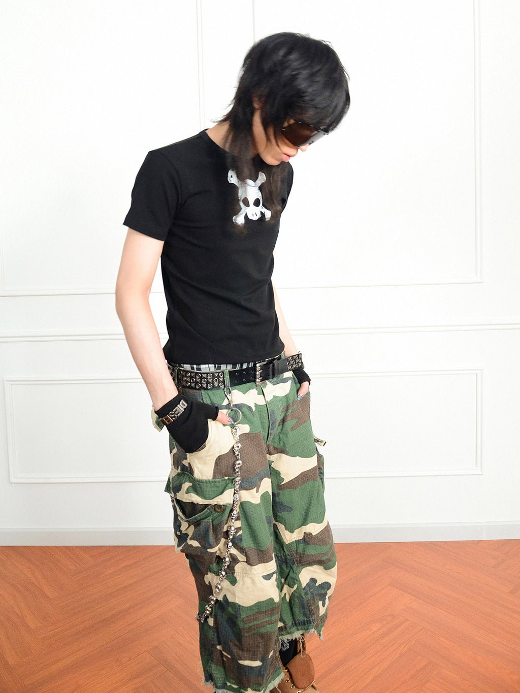PunkFK | Skull Crack Vintage Print Short Sleeve Tee