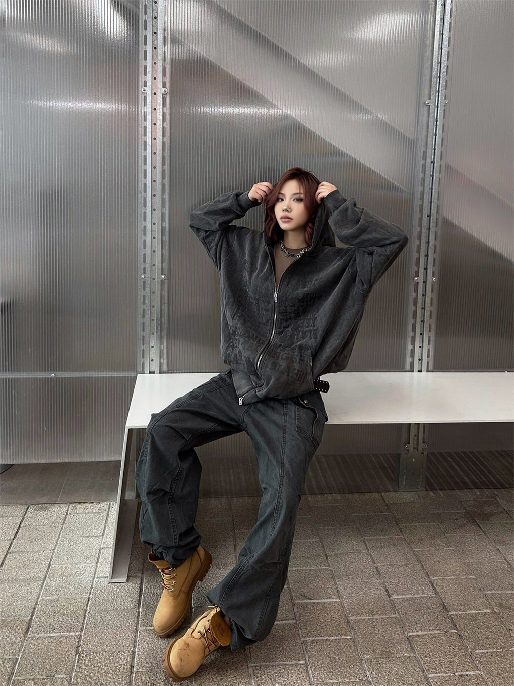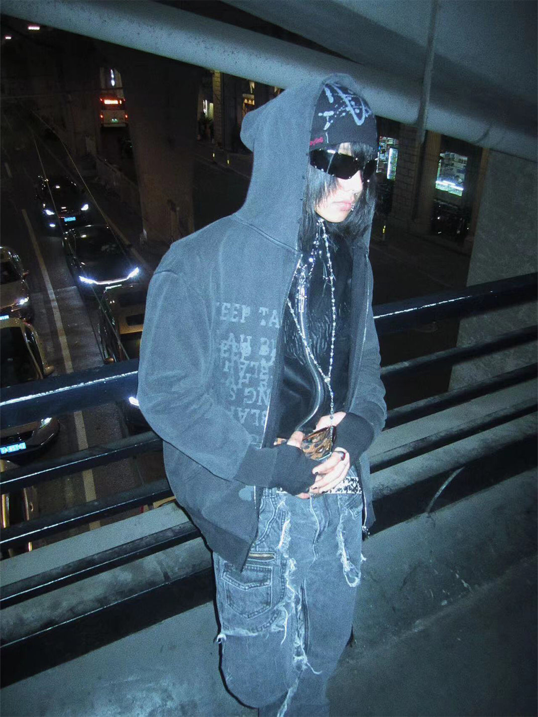 PunkFK | Talk Shit Print Zip Up Hoodie Jacket