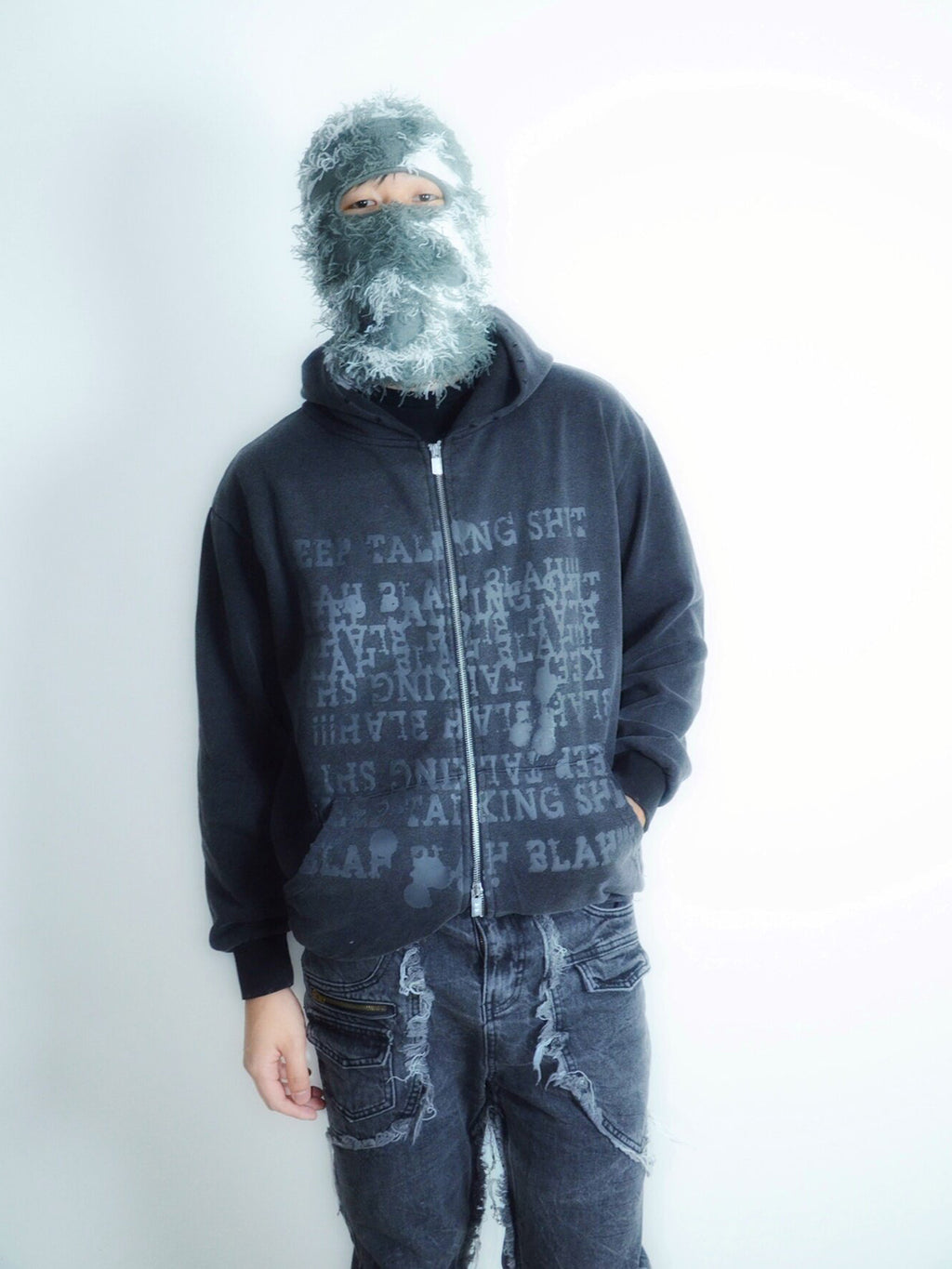 PunkFK | Talk Shit Print Zip Up Hoodie Jacket Skip to content