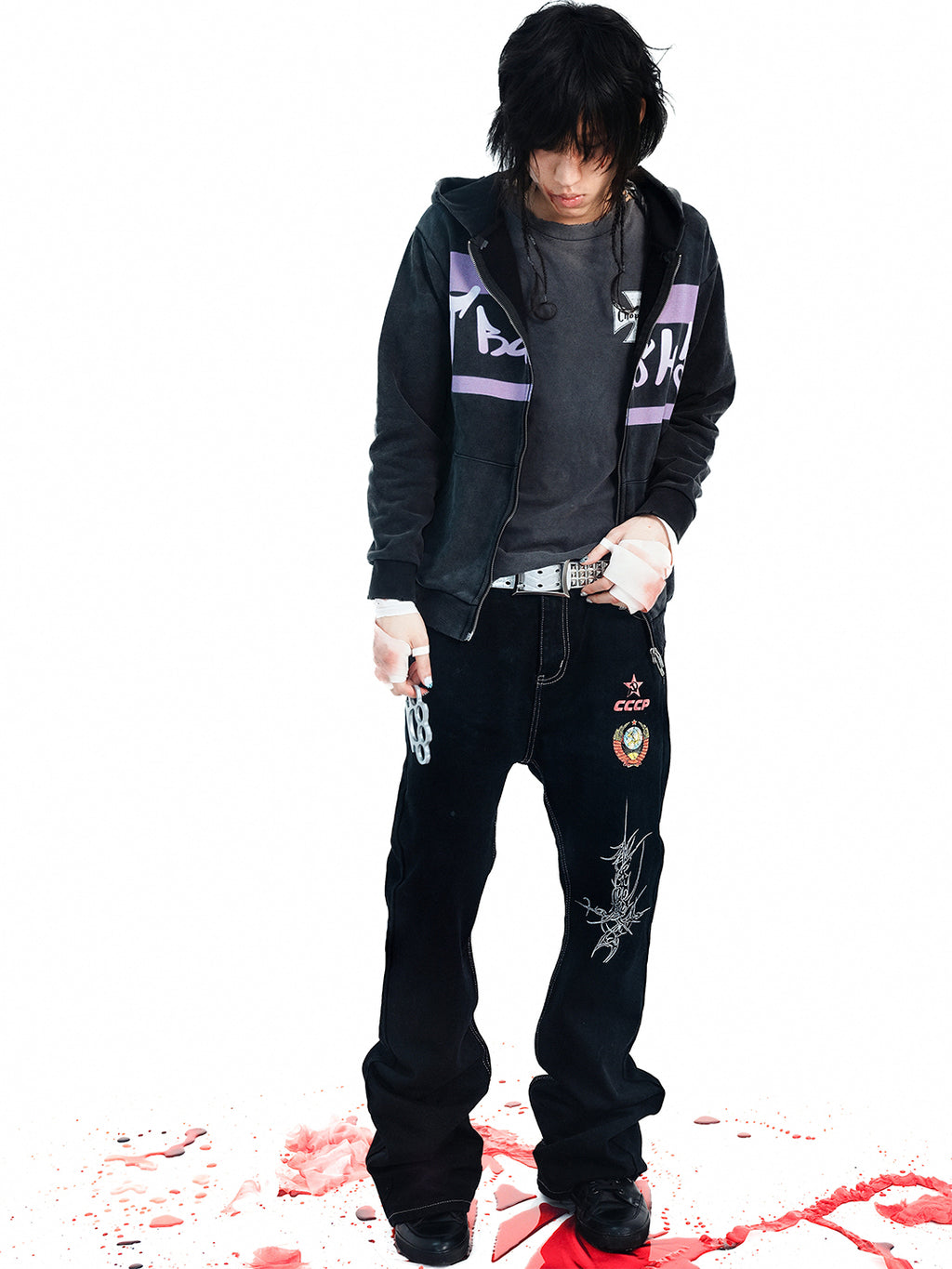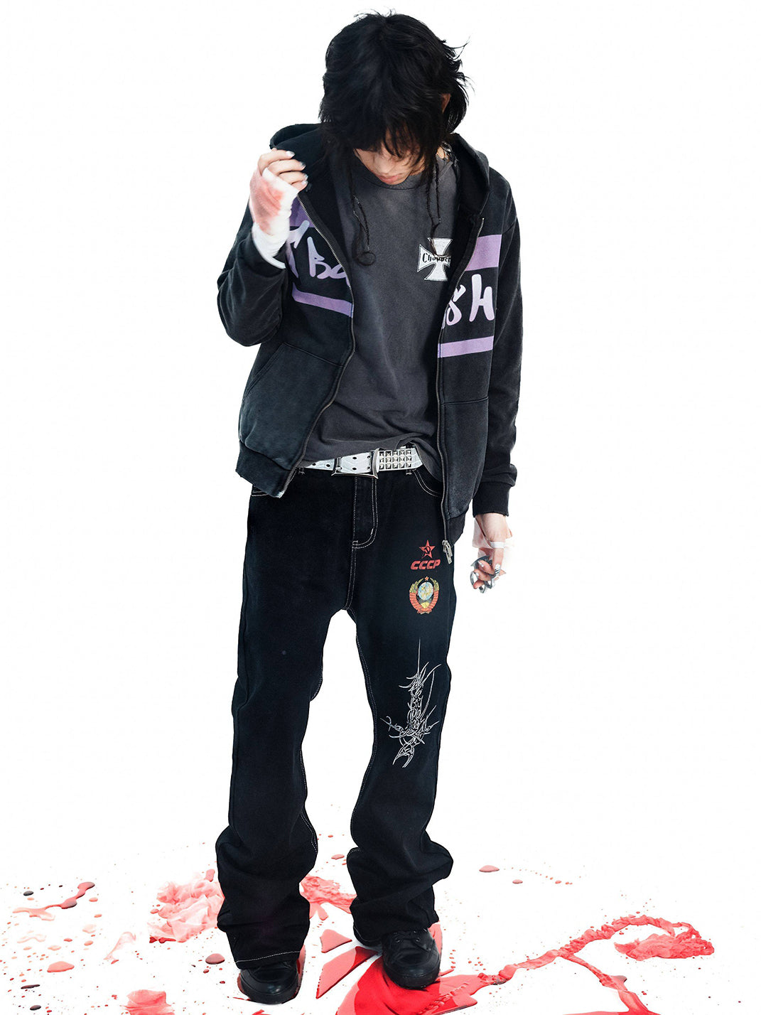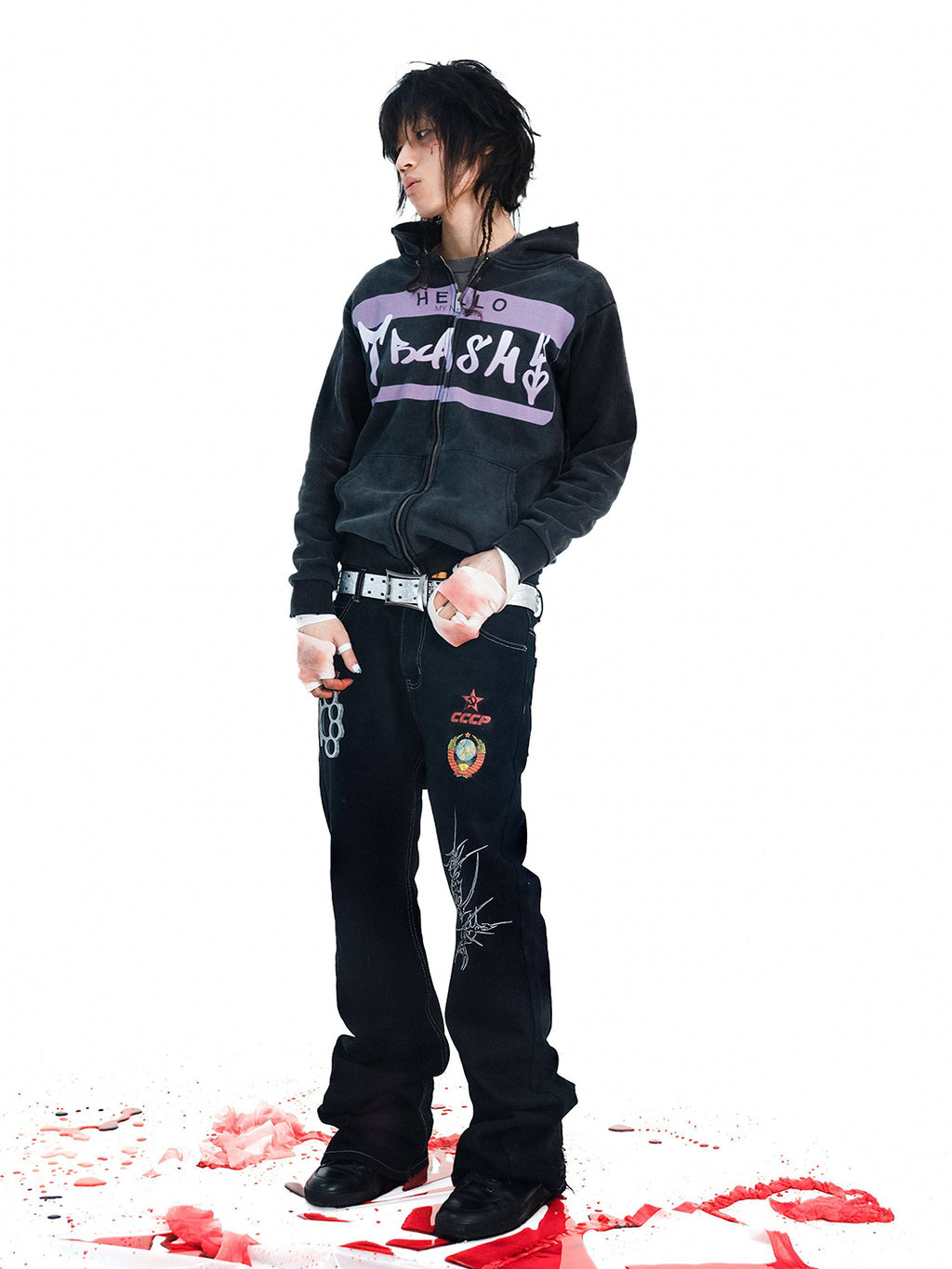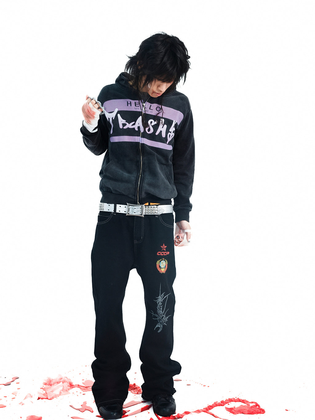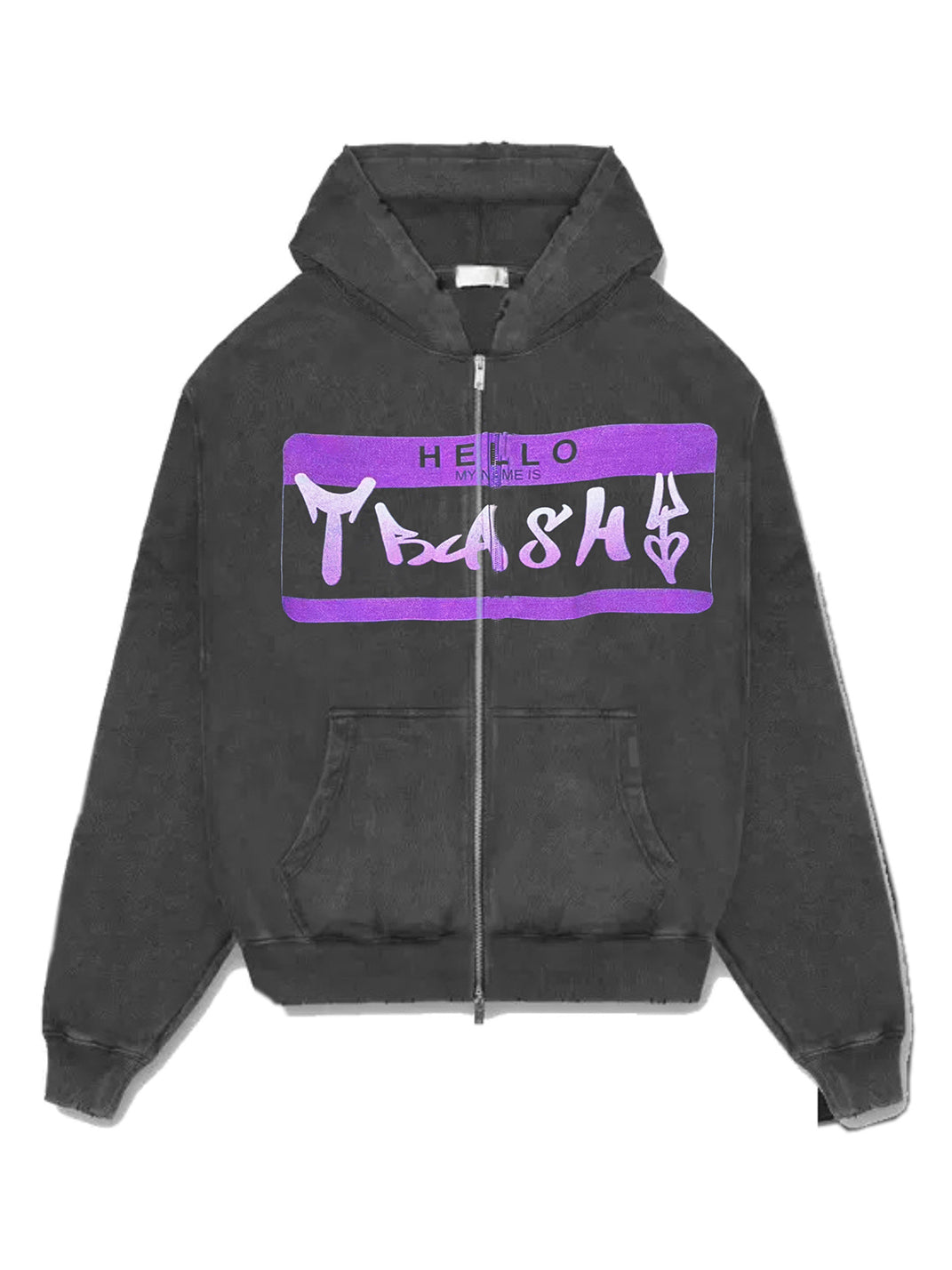 PunkFK | Trashy Print Zip Up Hoodie Skip to content