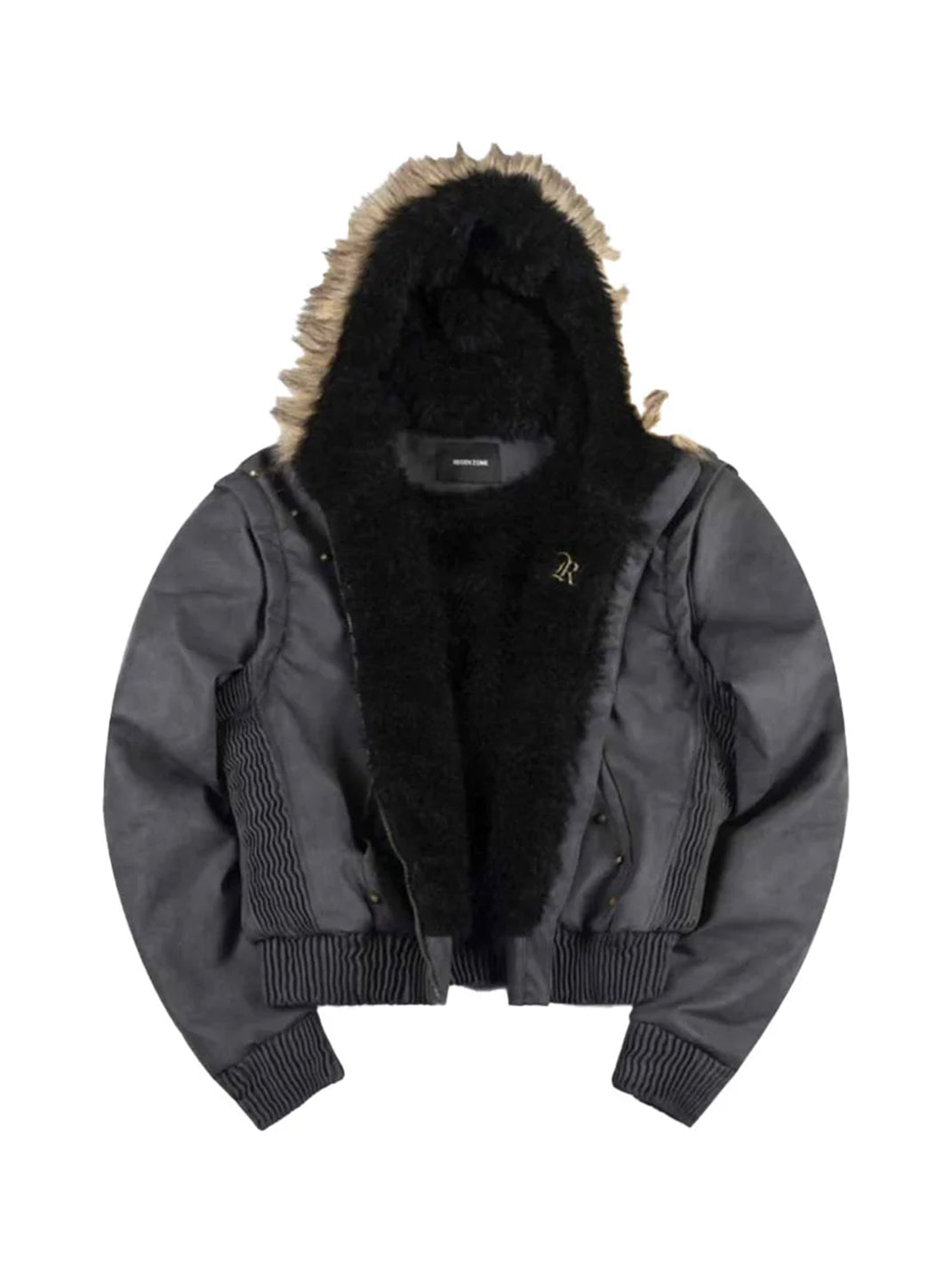 REGEN ZONE | Raven Studded Reversible Leather & Fur Moto Puffer
