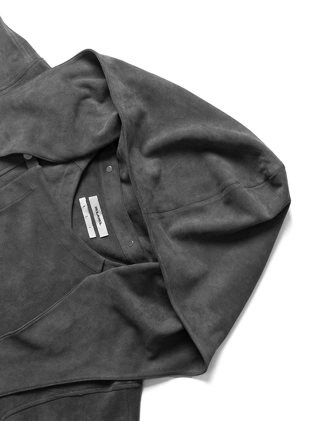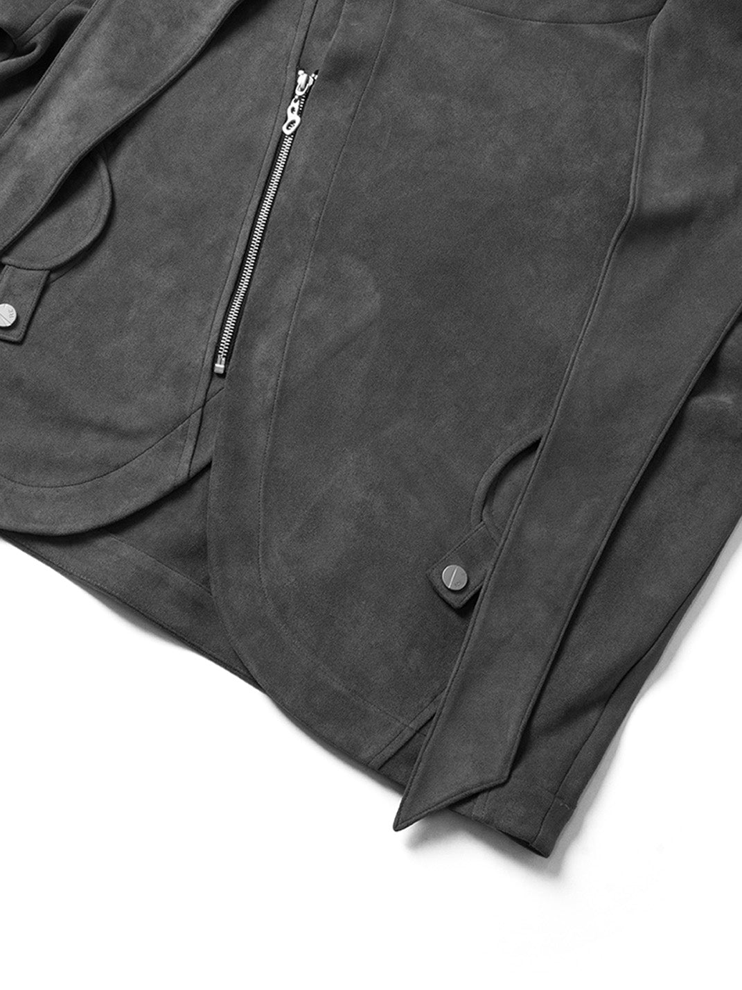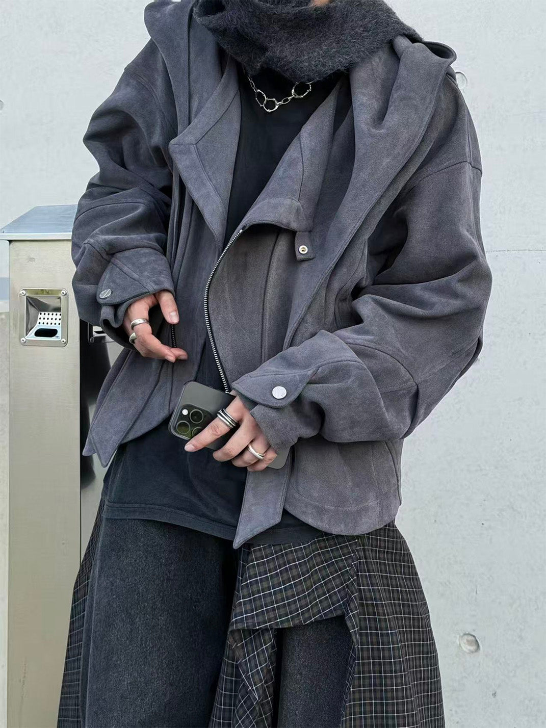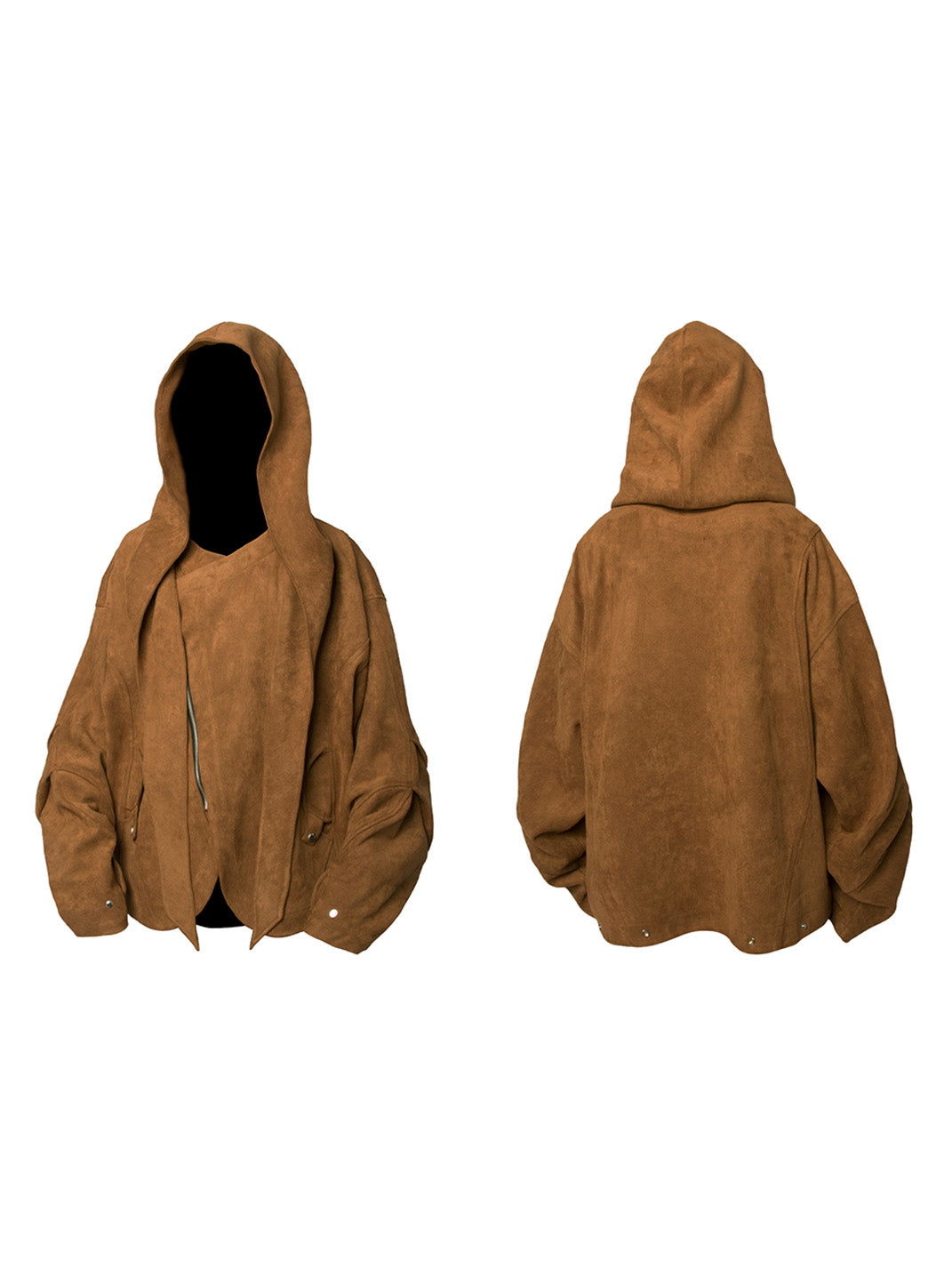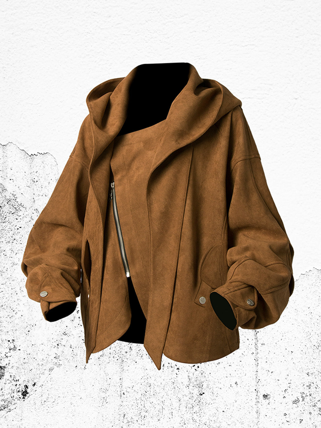 RELABEL | Asymmetrical-Zip Detachable-Hood Suede Jacket Skip to content