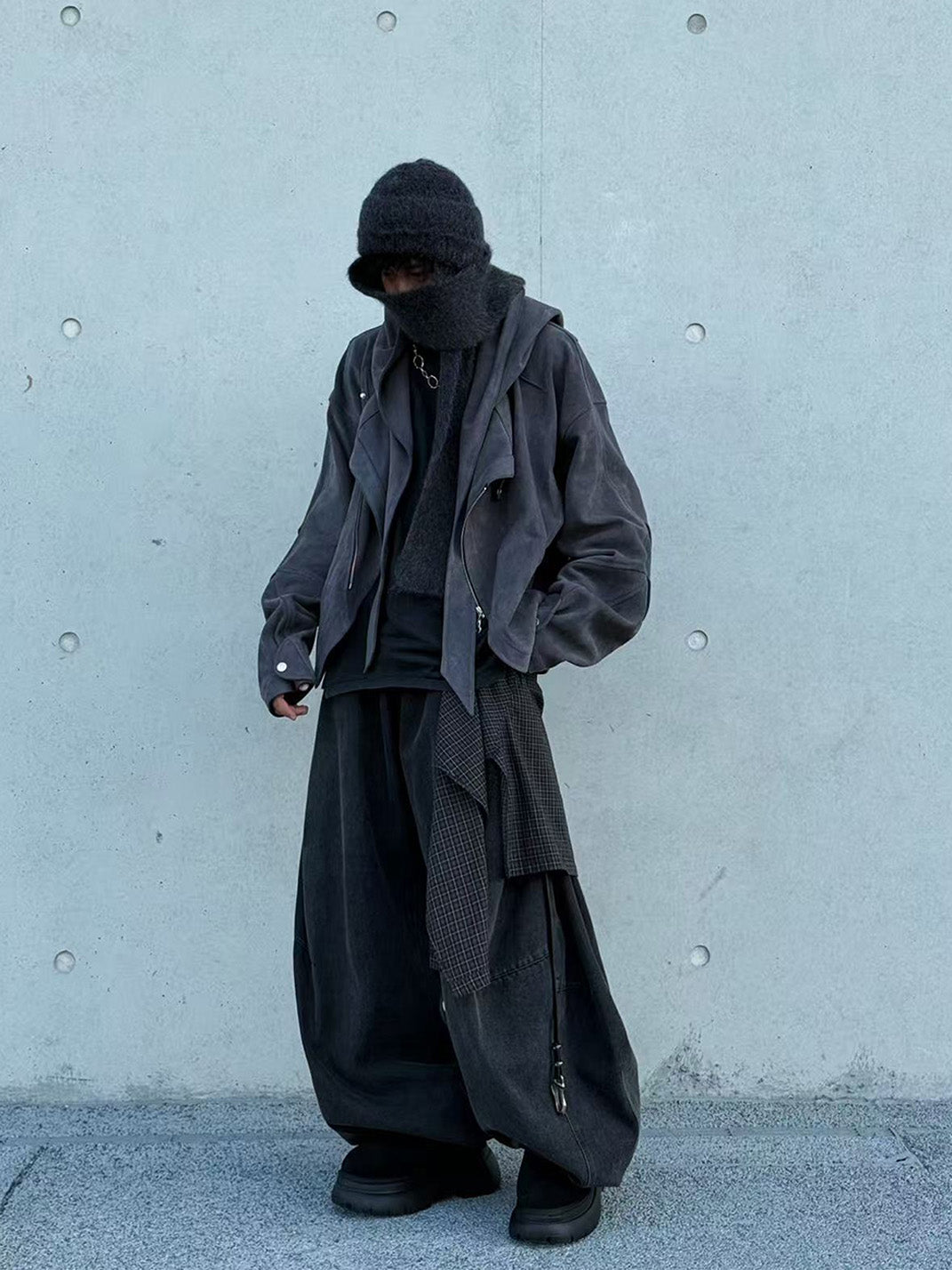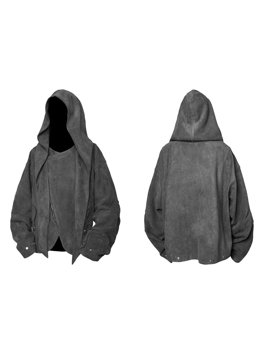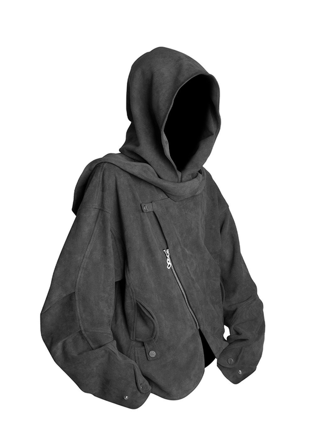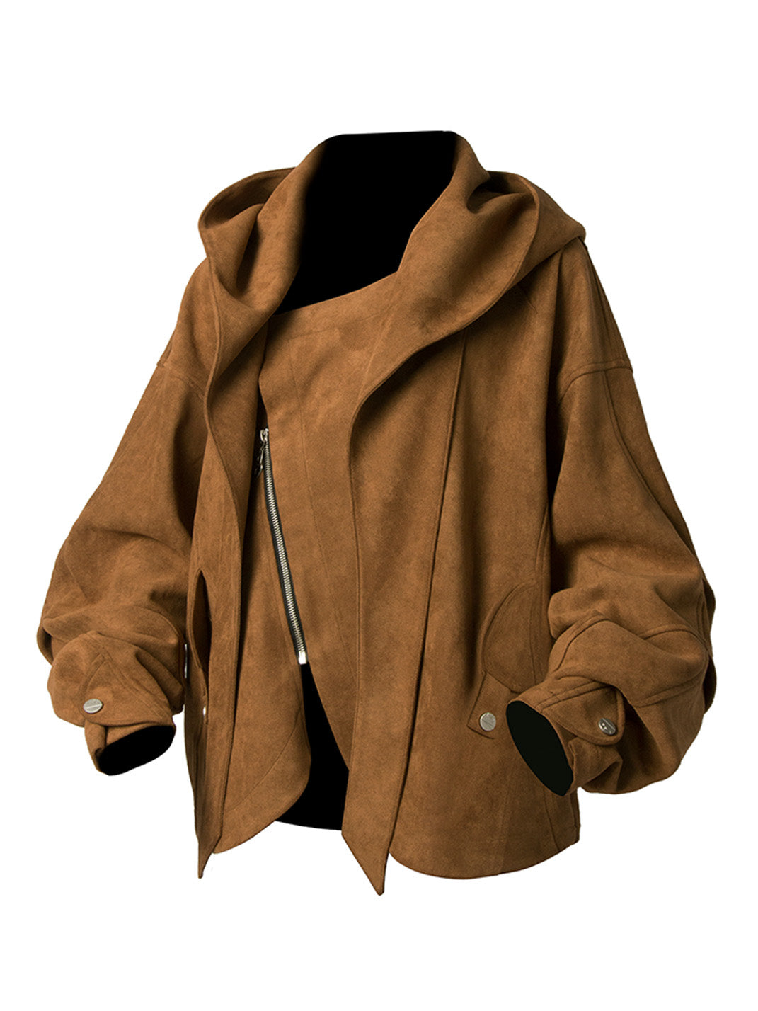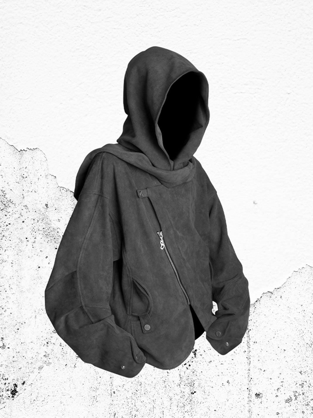 RELABEL | Asymmetrical-Zip Detachable-Hood Suede Jacket Skip to content