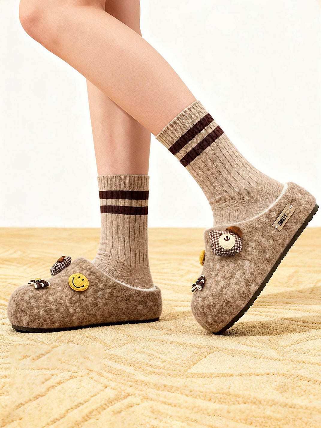 SMILEY | Bow-knot Bear Smiley Face Platform Slippers