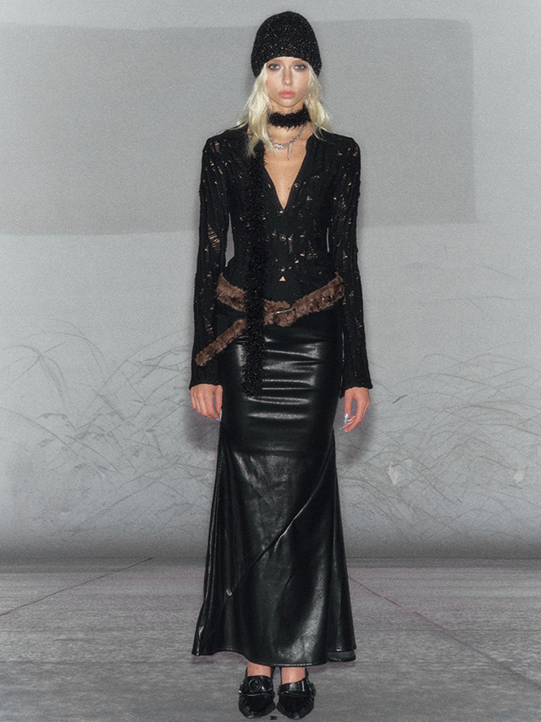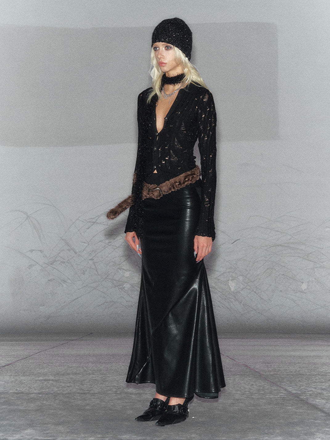 THE NEVERMORE | Black Sequin Cutout V-Neck Slim Knit Top