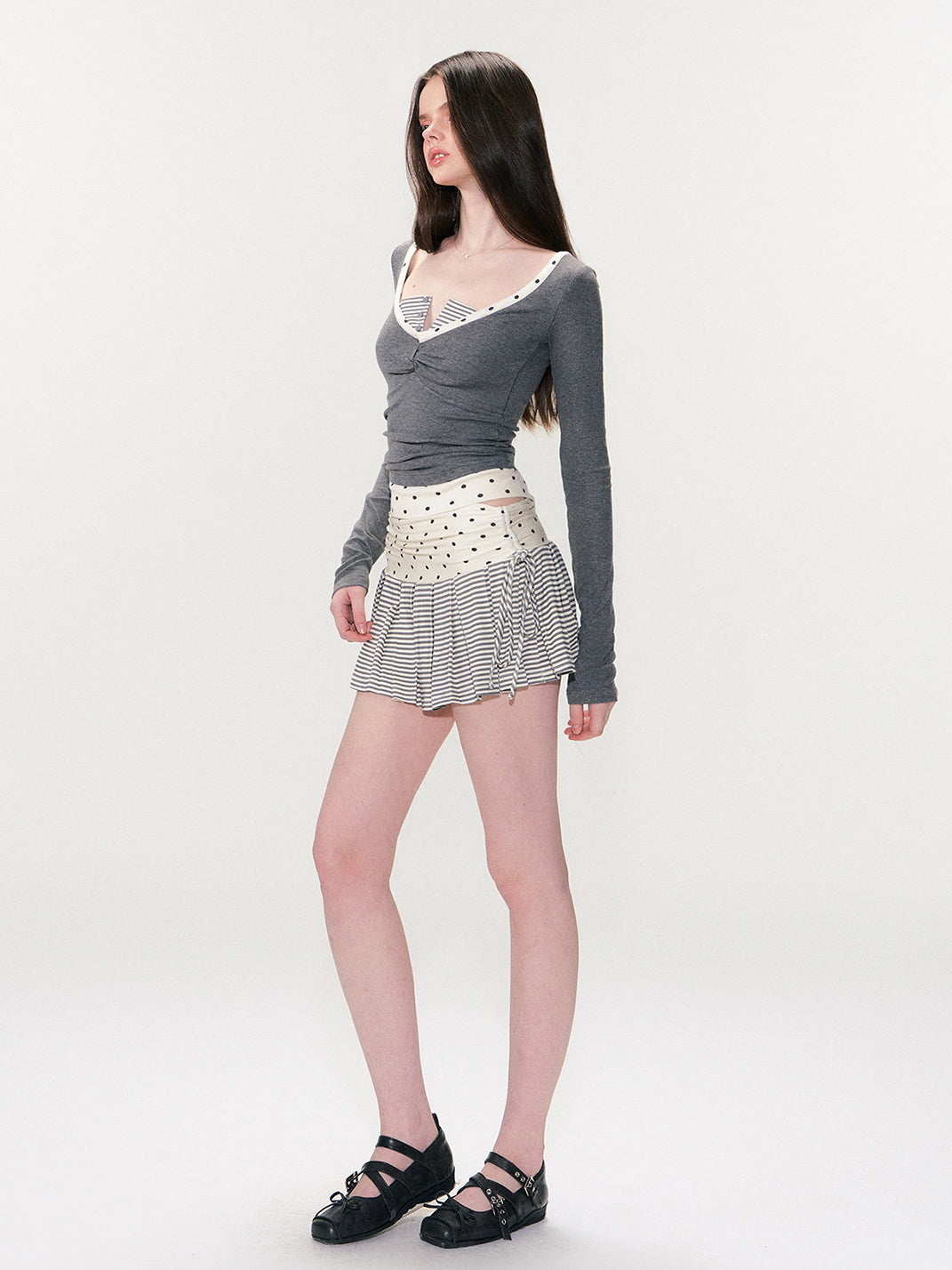 A deep V-neck can elongate the neckline, visually making the face appear smaller, and appropriately increasing the amount of skin exposed to showcase delicate collarbones.