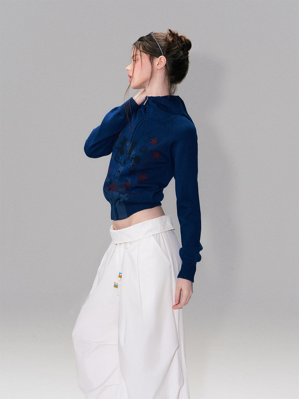 The NeverMore | Retro Knit Print Hooded Sweatshirt