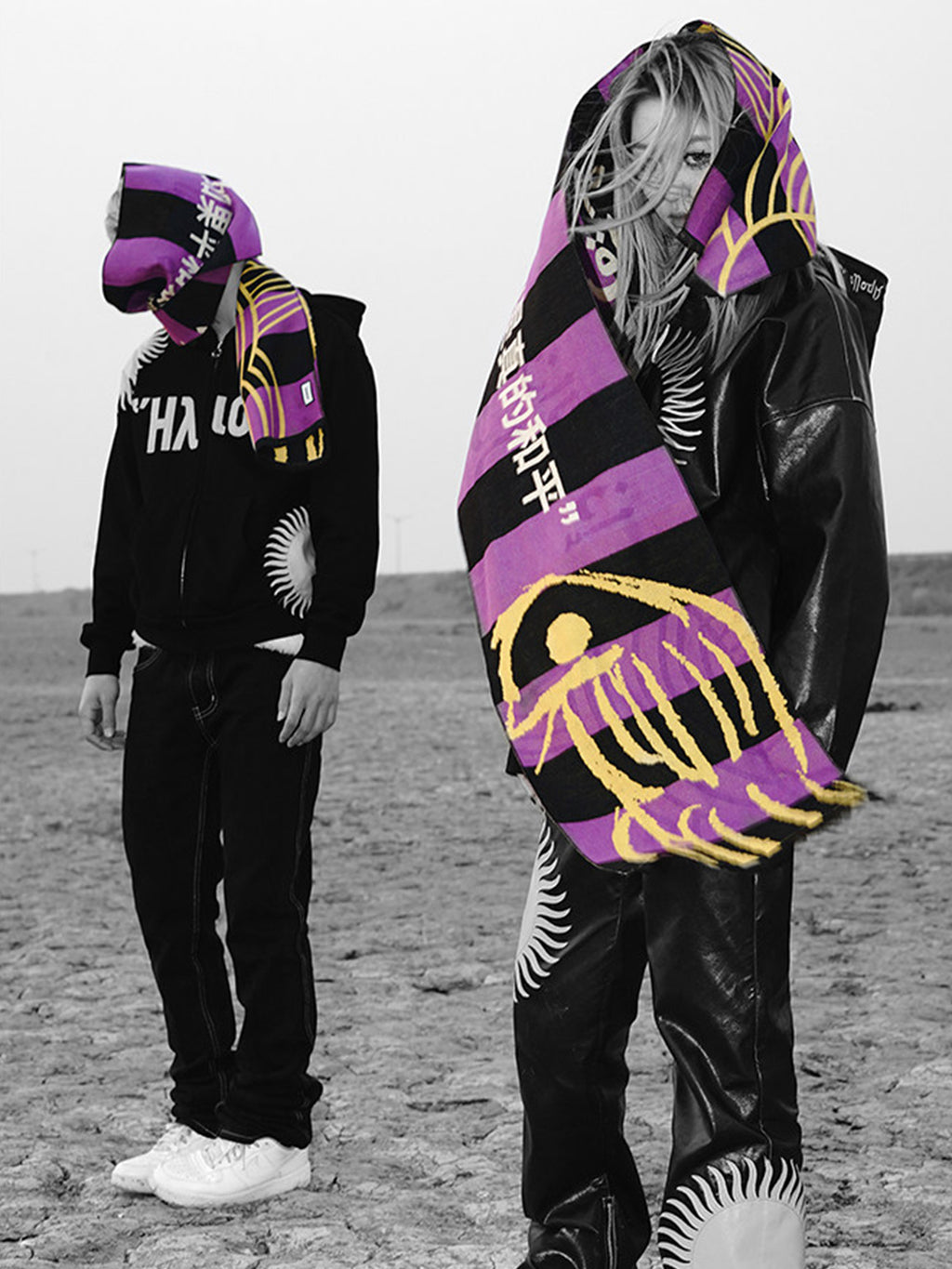 VINKID | Double-Sided Scarf With Peace Dove Slogan