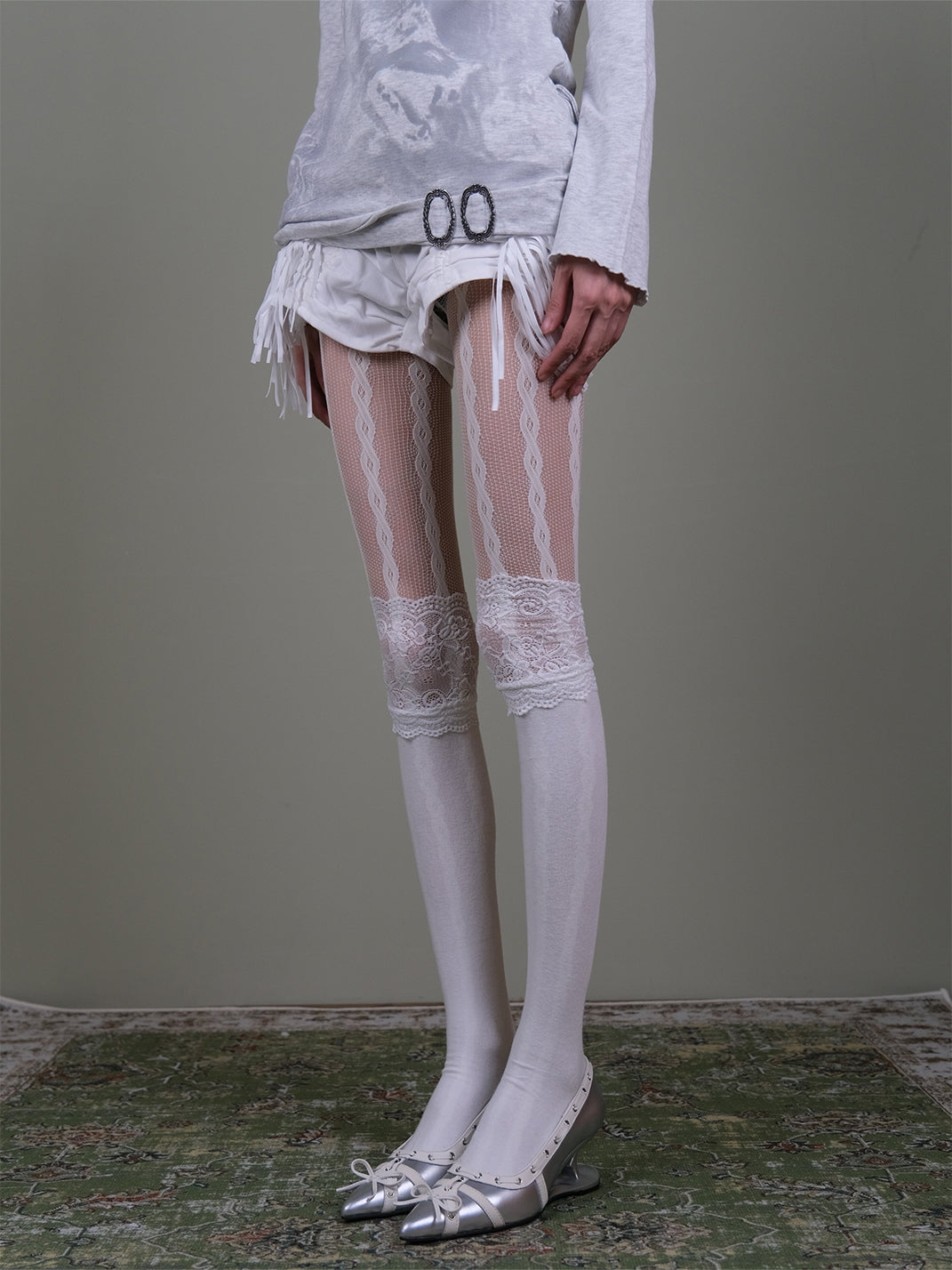 XILING | Fishnet Stockings + Lace-Trimmed Over-the-Knee Socks Combo Se Skip to content