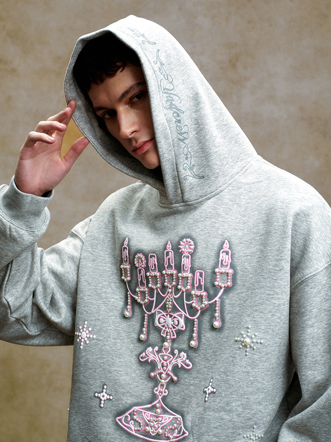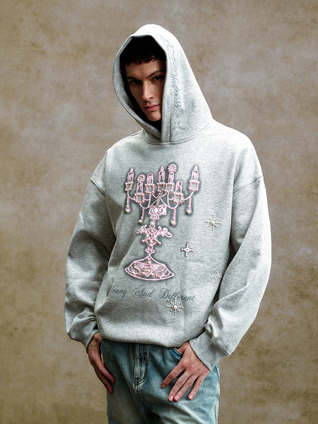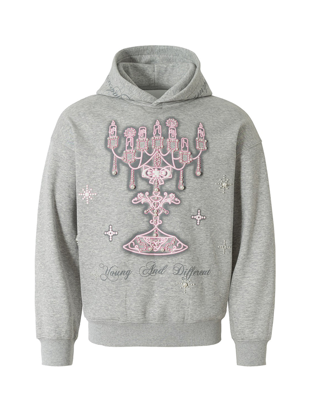 YADcrew丨Embroidered Pearl Detail Casual Hoodie