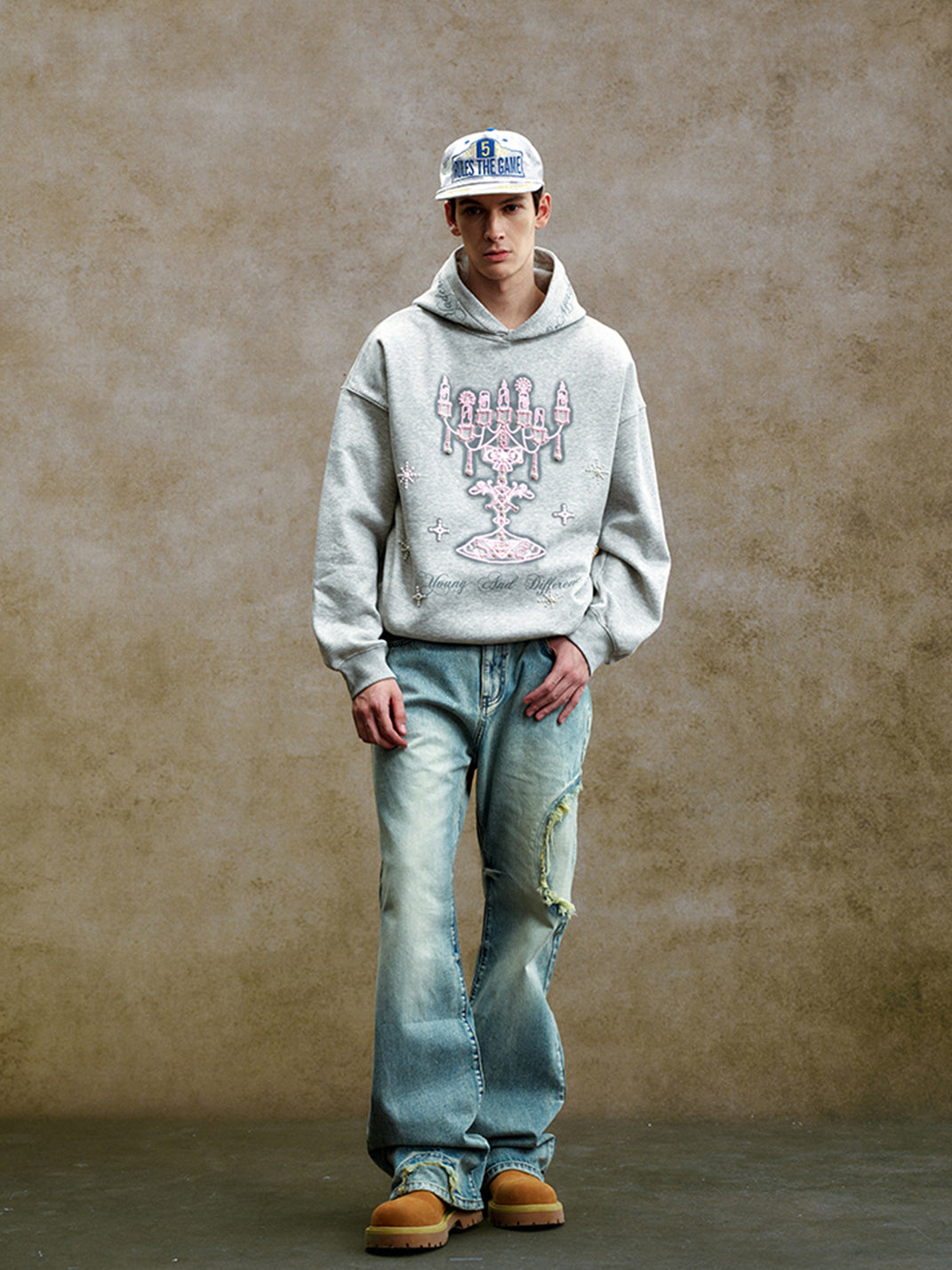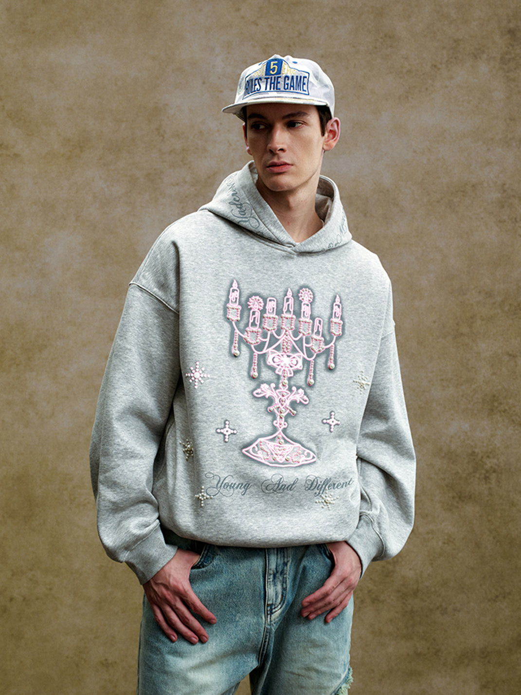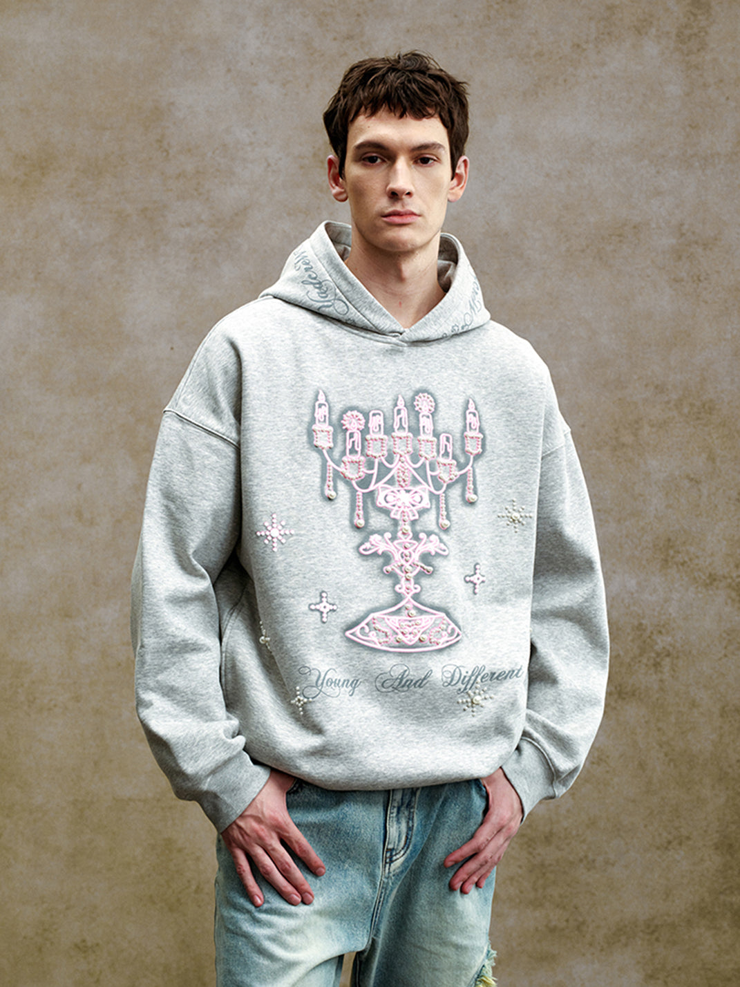 YADcrew丨Embroidered Pearl Detail Casual Hoodie