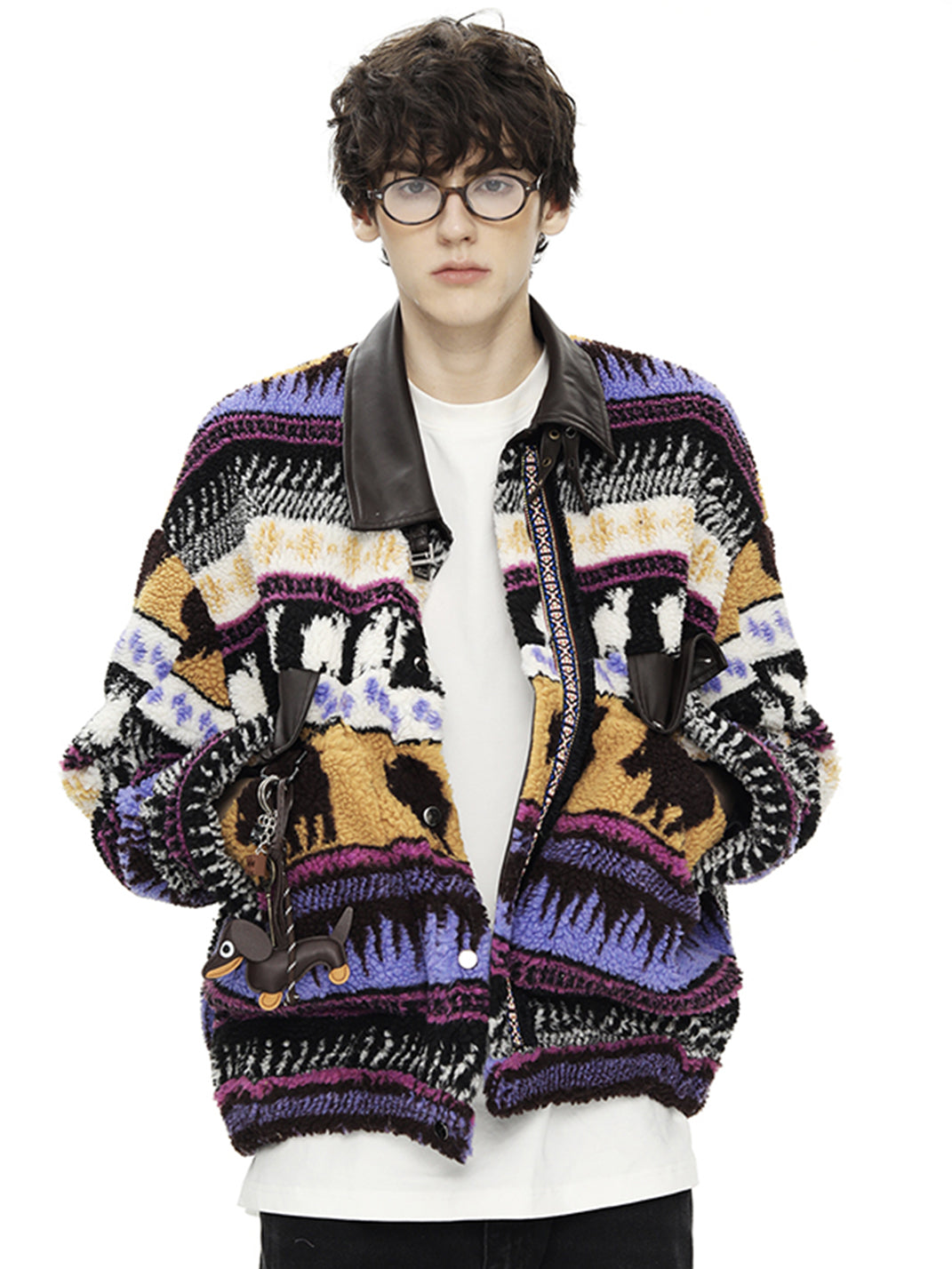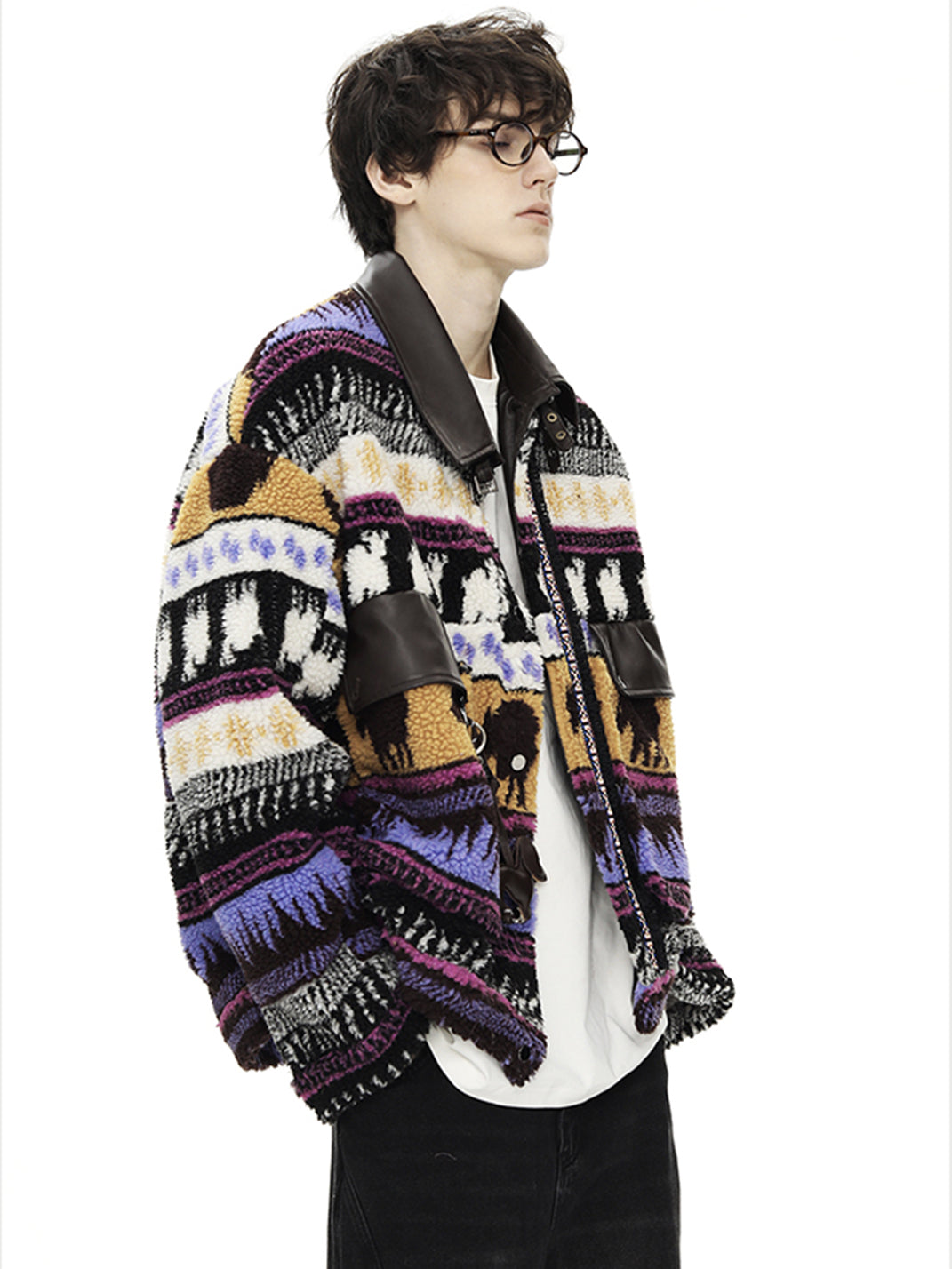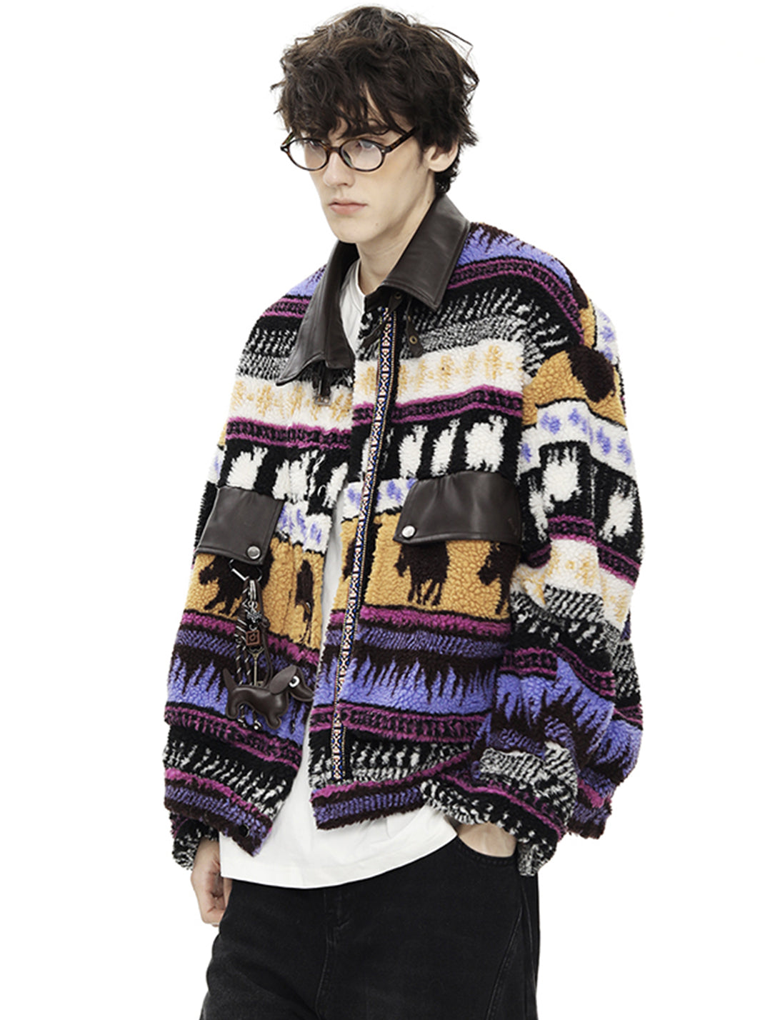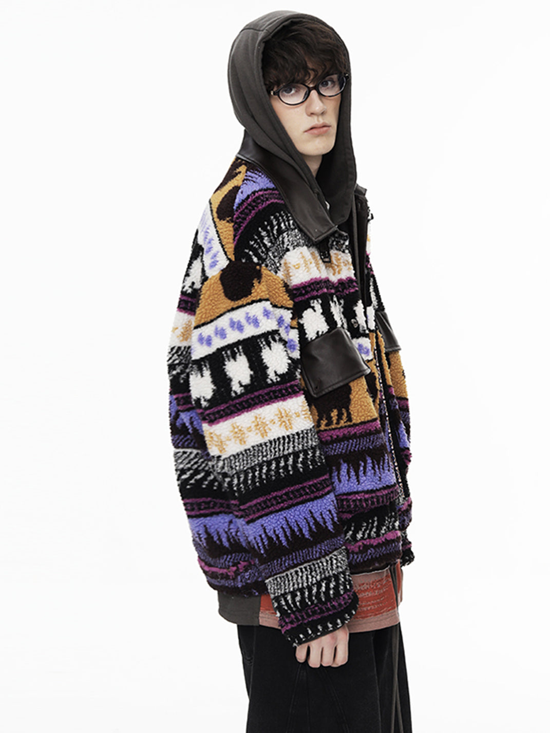 SIN87 | Fair Isle Lamb Wool Sherpa Jacket
