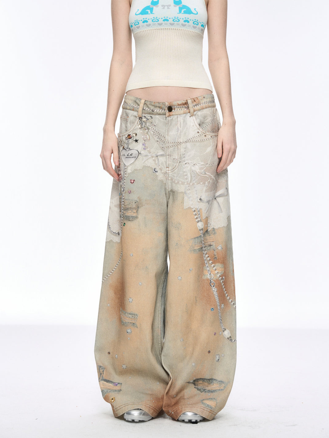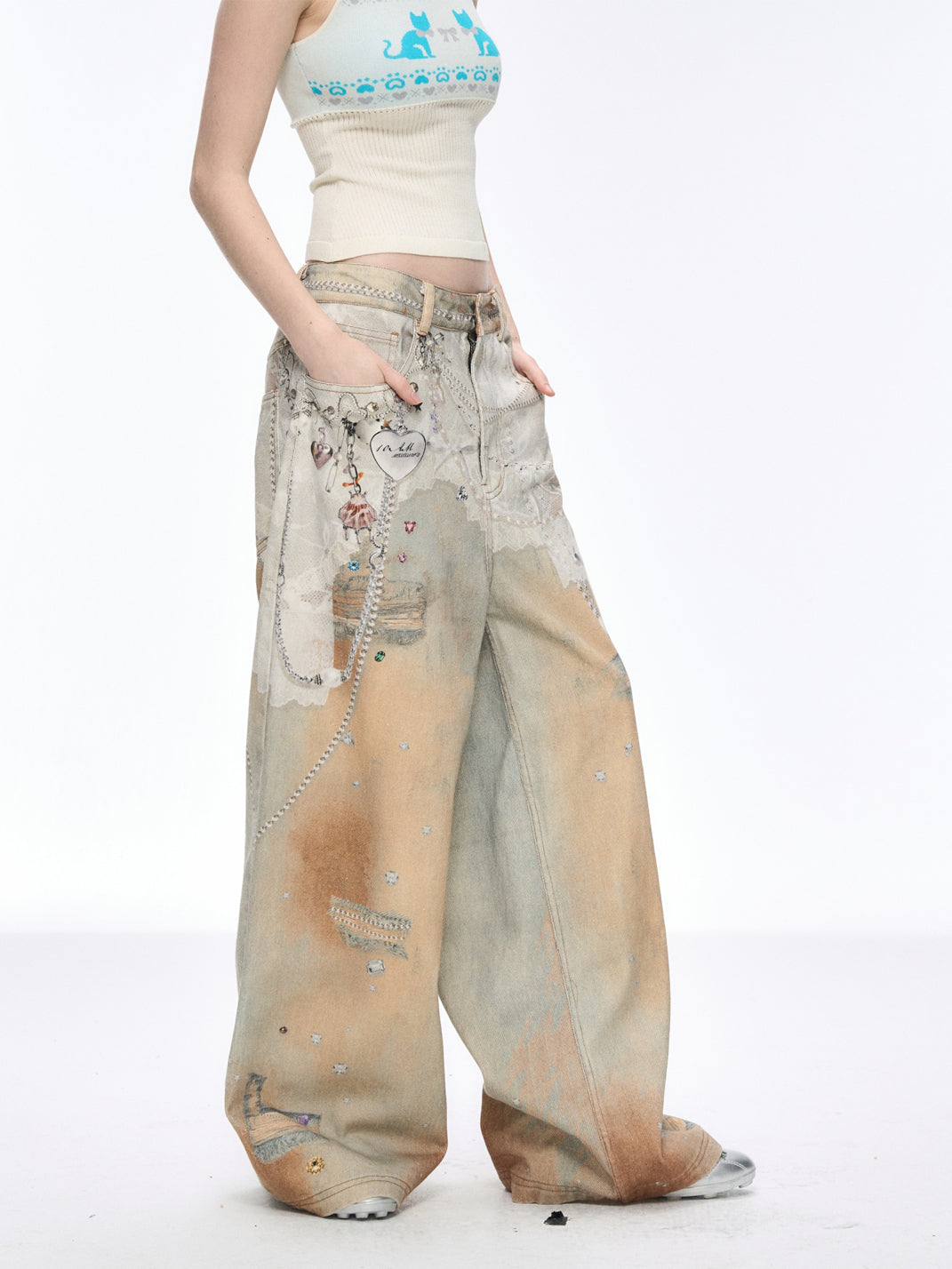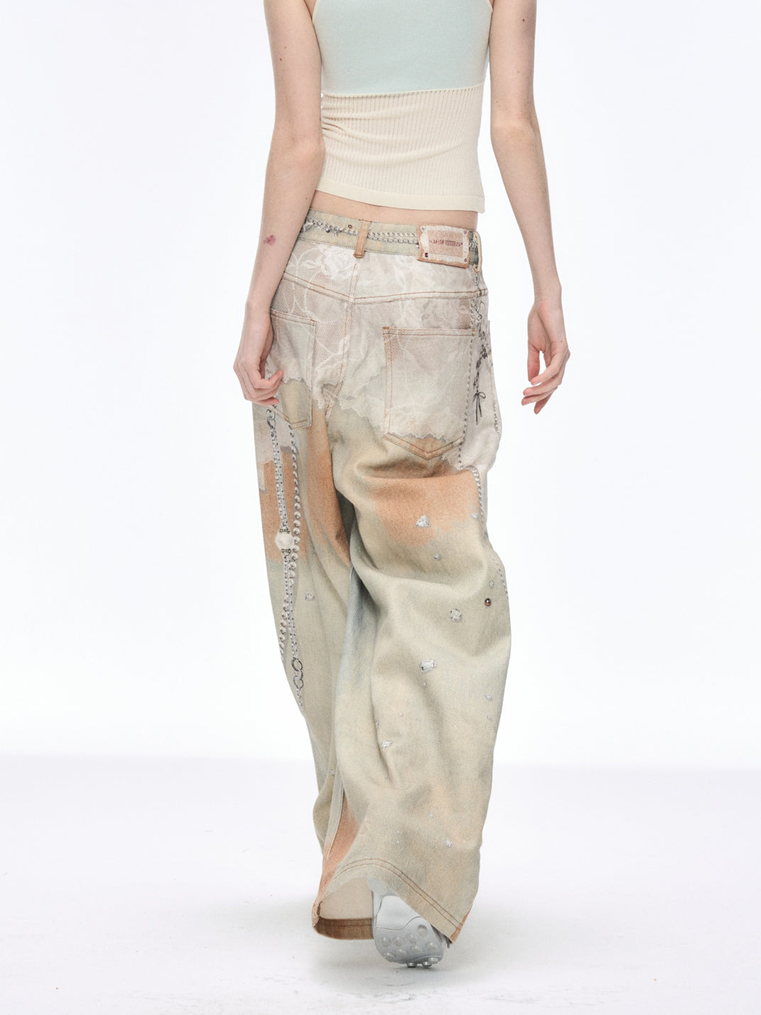 Yandan | Tie Dye 3D Print Straight Leg Jeans