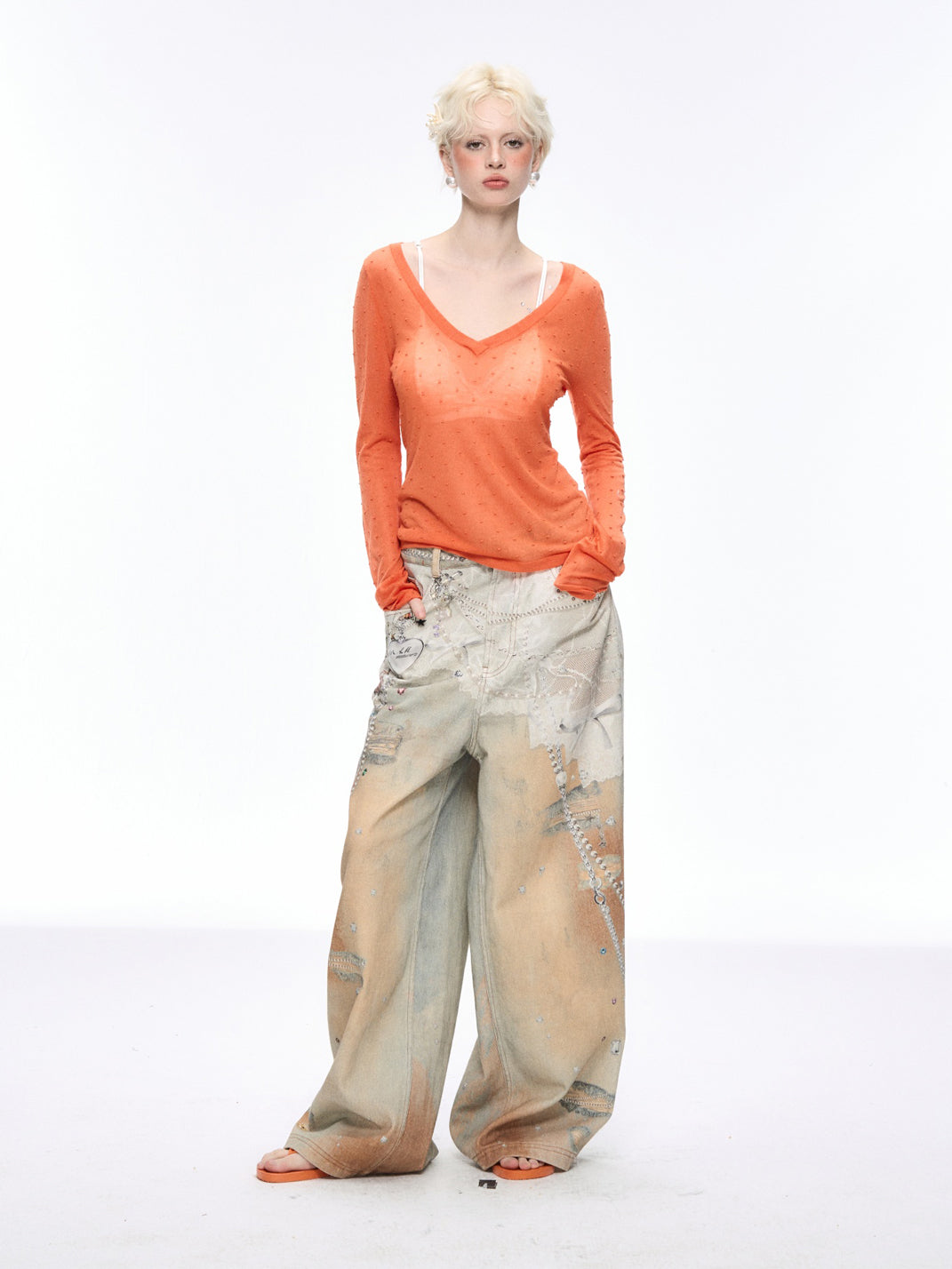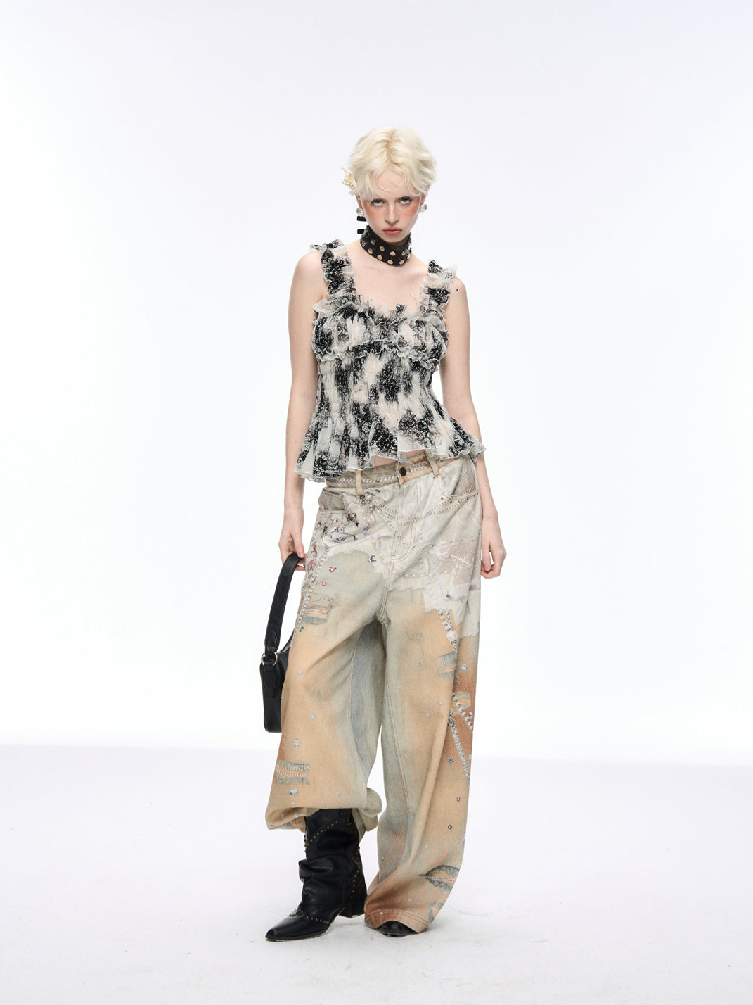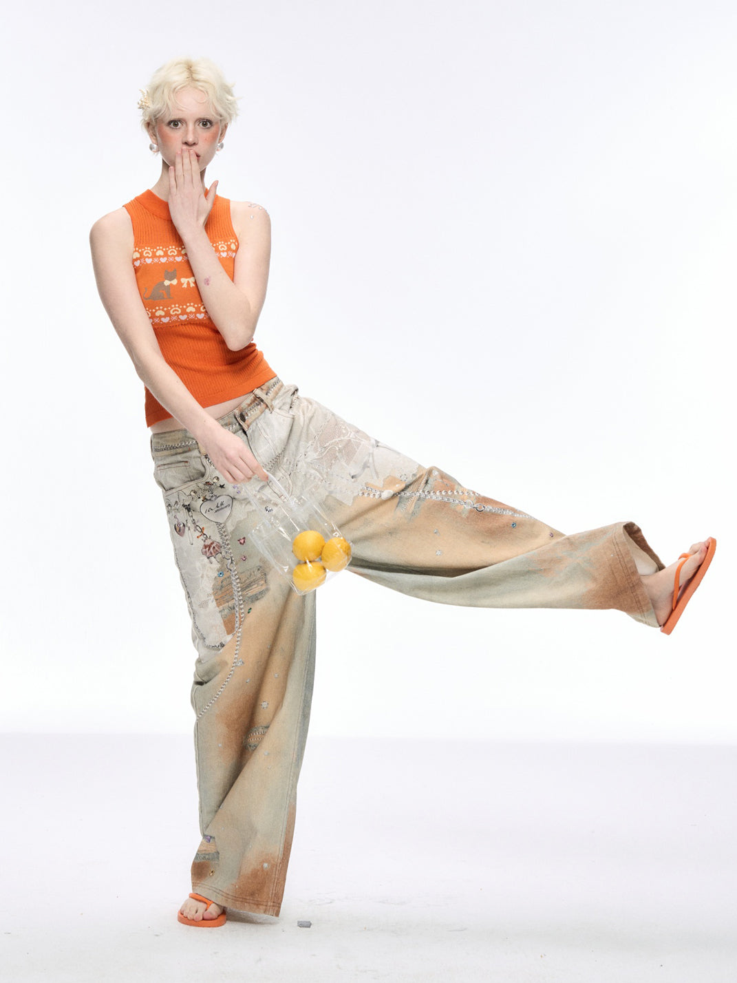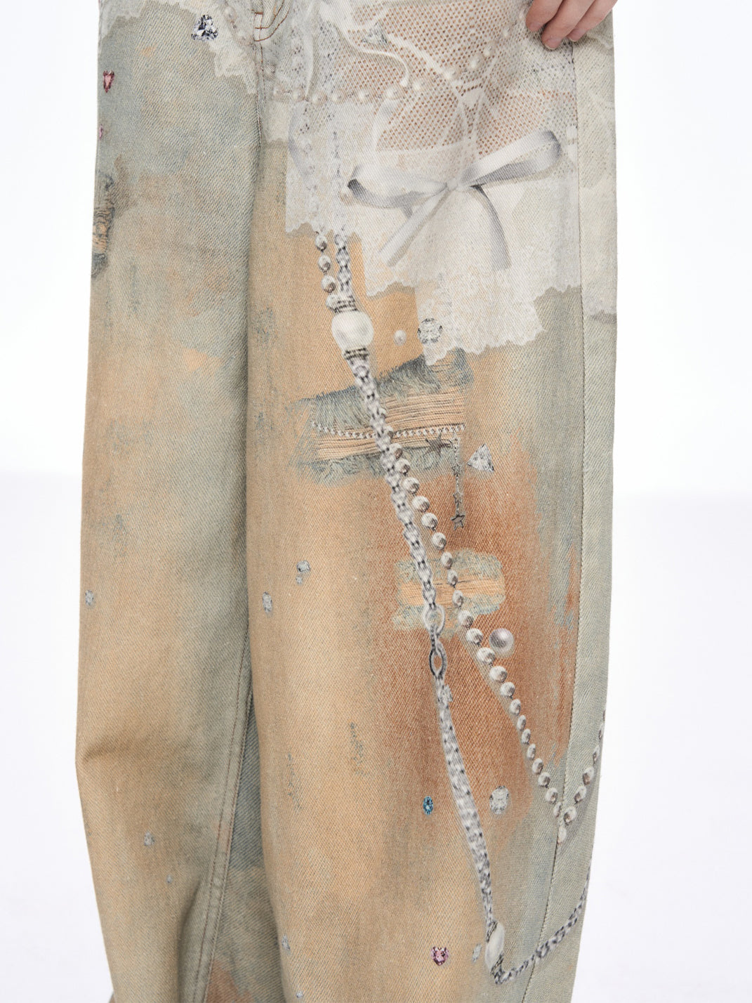 Yandan | Tie Dye 3D Print Straight Leg Jeans