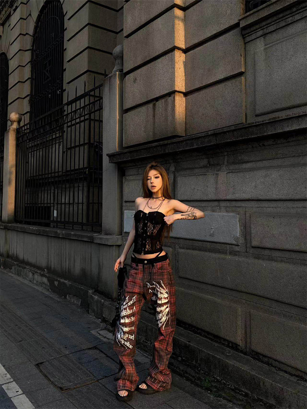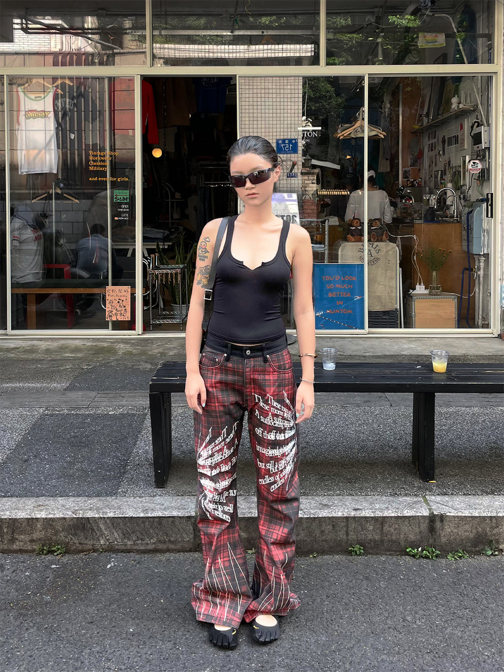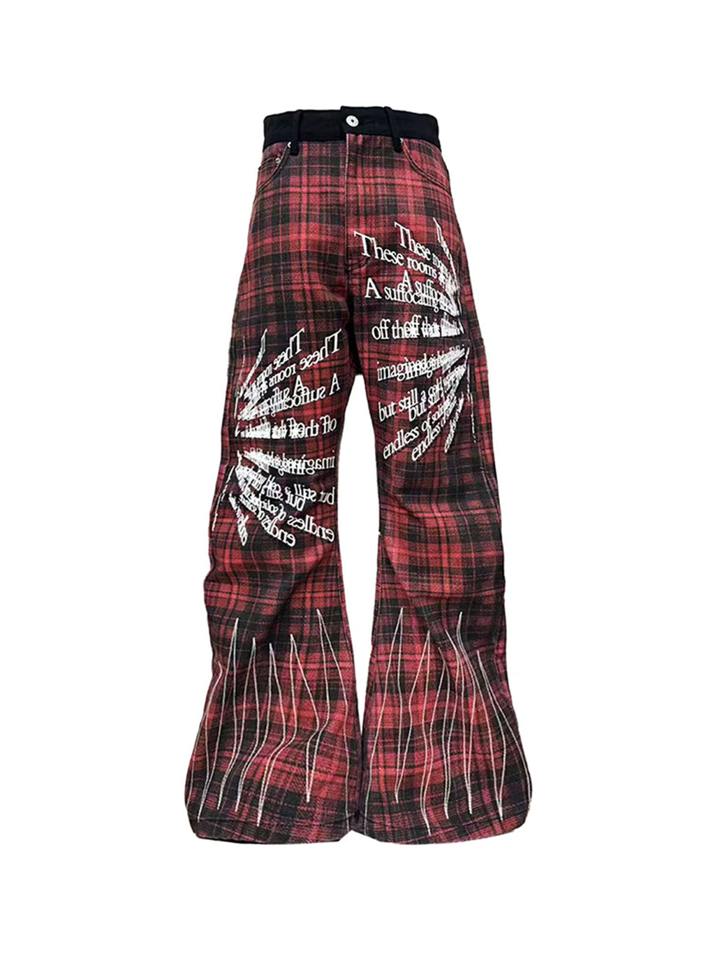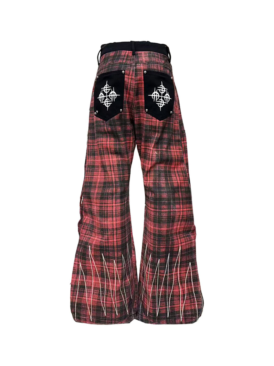 DETW | Red Plaid Embroidered Jeans saltar al contenido