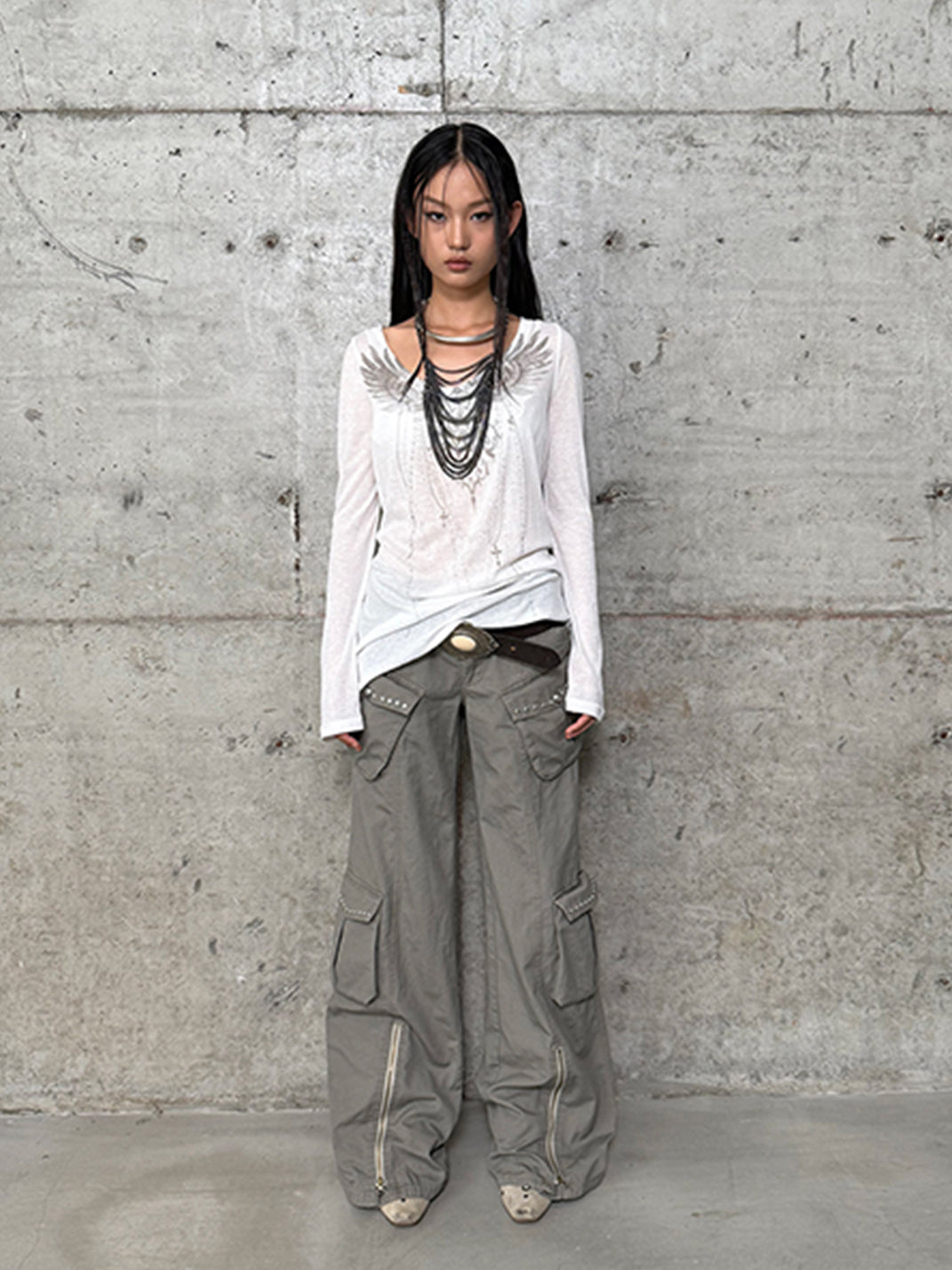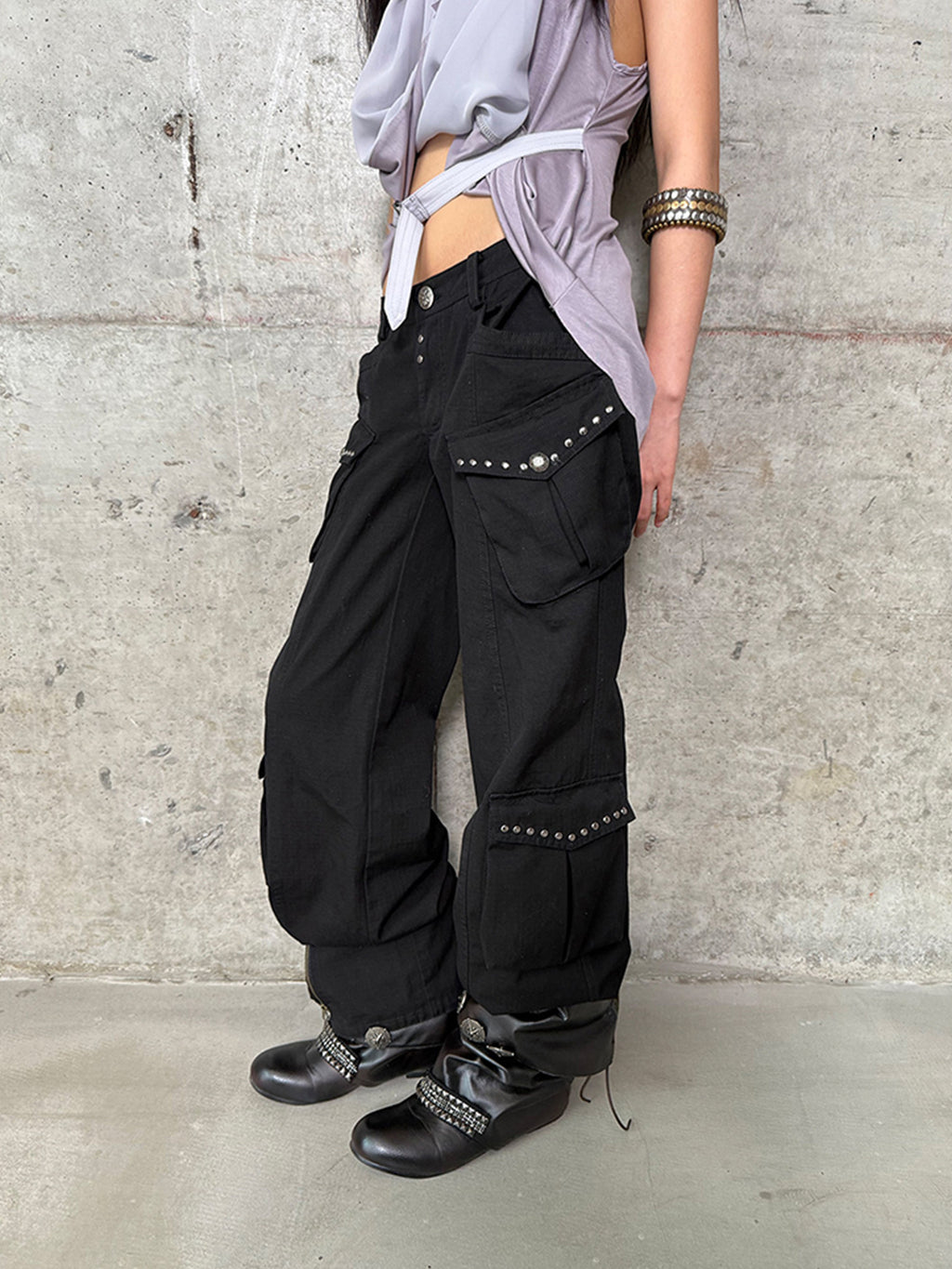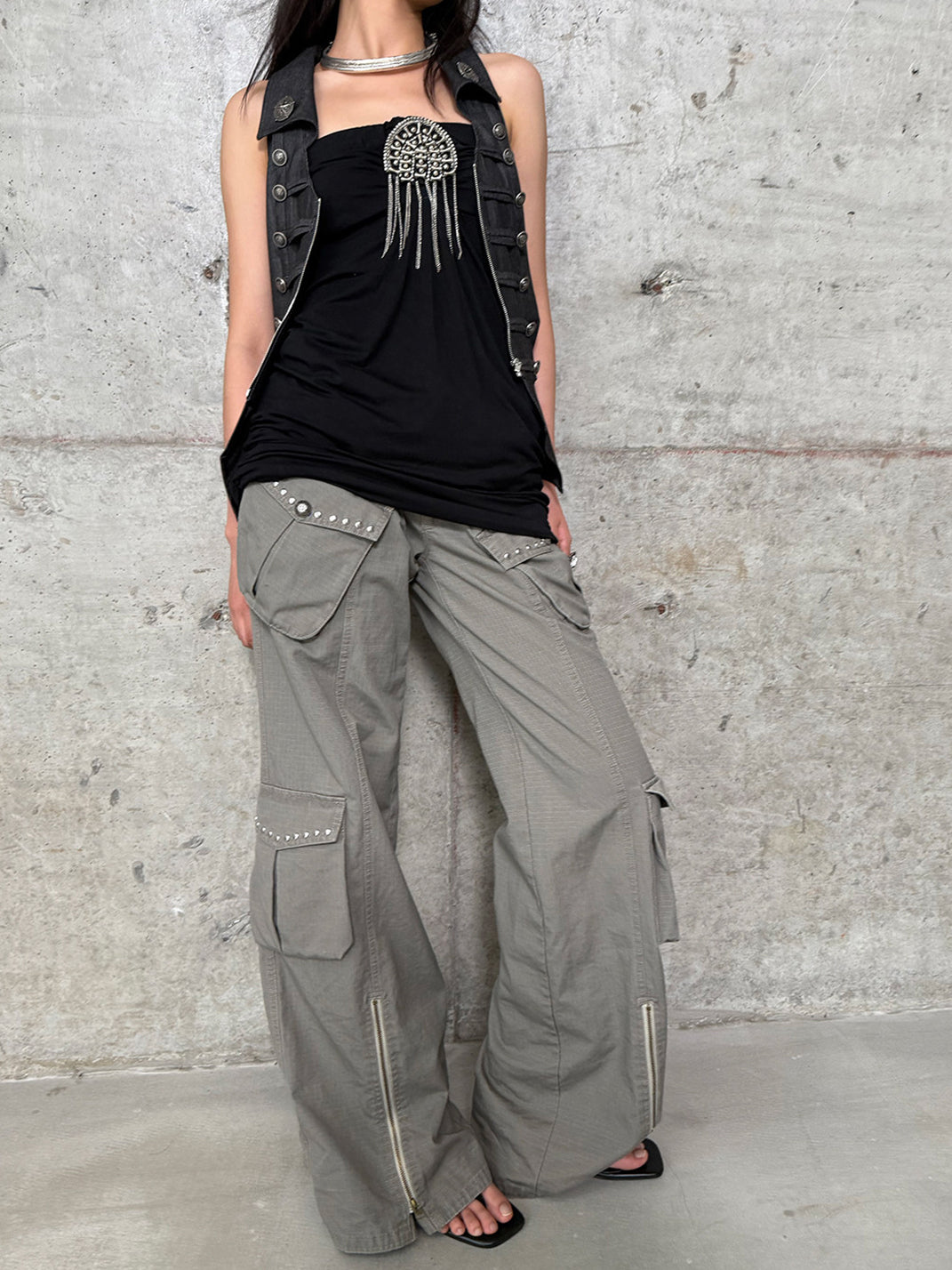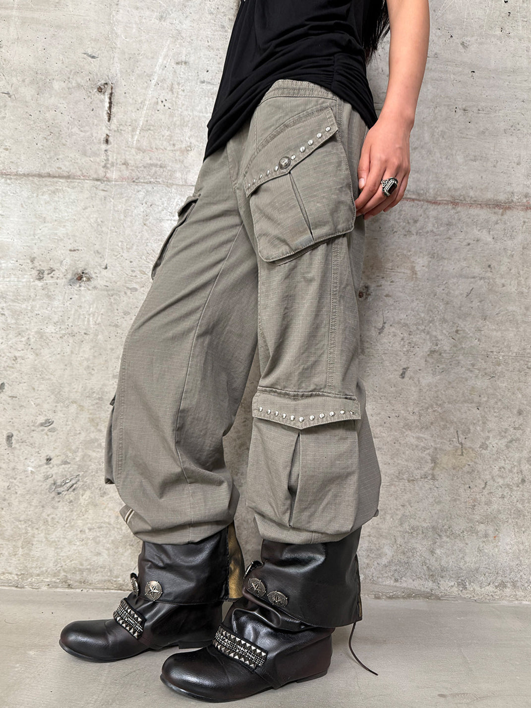 DOUBLEPUNCH | Distressed Straight-Leg Wide-Leg Cargo Pants saltar al contenido