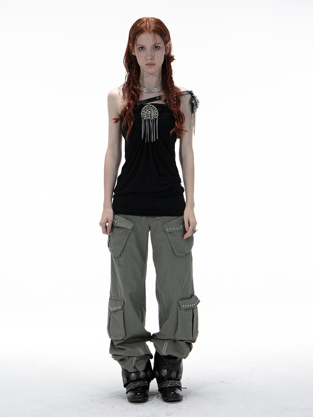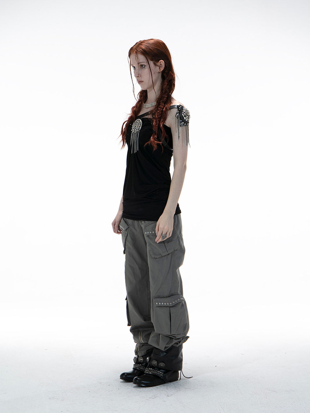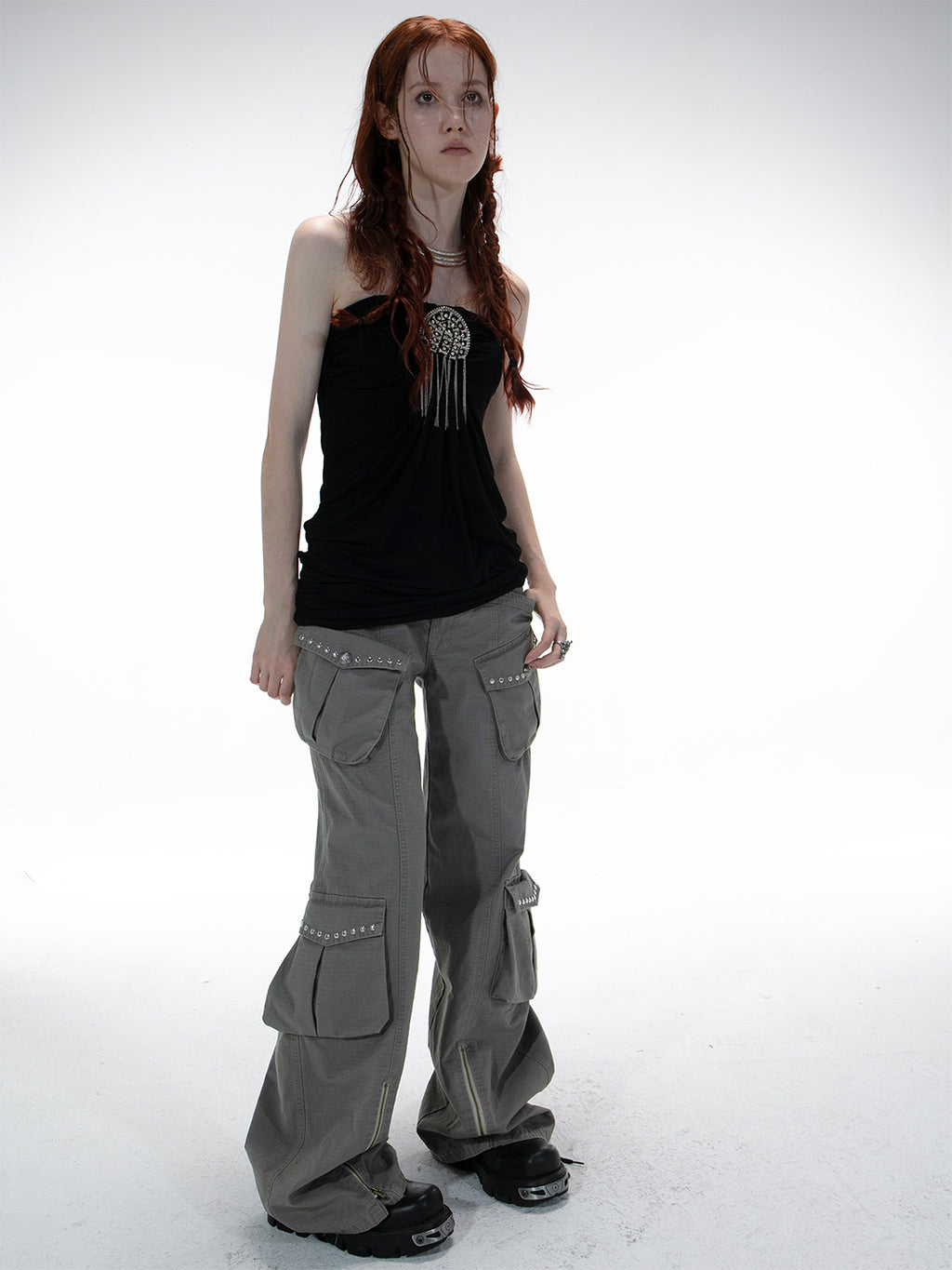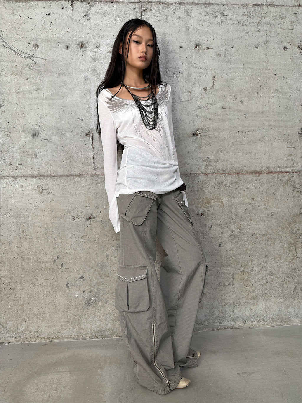 DOUBLEPUNCH | Distressed Straight-Leg Wide-Leg Cargo Pants saltar al contenido
