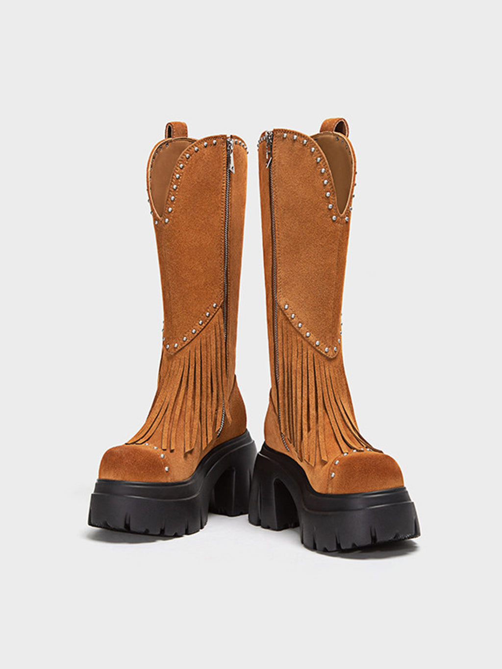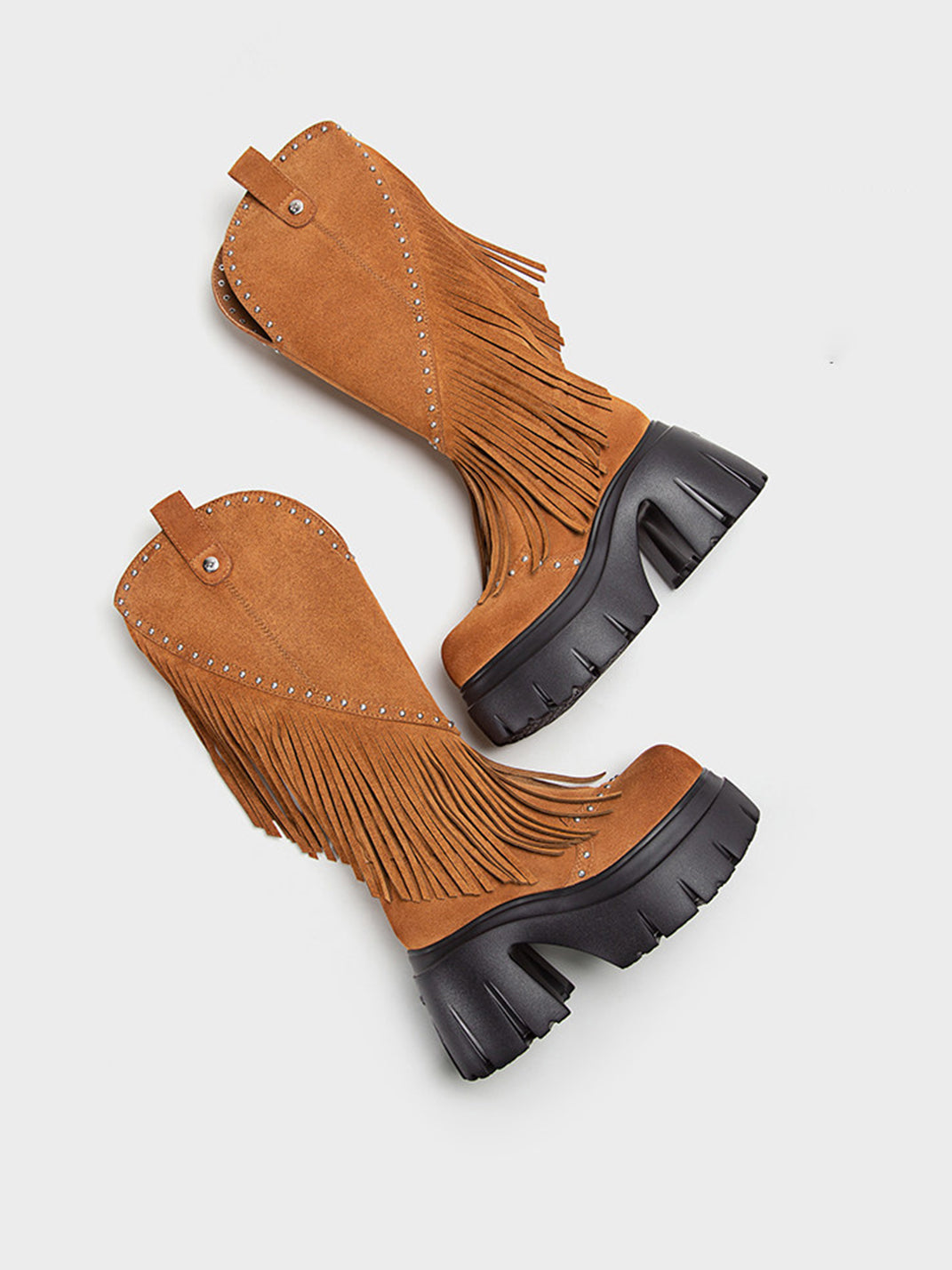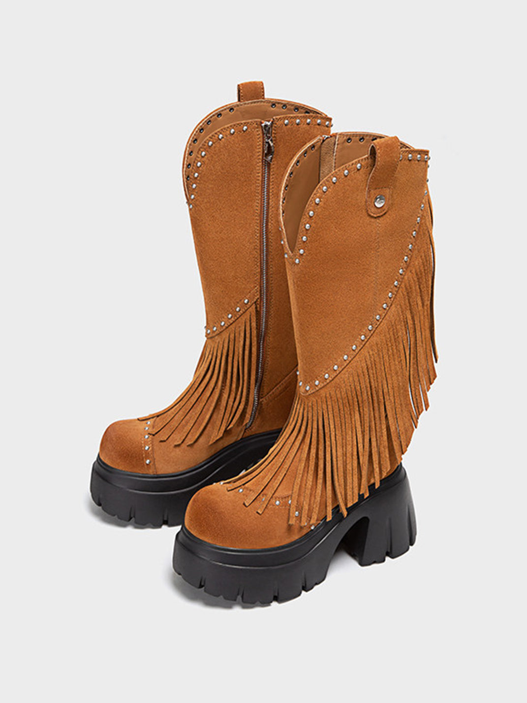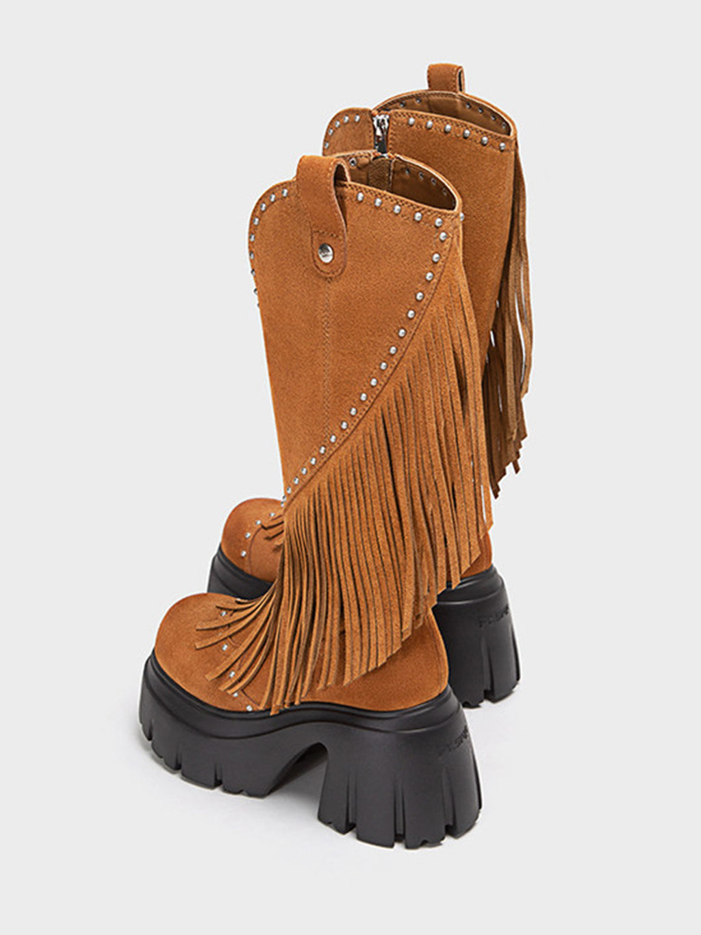 FYSPR | Tassel Studded Western Boots-Brown saltar al contenido