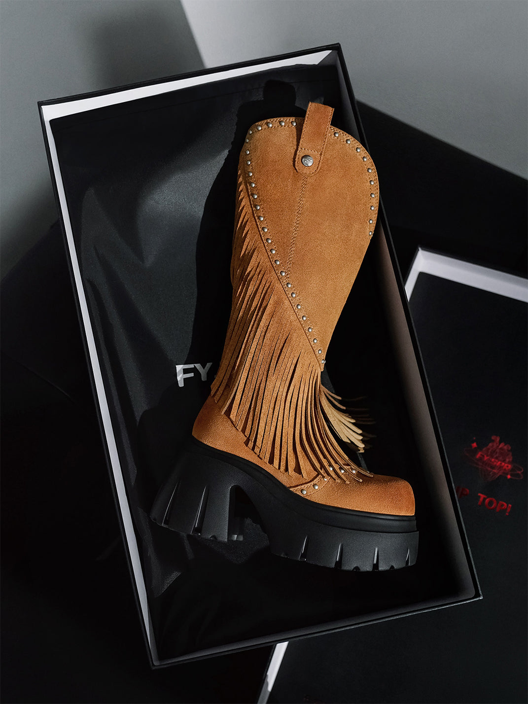 FYSPR | Tassel Studded Western Boots-Brown