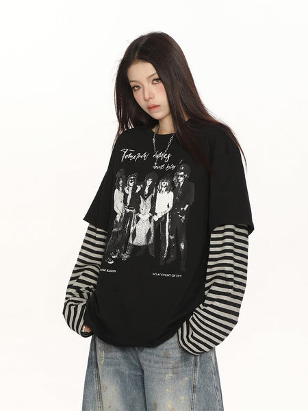 BIGGOLD | Print Faux Two-Piece Striped Shirt