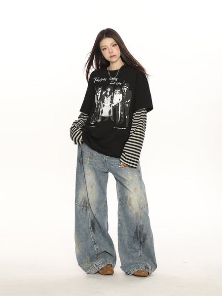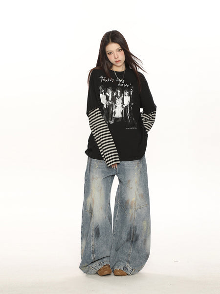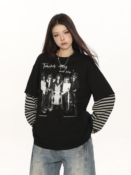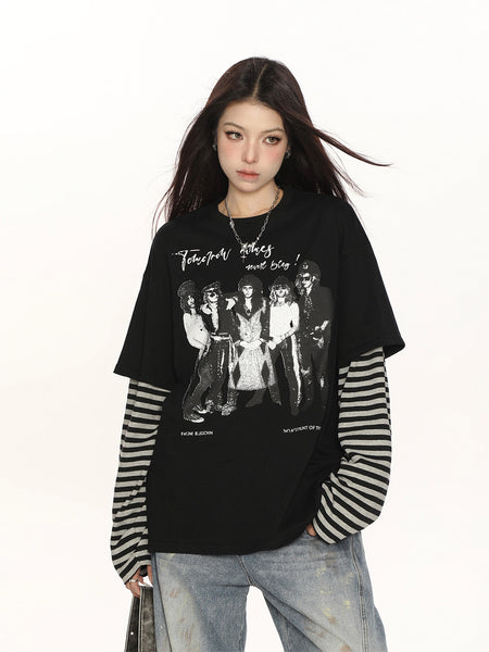 BIGGOLD | Ribbed Graffiti Faux Two-Piece Top
