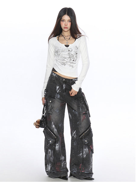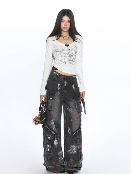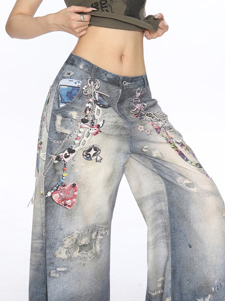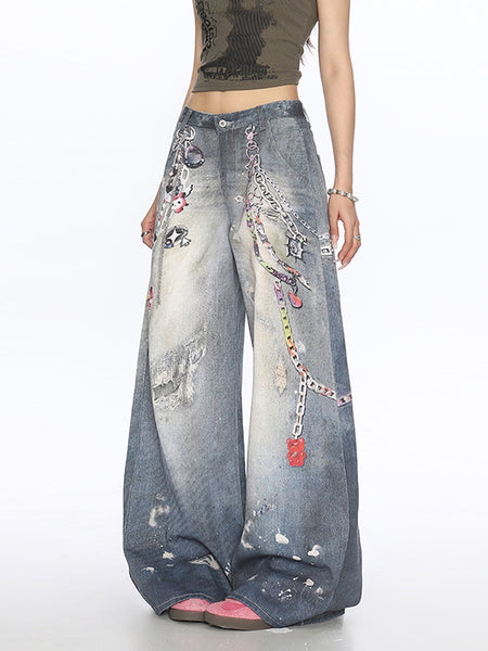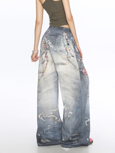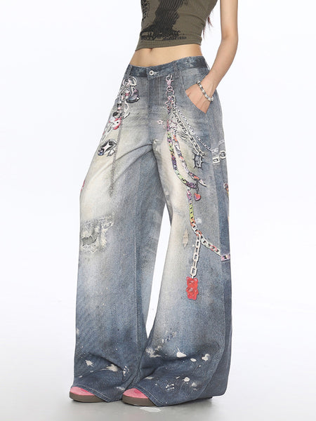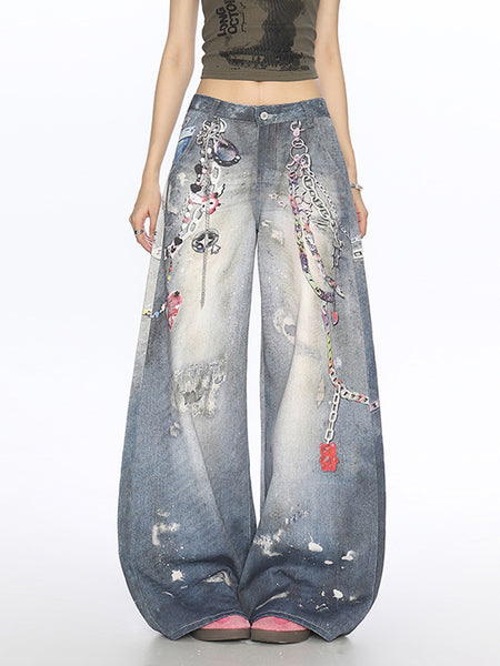 BIGGOLD | Graffiti Chain Print Wide Leg Jeans