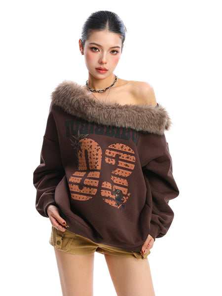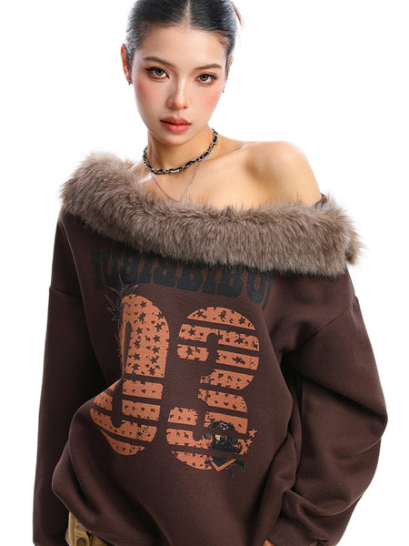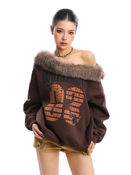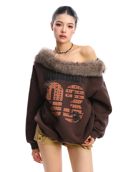 BIGGOLD | Detachable Fur Collar One Shoulder Sw...