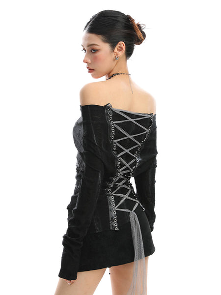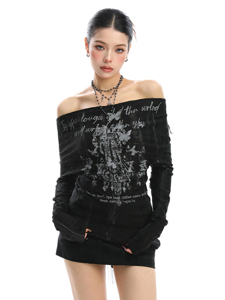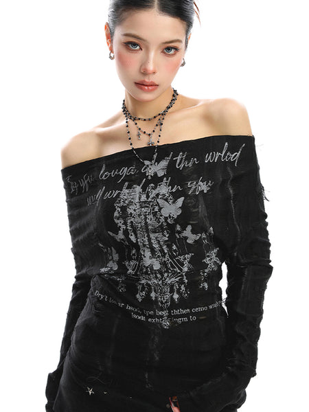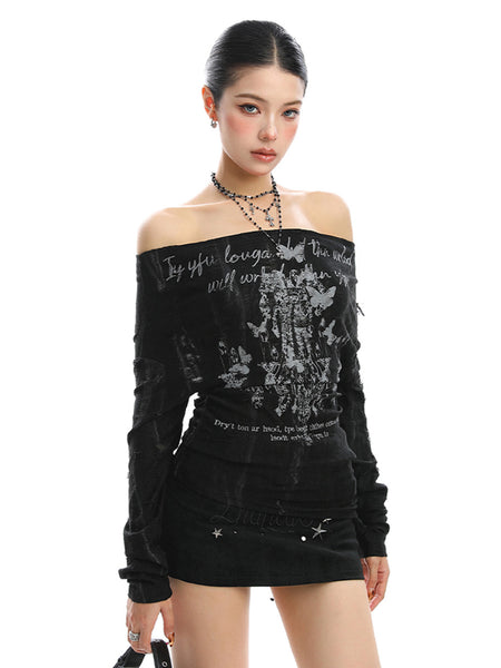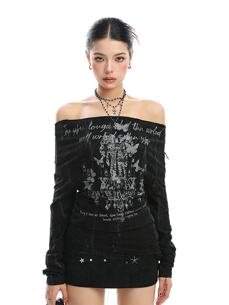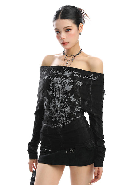 BIGGOLD | Graffiti Off Shoulder Back Lace-up Top