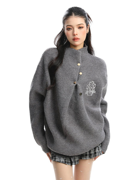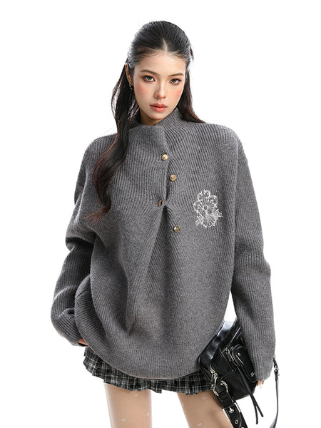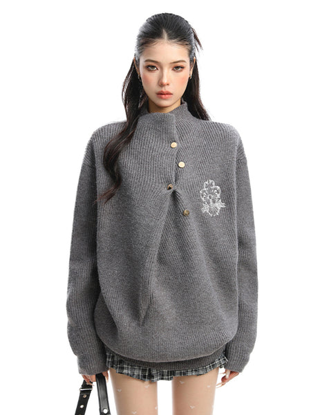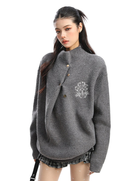 BIGGOLD | Irregular Neckline Embroidered Sweater