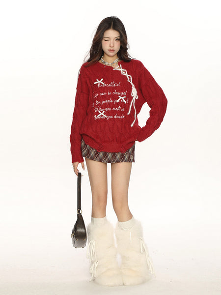 BIGGOLD | Cable Knit Bows Lacing Sweater