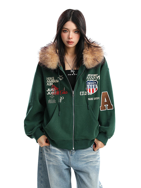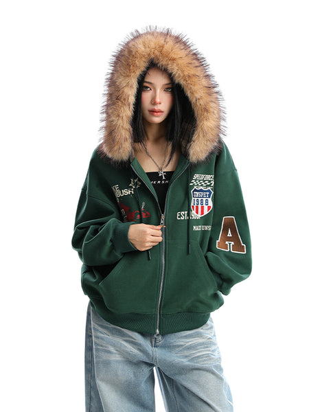 BIGGOLD | Embroidered Detachable Fur Collar Hoo...