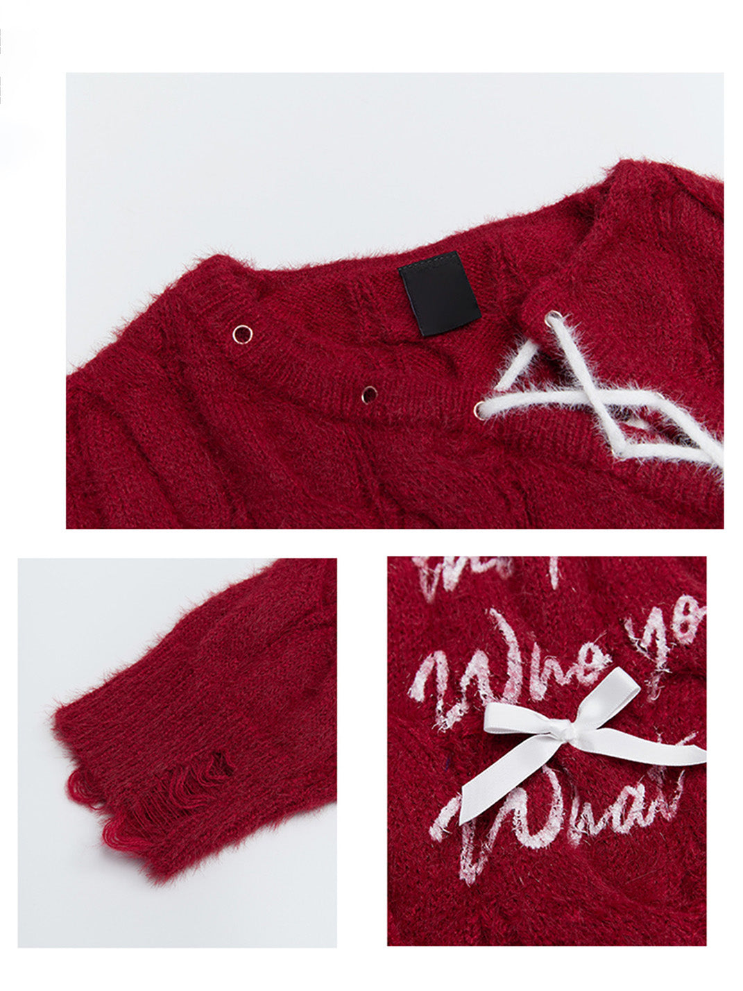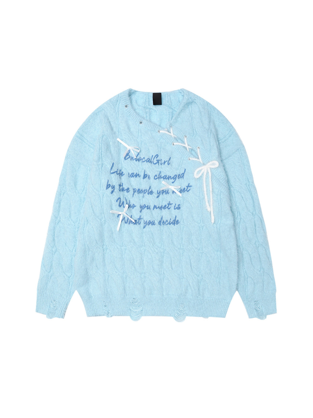 BIGGOLD | Cable Knit Bows Lacing Sweater saltar al contenido