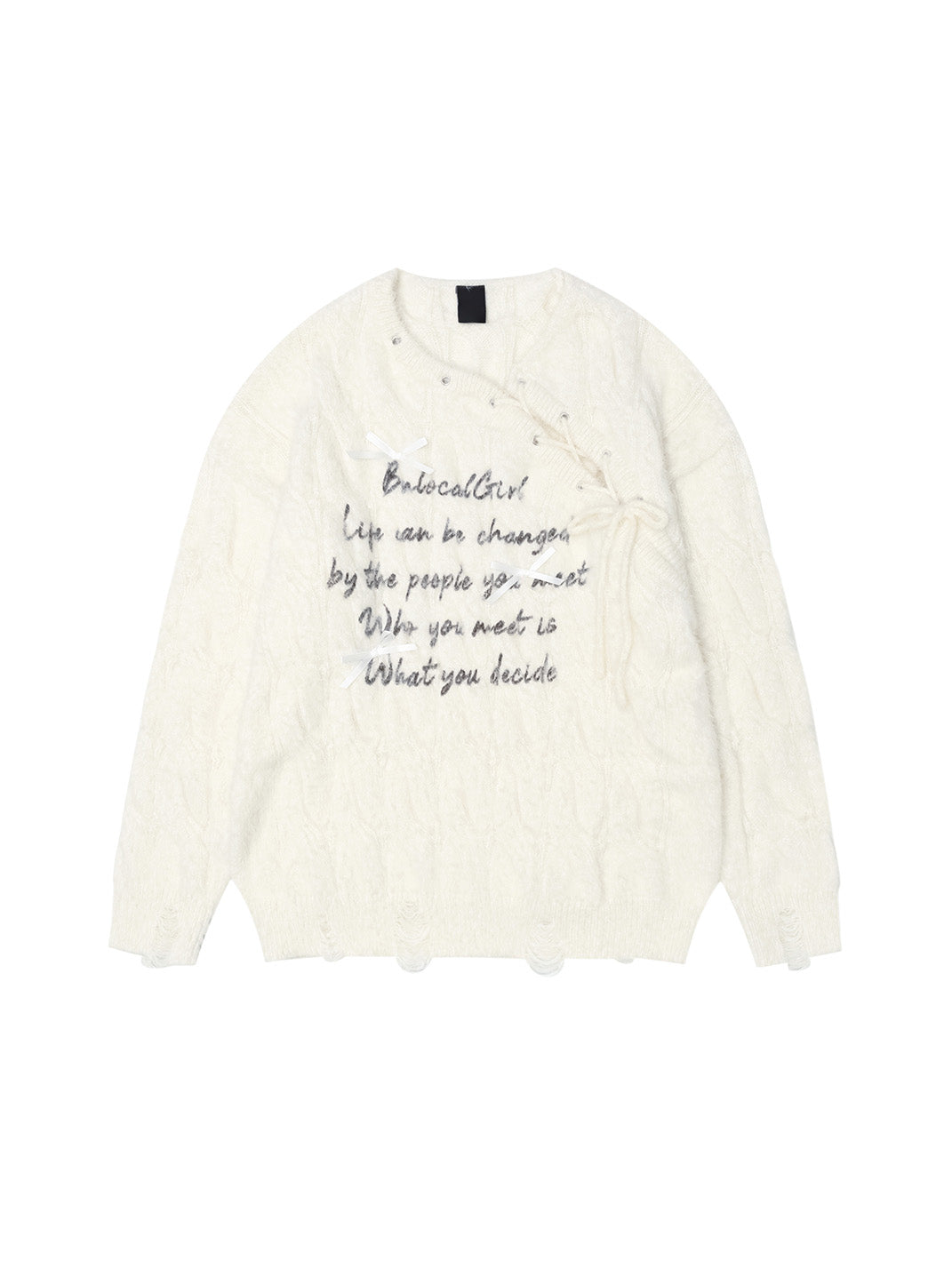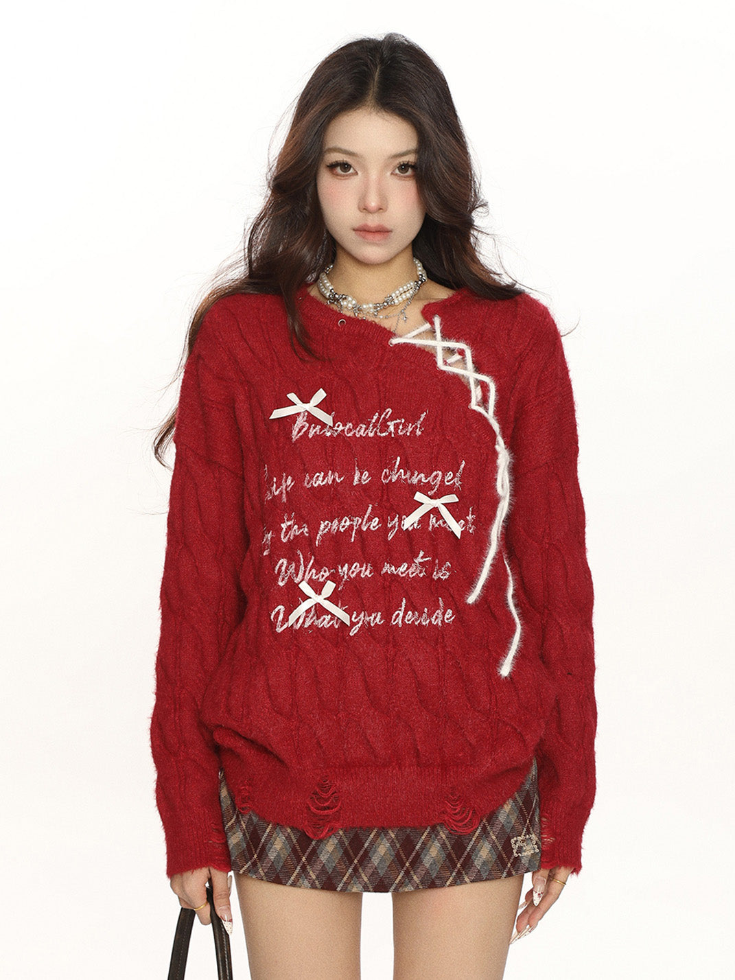 BIGGOLD | Cable Knit Bows Lacing Sweater
