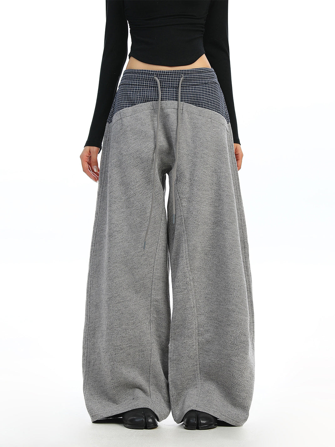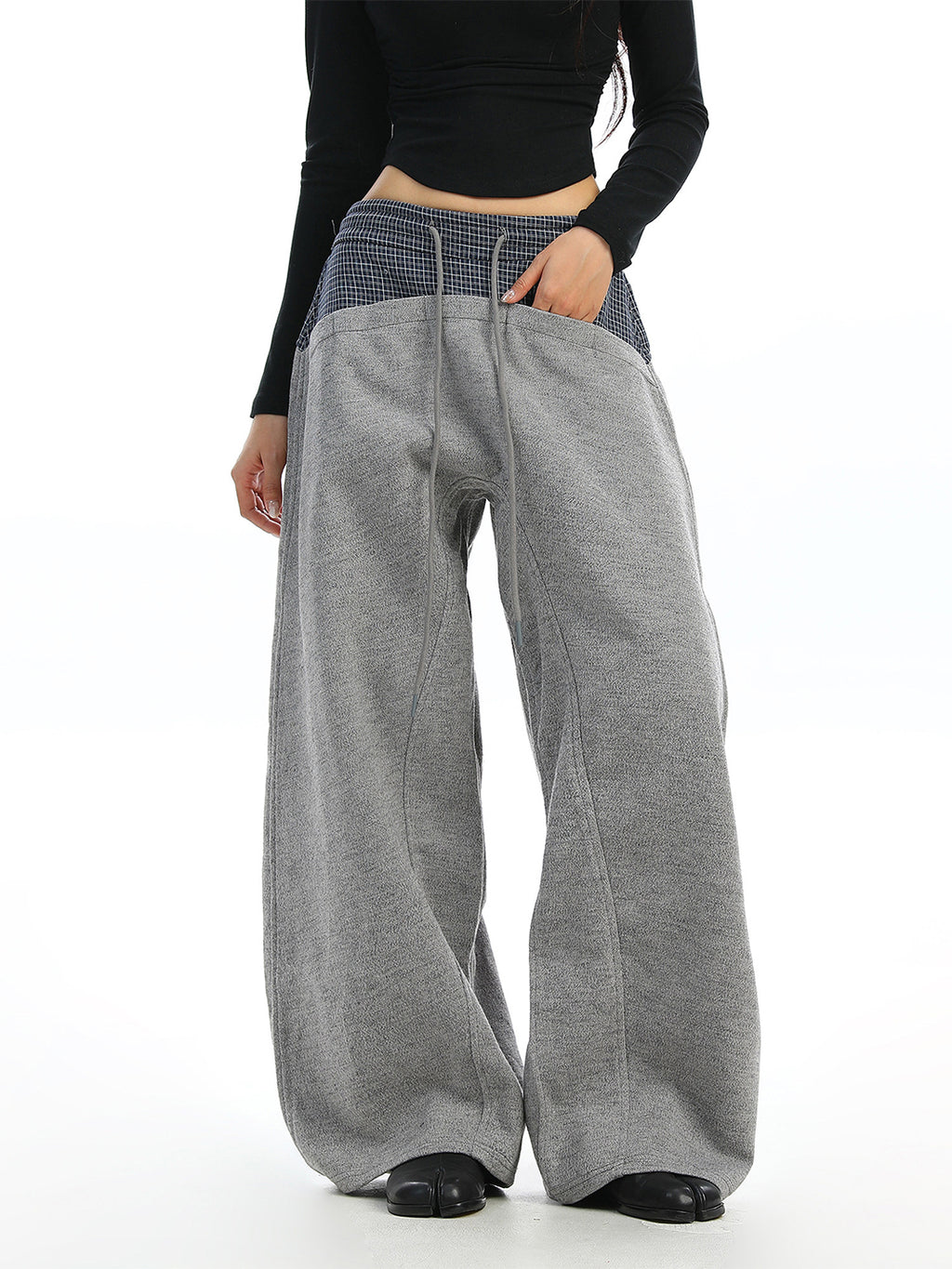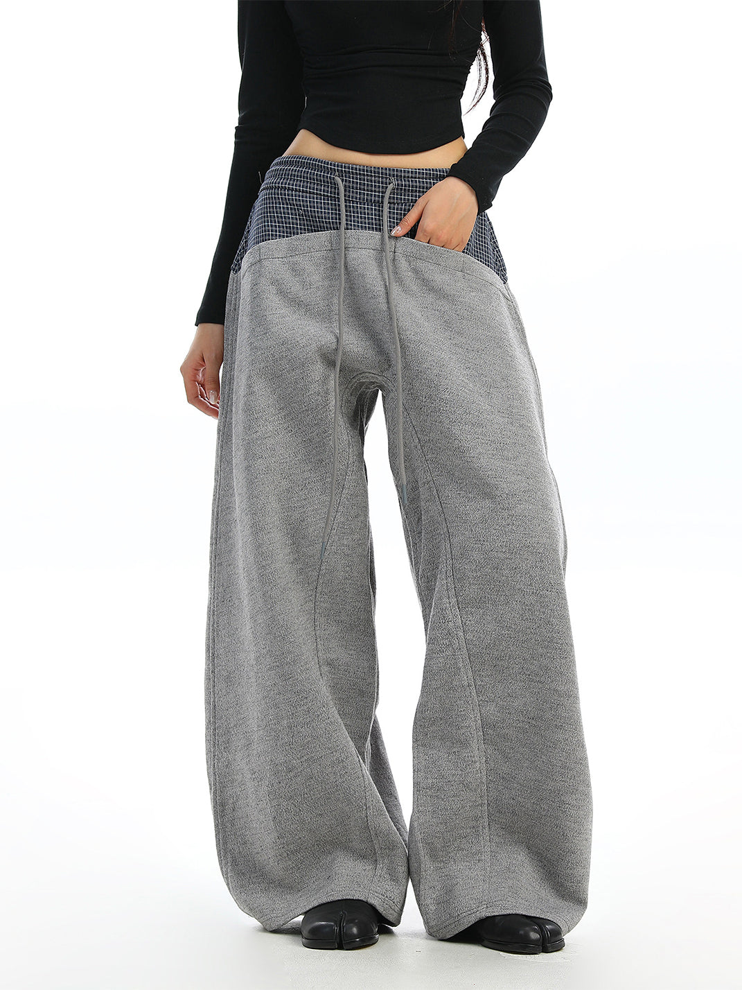 BIGGOLD | Plaid Color-Blocked Drawstring Casual Pants
