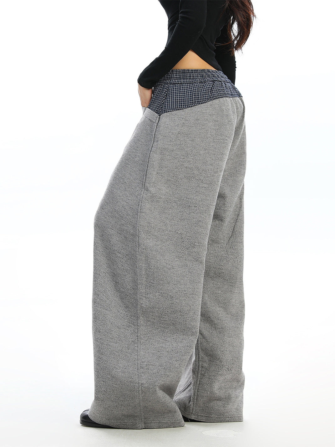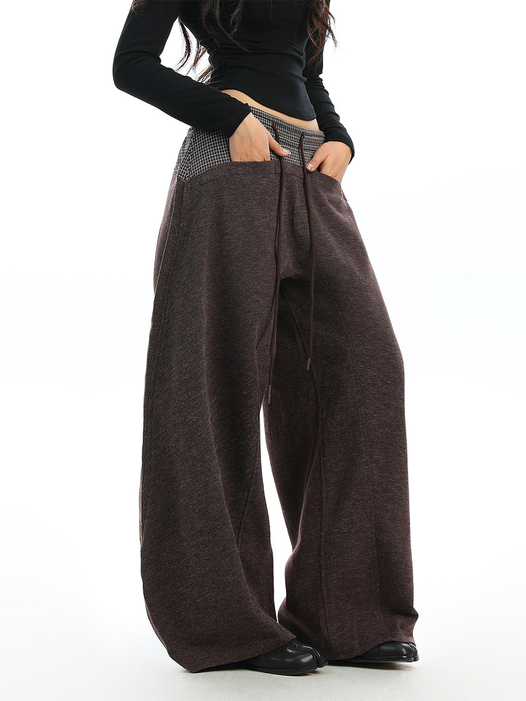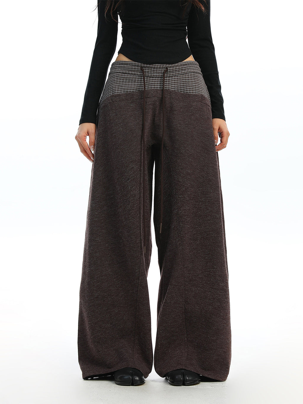 BIGGOLD | Plaid Color-Blocked Drawstring Casual Pants