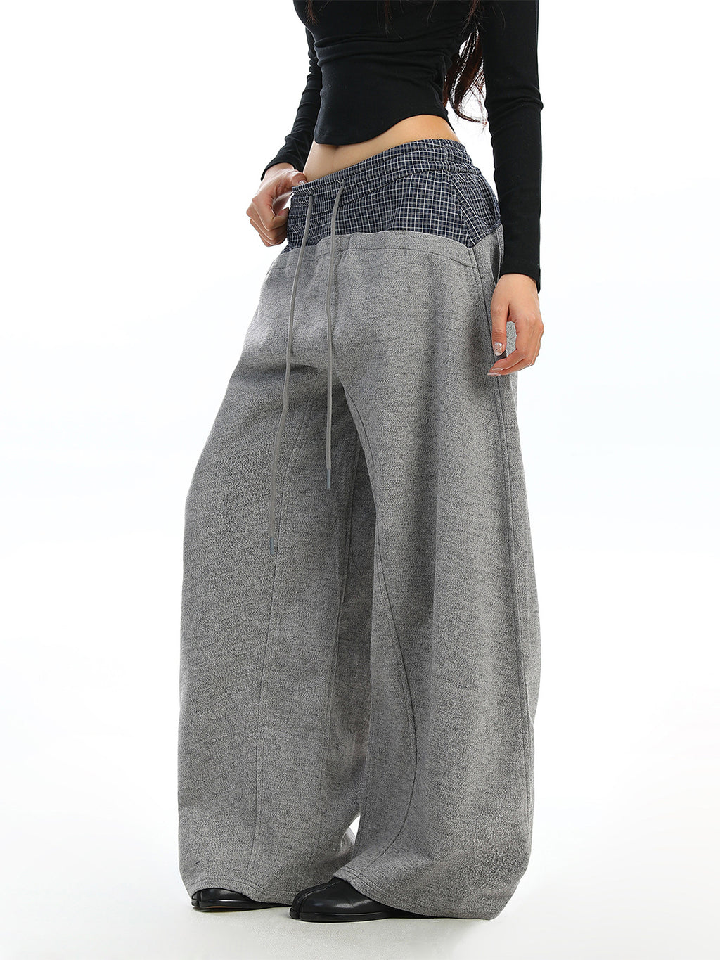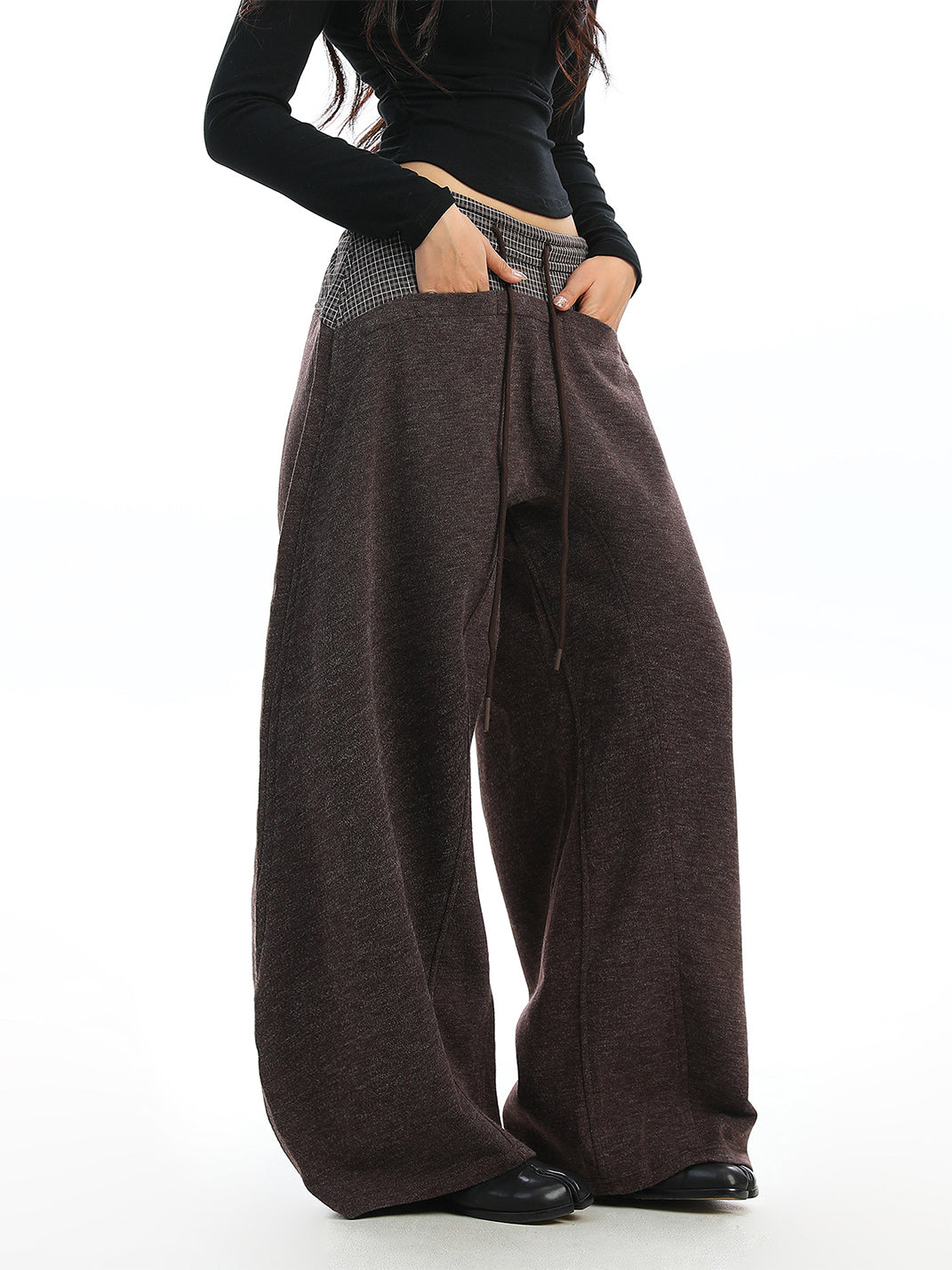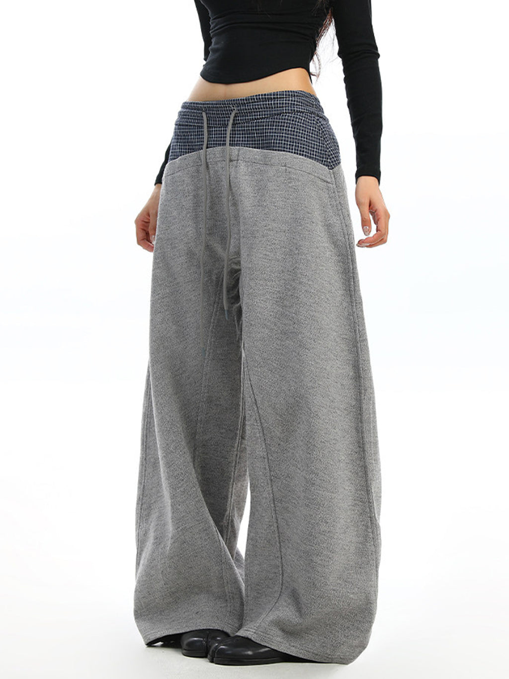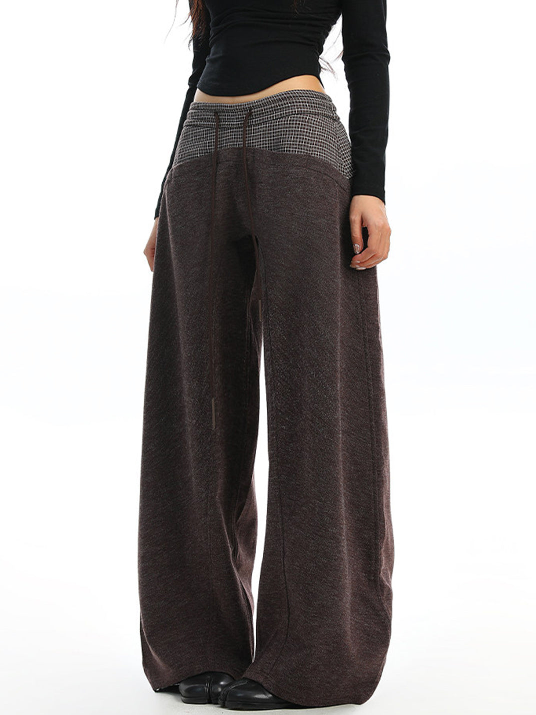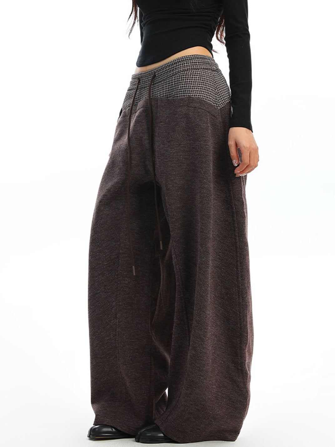 BIGGOLD | Plaid Color-Blocked Drawstring Casual Pants saltar al contenido