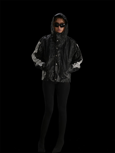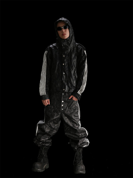 MEDM | Faux Leather & Hair Heart Zip-Up Hoodie