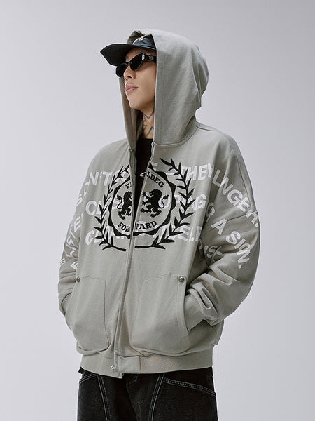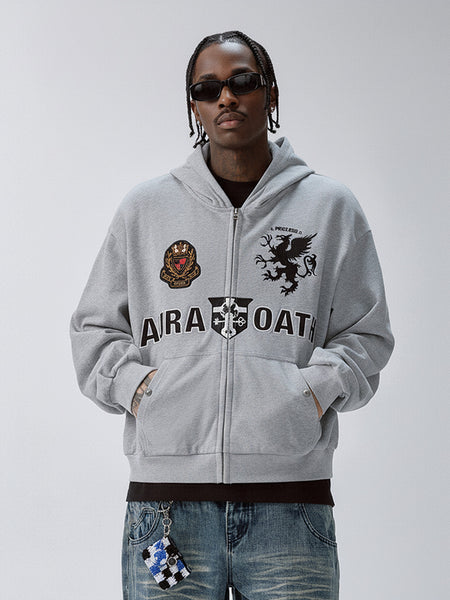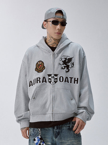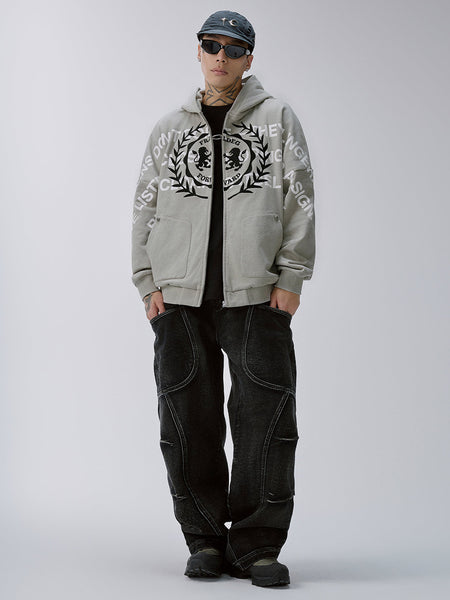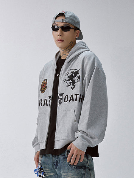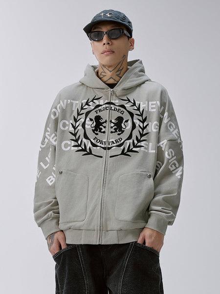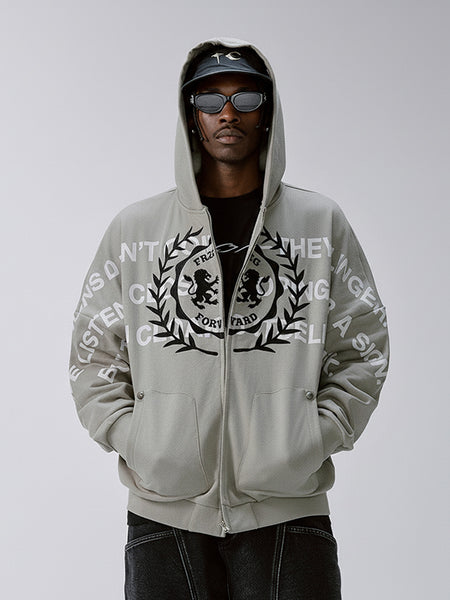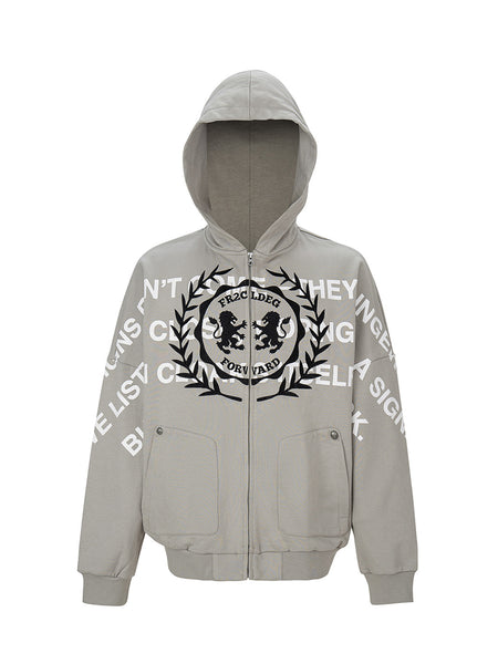 Recover Zone | Faux Fur Trim Graphic Zip-Up Hoodie