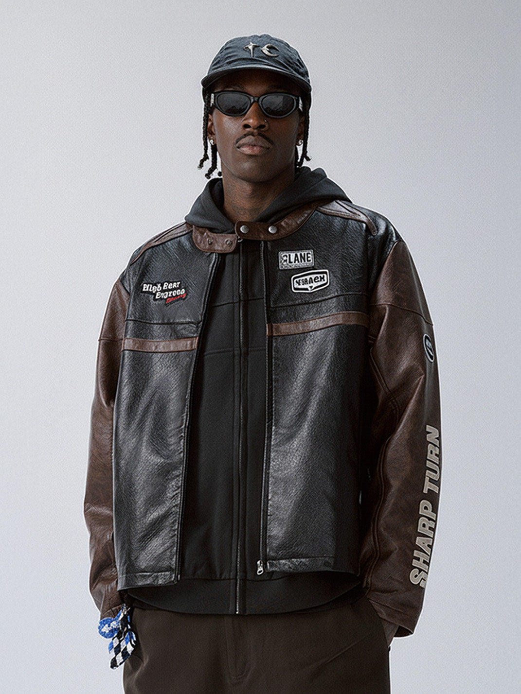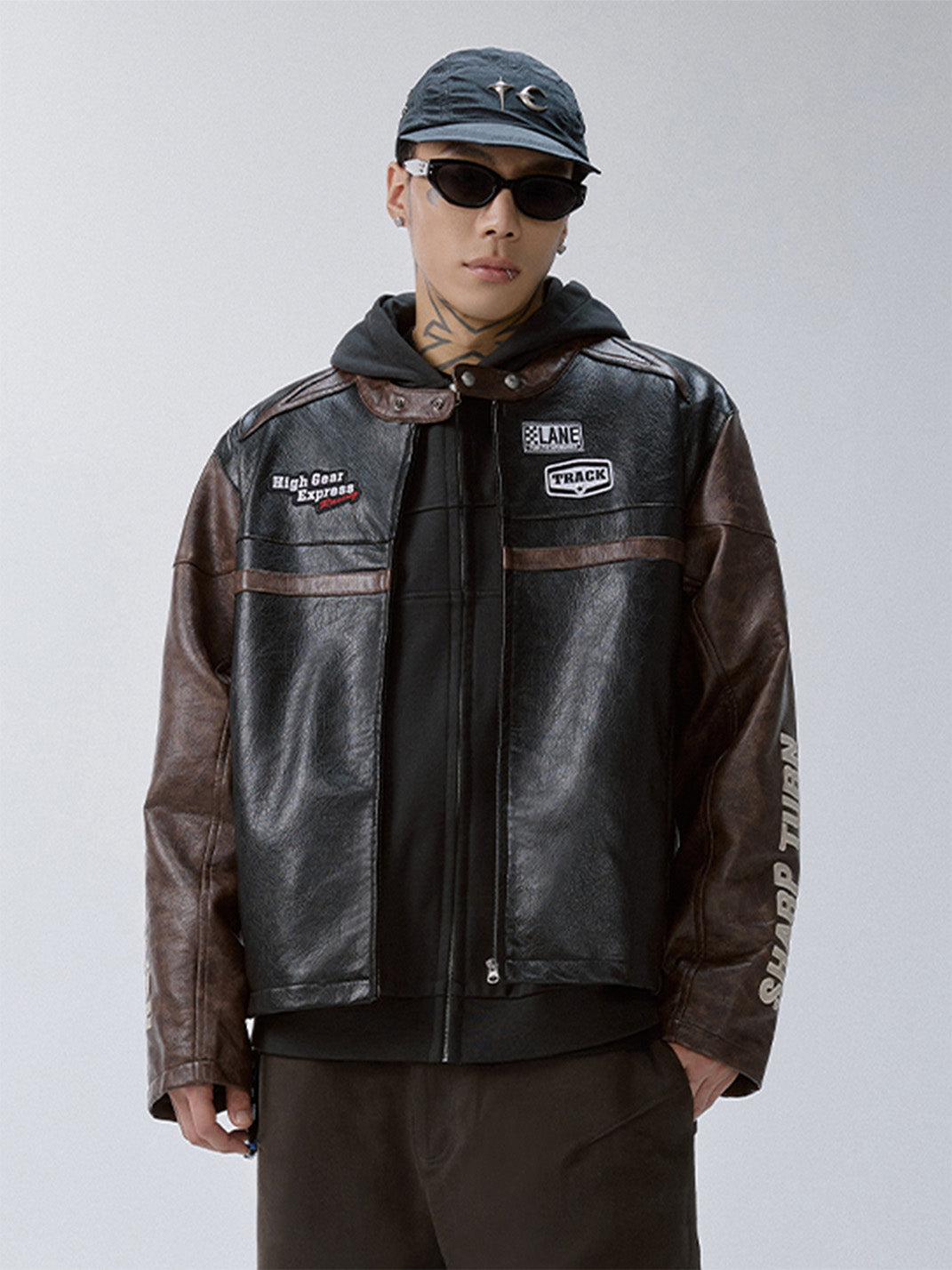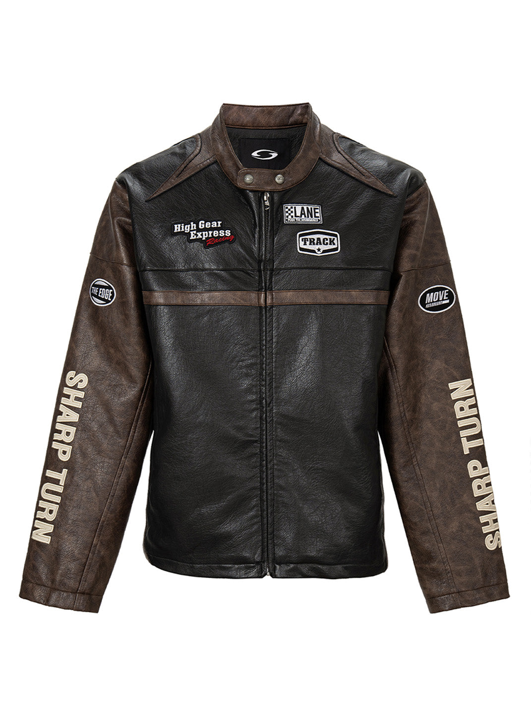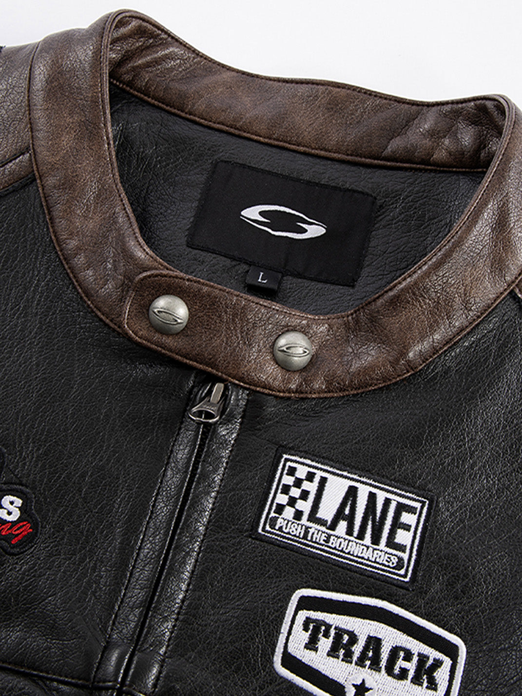 F2CE | Retro Embroidered Patch PU Moto Jacket saltar al contenido
