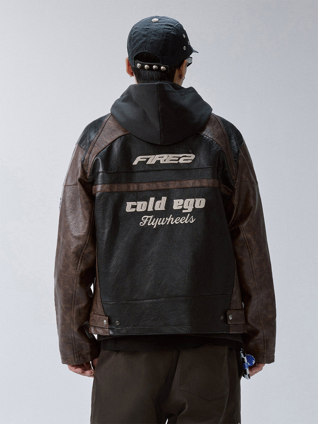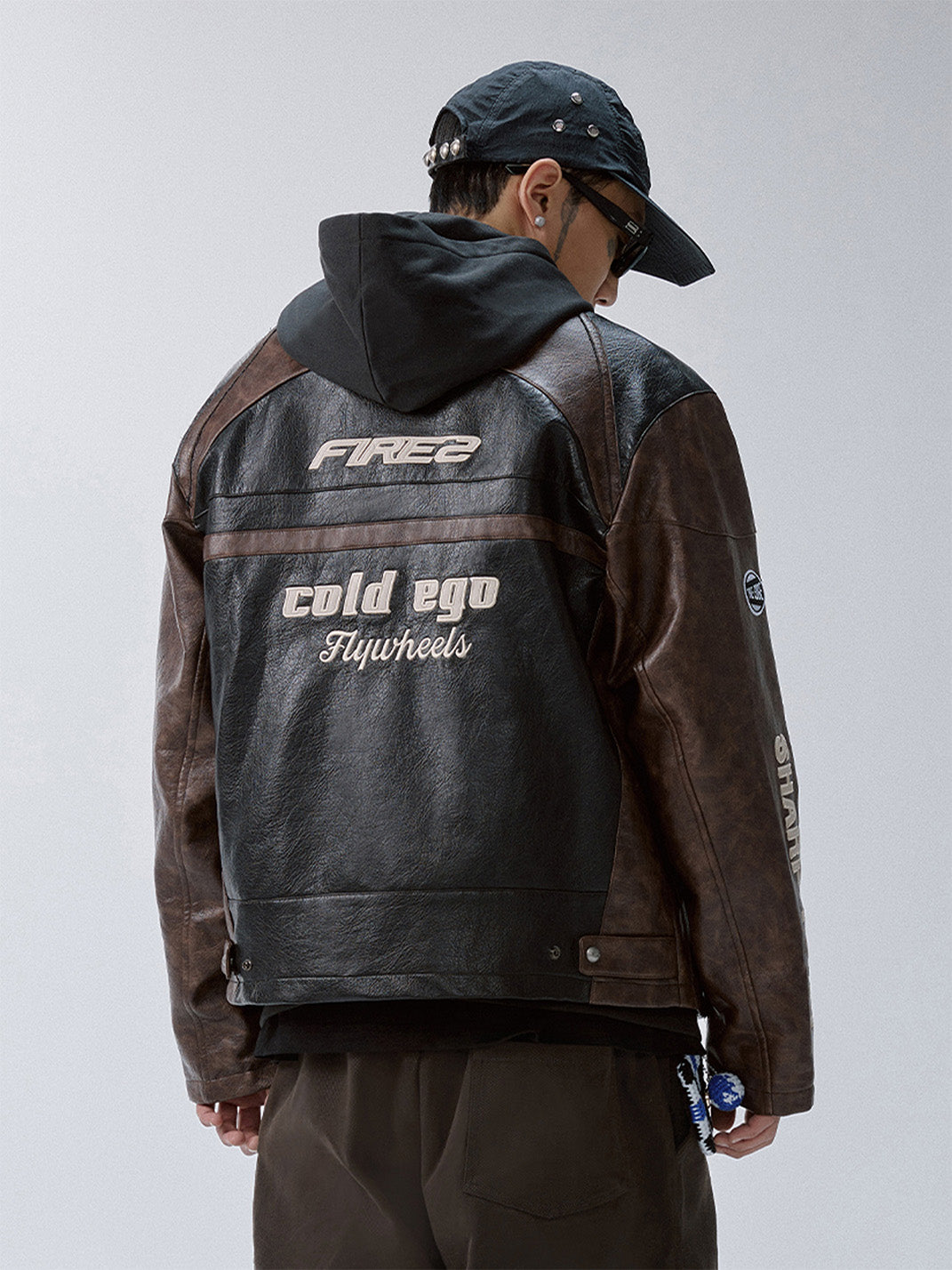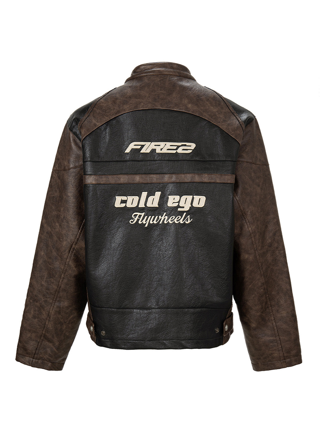 F2CE | Retro Embroidered Patch PU Moto Jacket