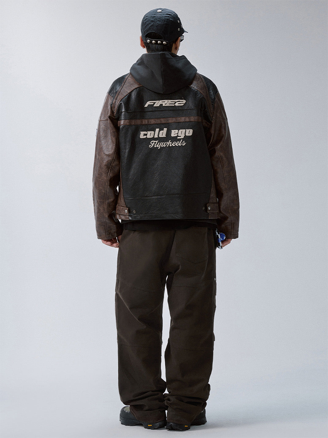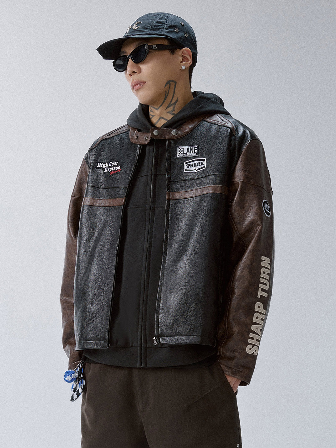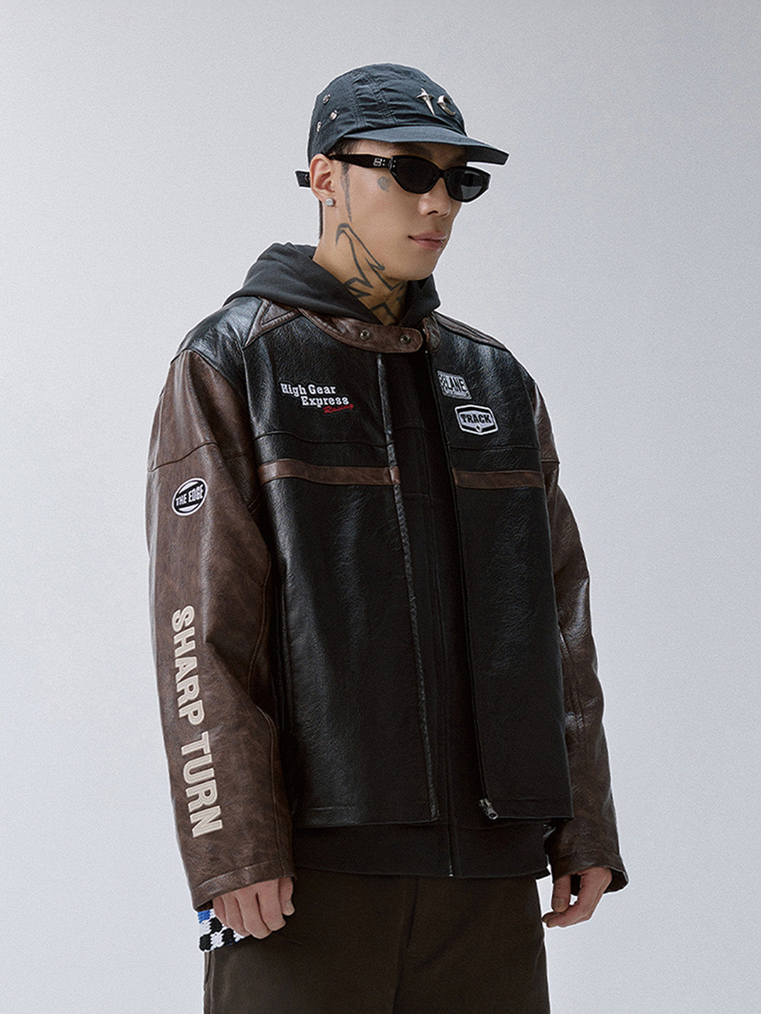 F2CE | Retro Embroidered Patch PU Moto Jacket