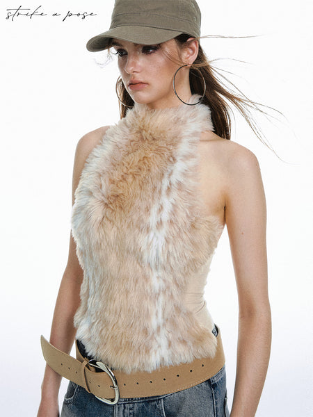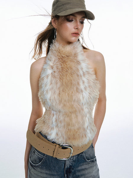 STRIKE A POSE | Leopard Faux Fur Halter Top