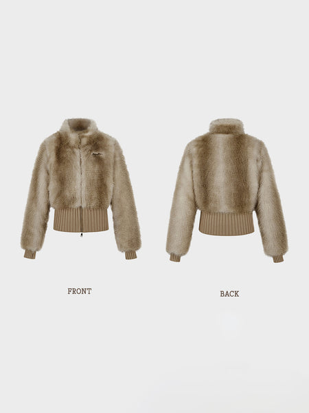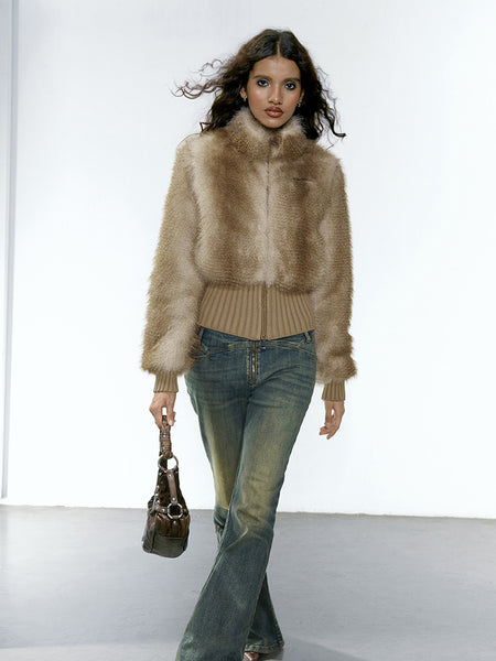 NOLA | Shearling V-Neck Knitted Zip-Up Jacket