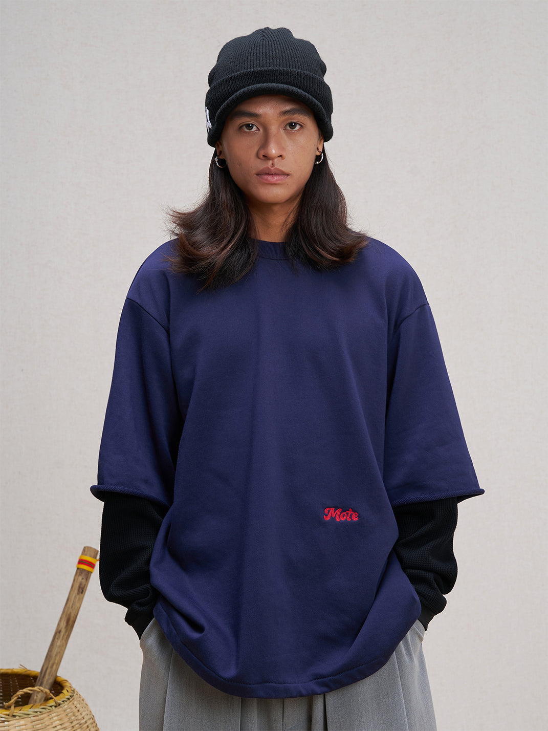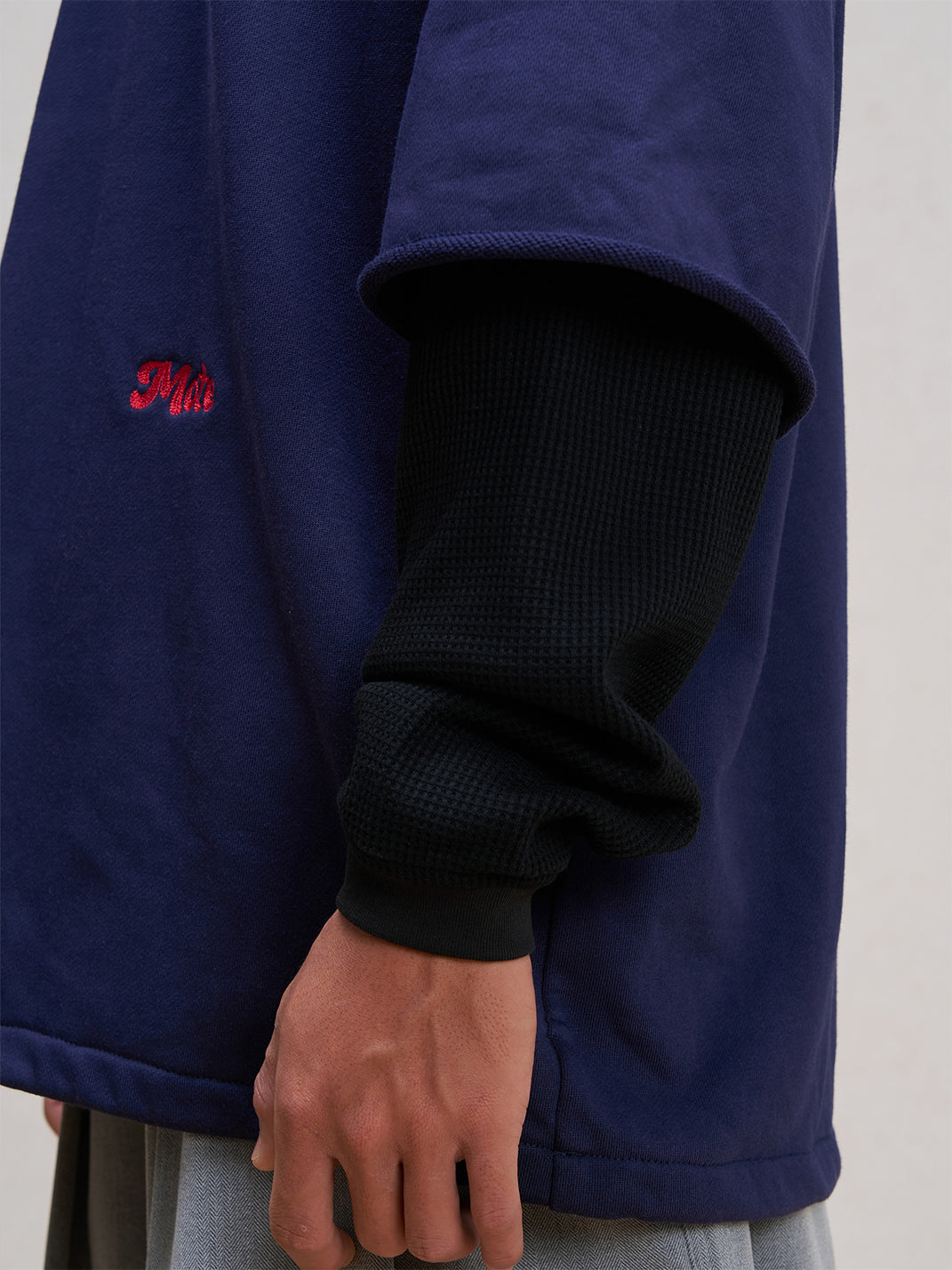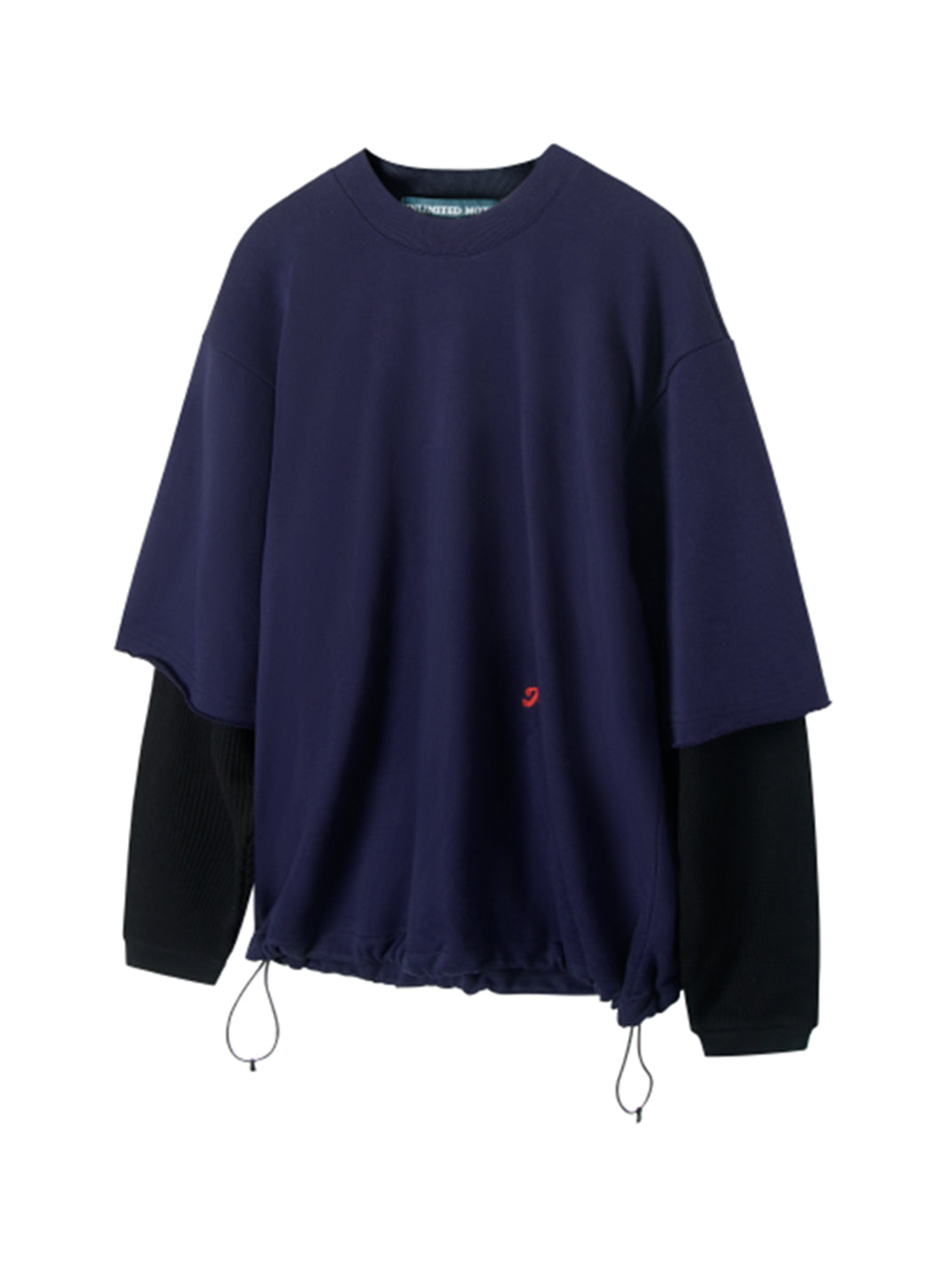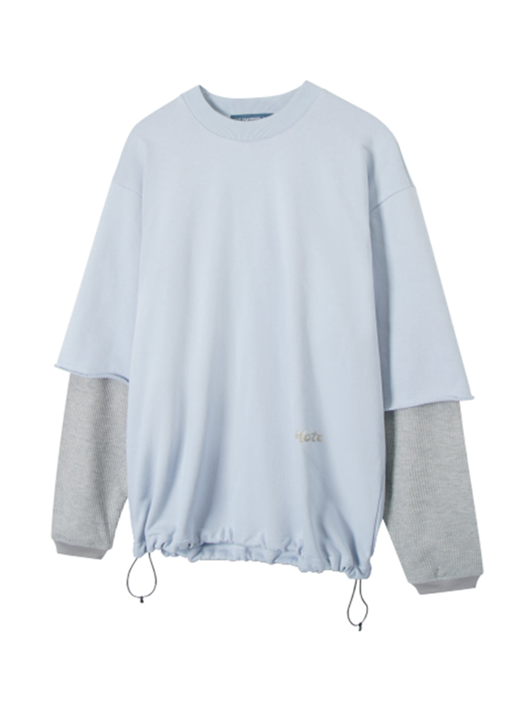 UNLIMITED MOTE | Waffle Sleeve Layered Drawstring Hem Sweatshirt