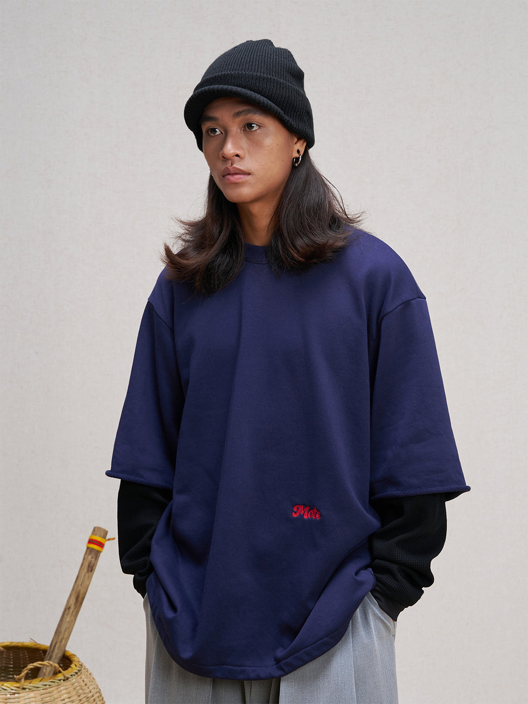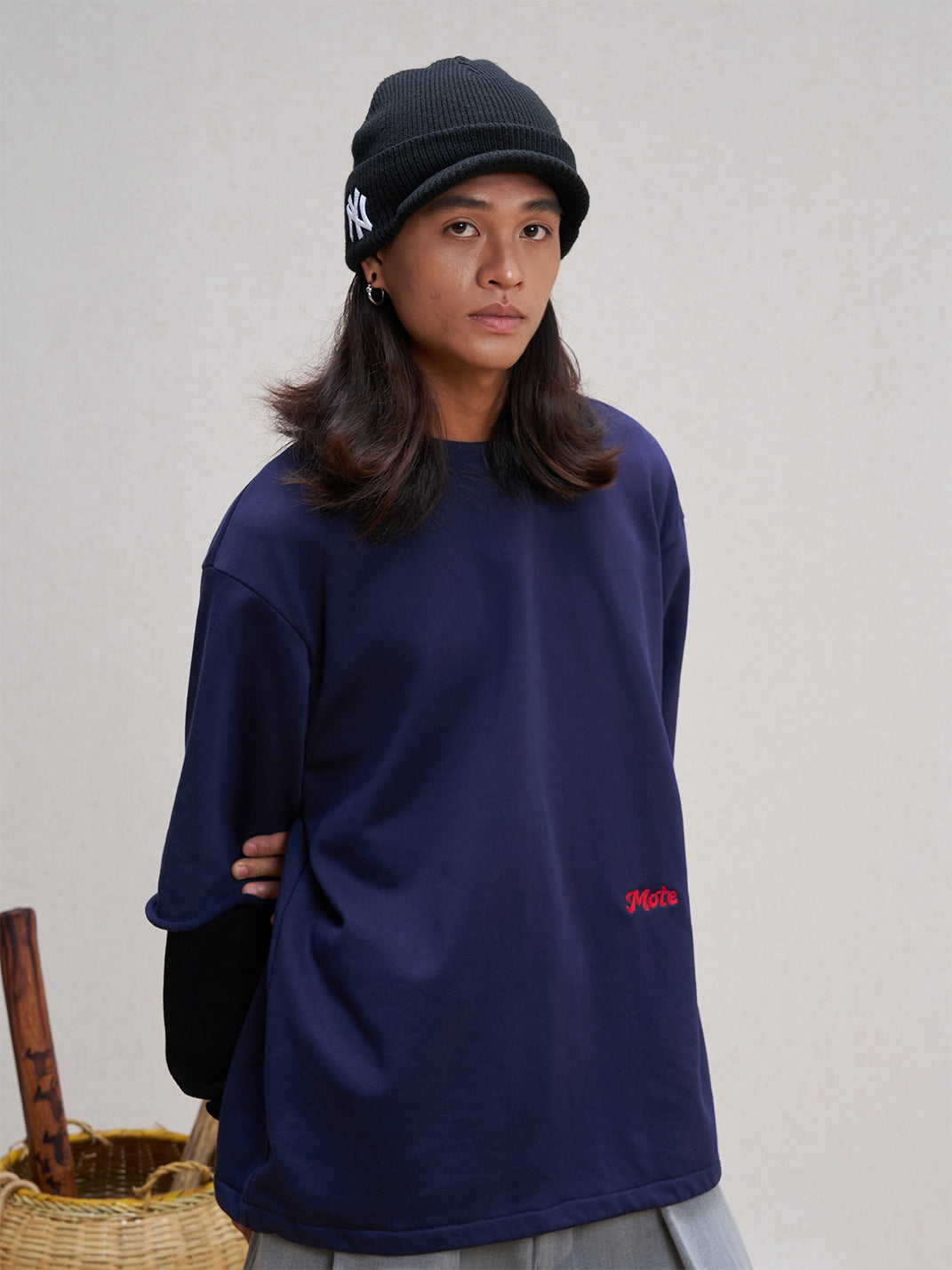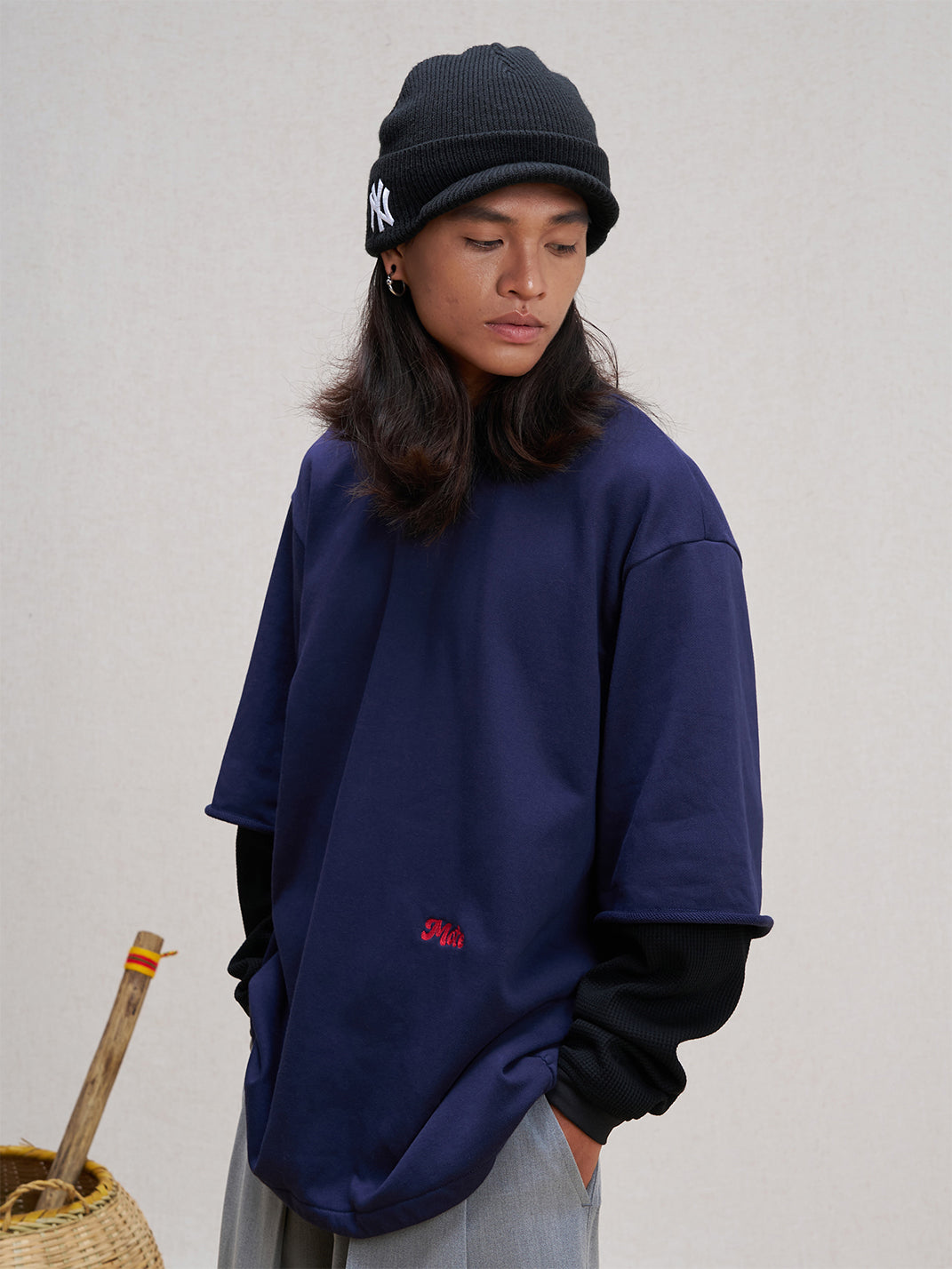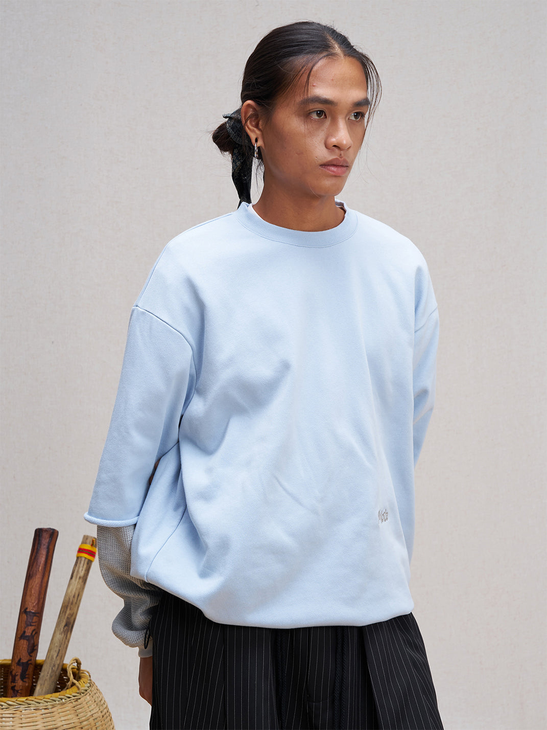 UNLIMITED MOTE | Waffle Sleeve Layered Drawstring Hem Sweatshirt