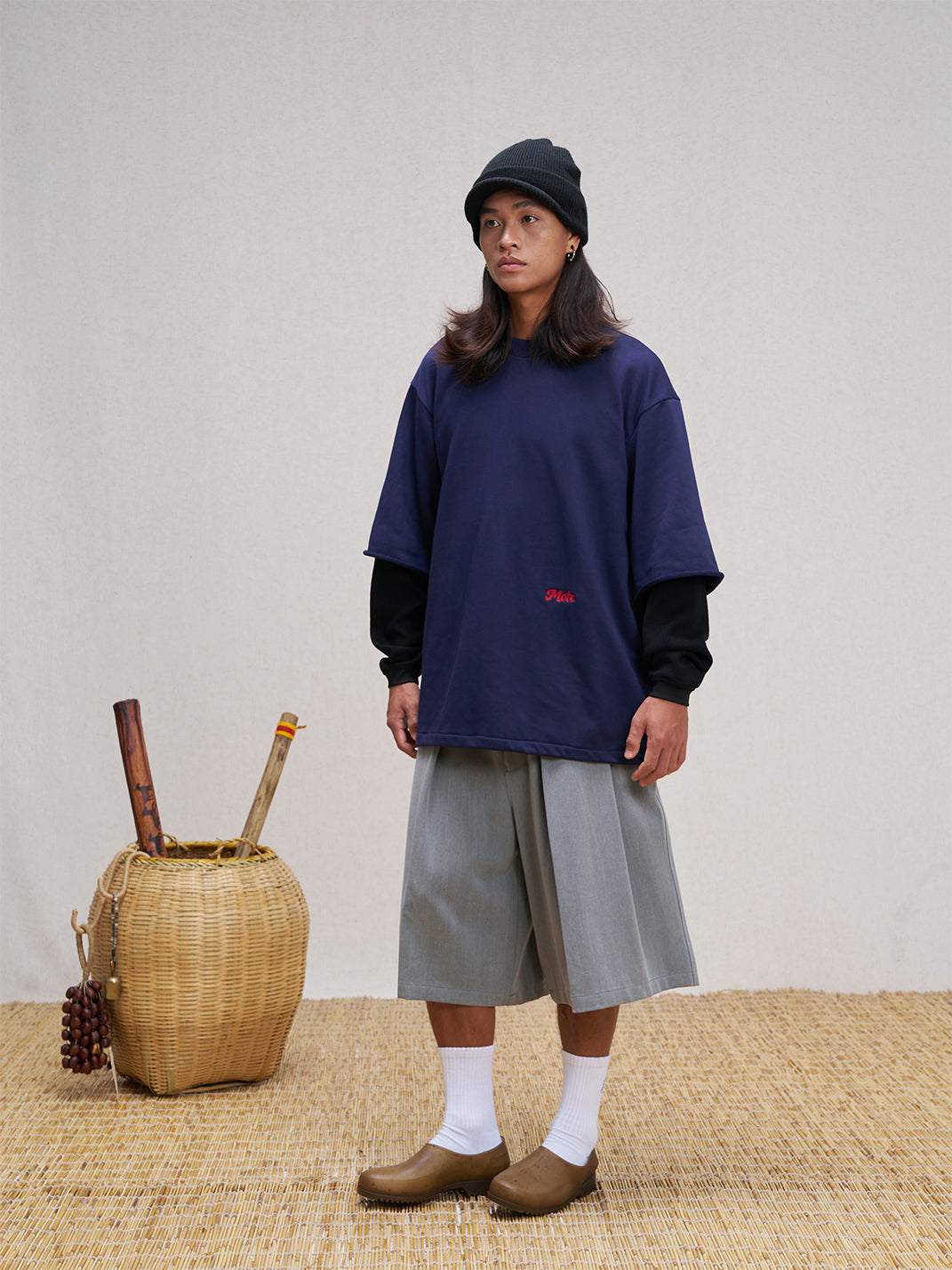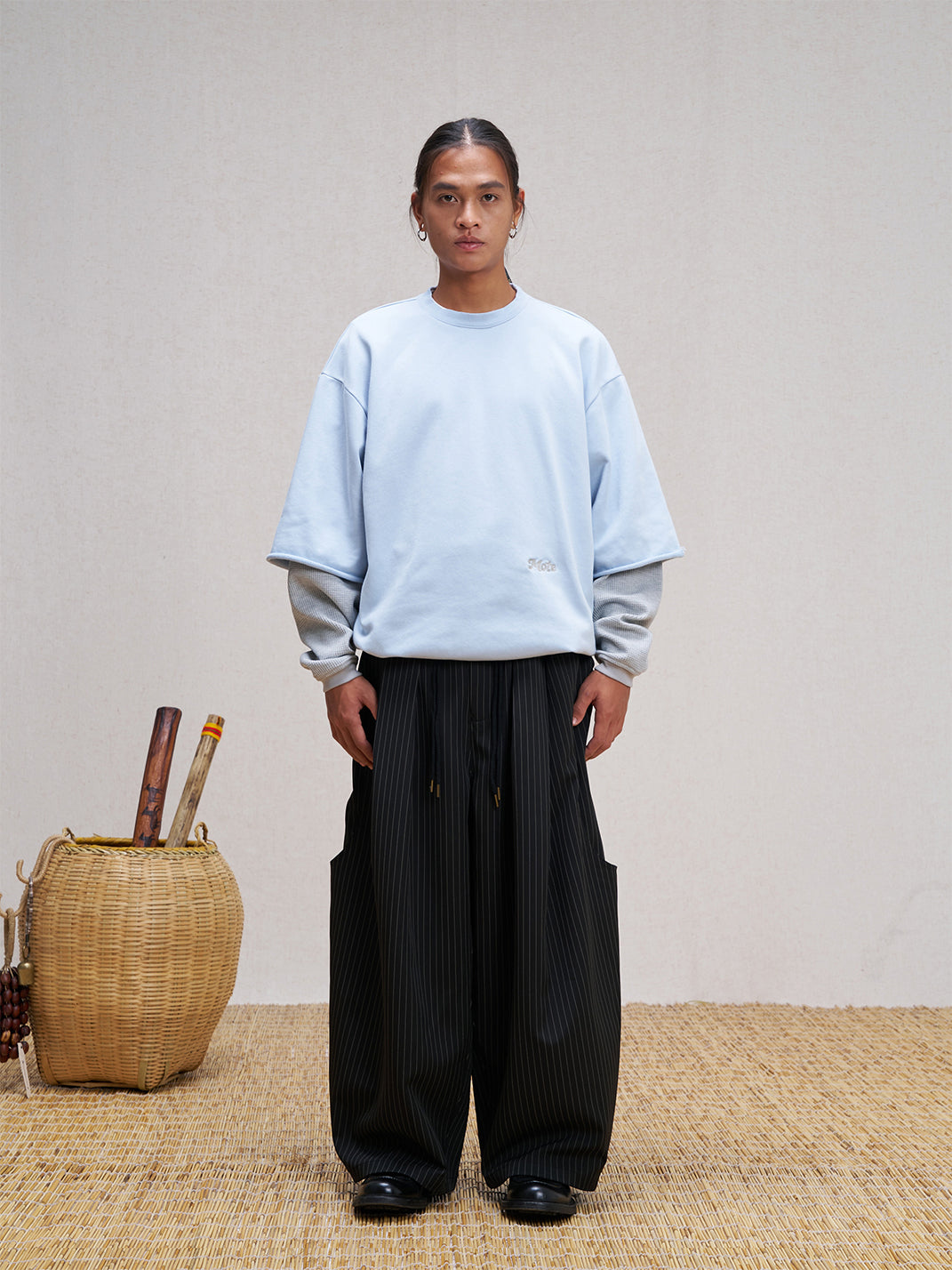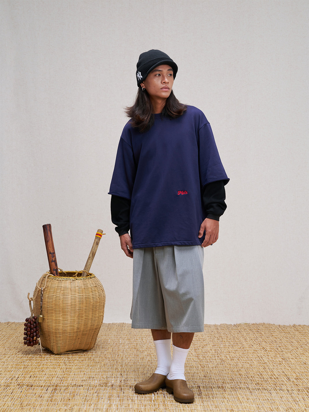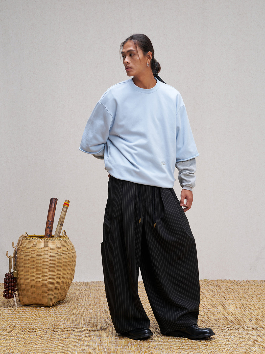 UNLIMITED MOTE | Waffle Sleeve Layered Drawstring Hem Sweatshirt