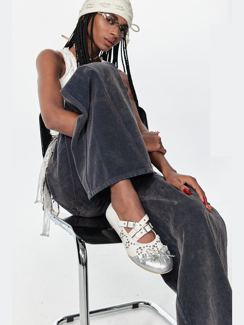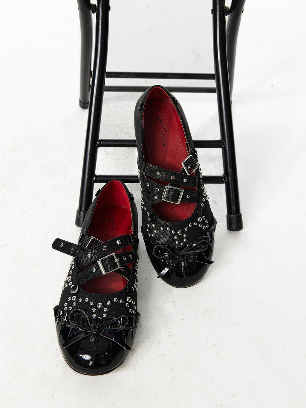 2th Desire | Heavy-Duty Studded Bow Mary Jane Shoes