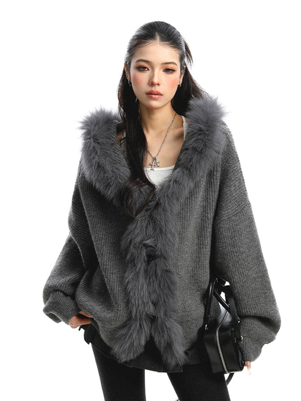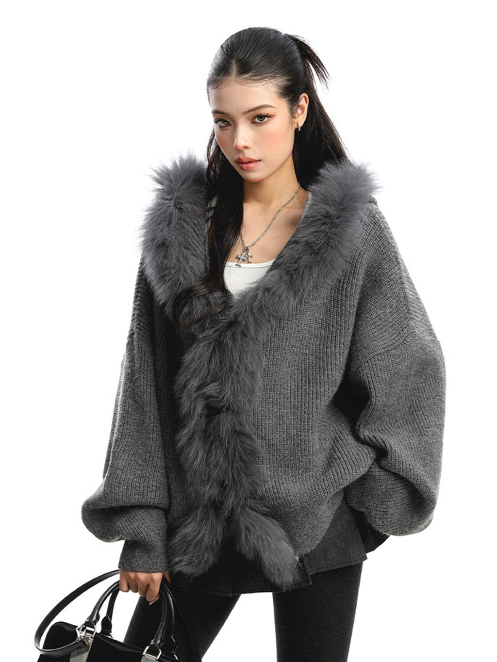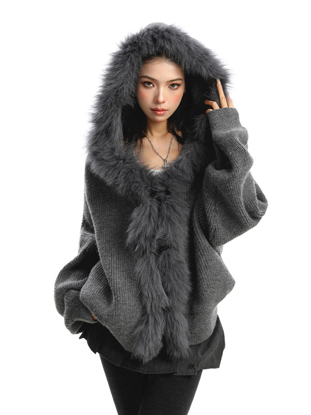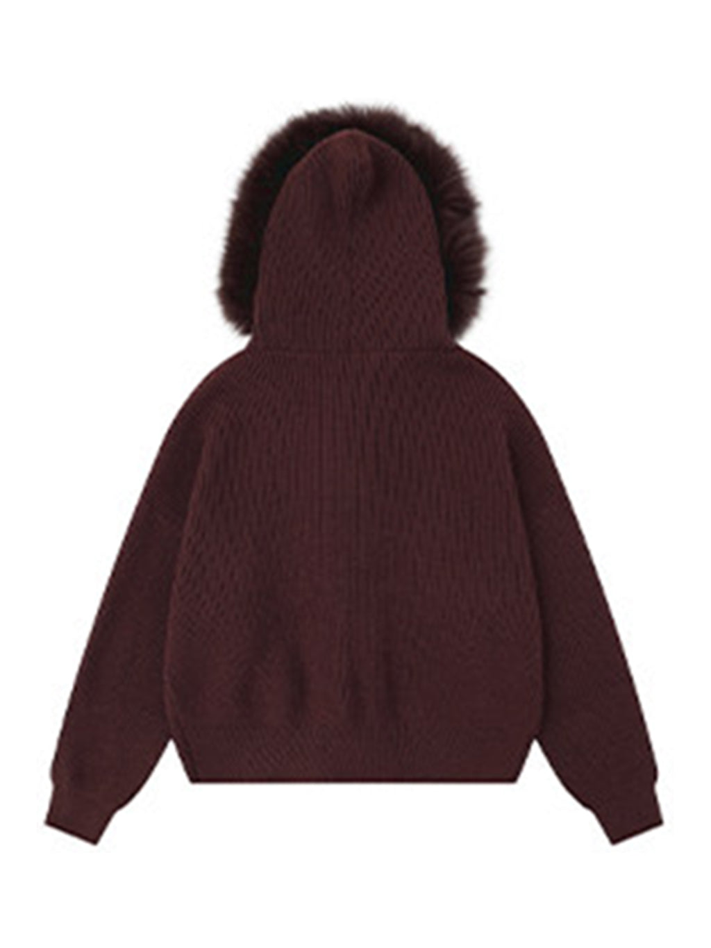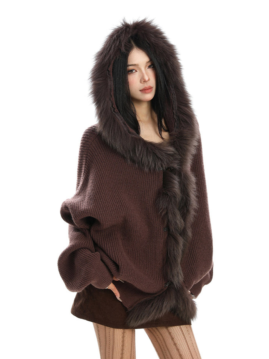 BIGGOLD | Fur Trimmed Hood Knit Sweater saltar al contenido
